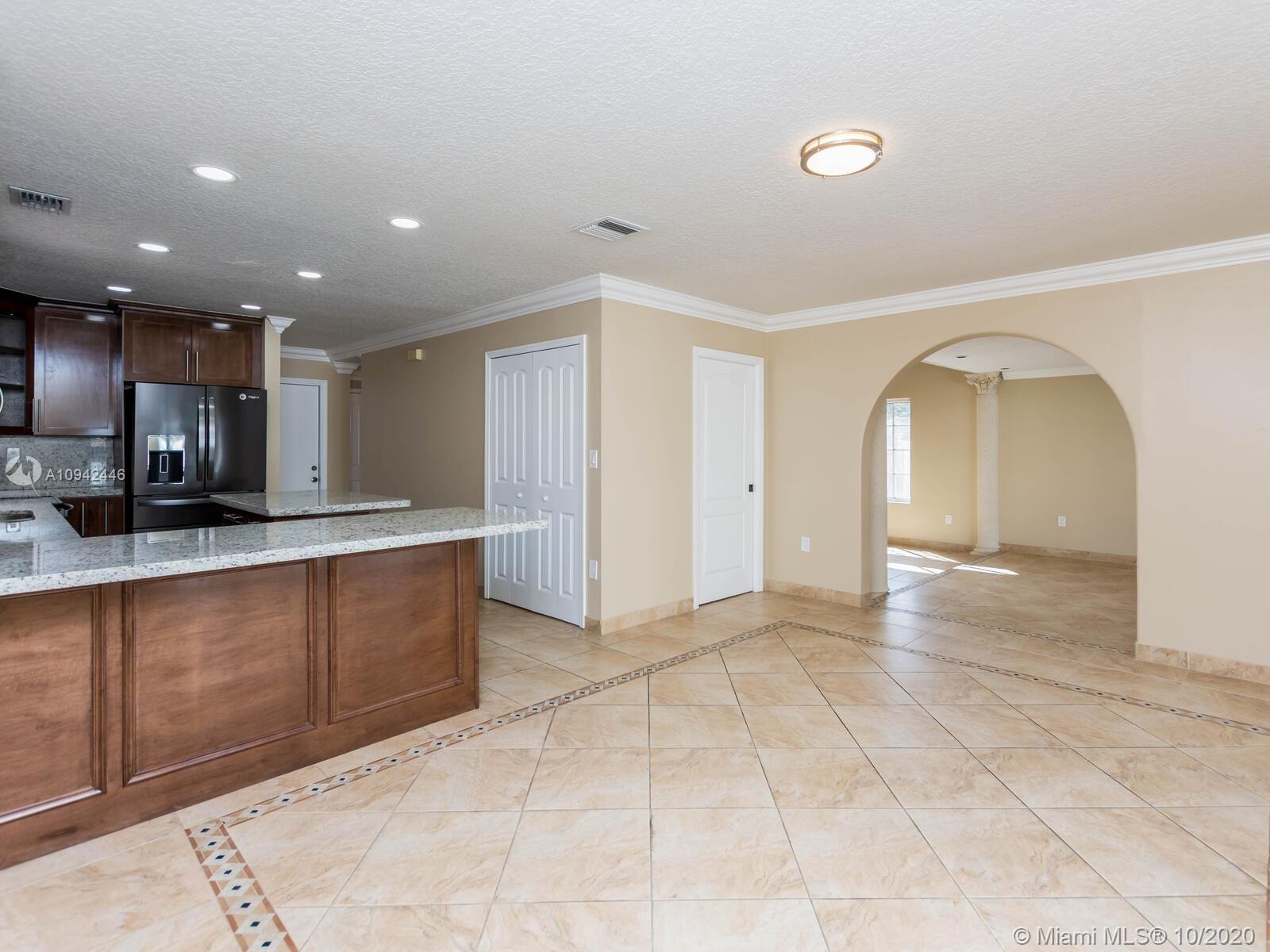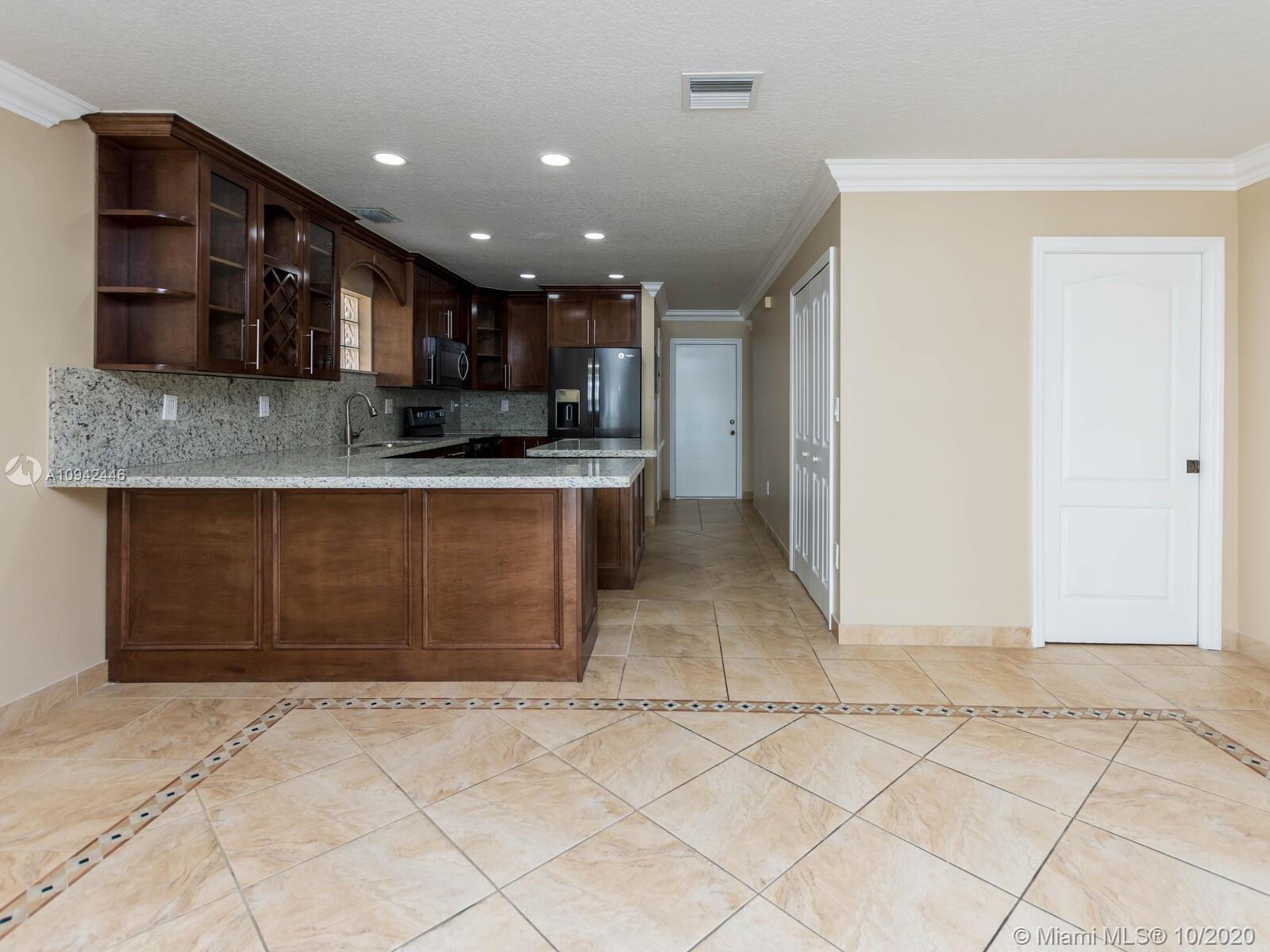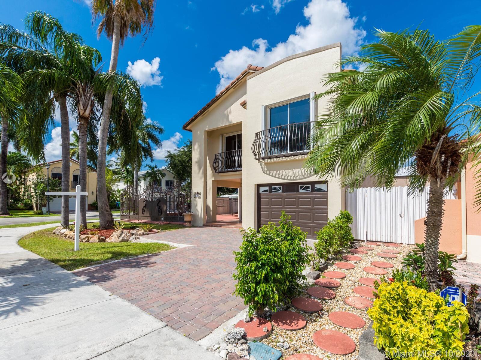Absolutely stunning luxury estate located in a desirable neighborhood offering privacy and tranquility. Perfect for a family who is looking for a spacious and lovely 3 bed 2 & 1/2 bath house completely renovated and freshly painted. This nice two-story home has tile on the first floor and newly installed wood on the second floor with an open area and a loft. Large, bright, and beautiful Eat-in kitchen newly installed with dark wood cabinet and granite countertops equipped with top of the line black stainless steel appliances, large master bedroom with a private large balcony to enjoy the south Florida weather with a stunning pool view newly resurface with a spa. House completely fenced with high iron gates with nice design. windows are protected with accordion shutters.ready to move in.