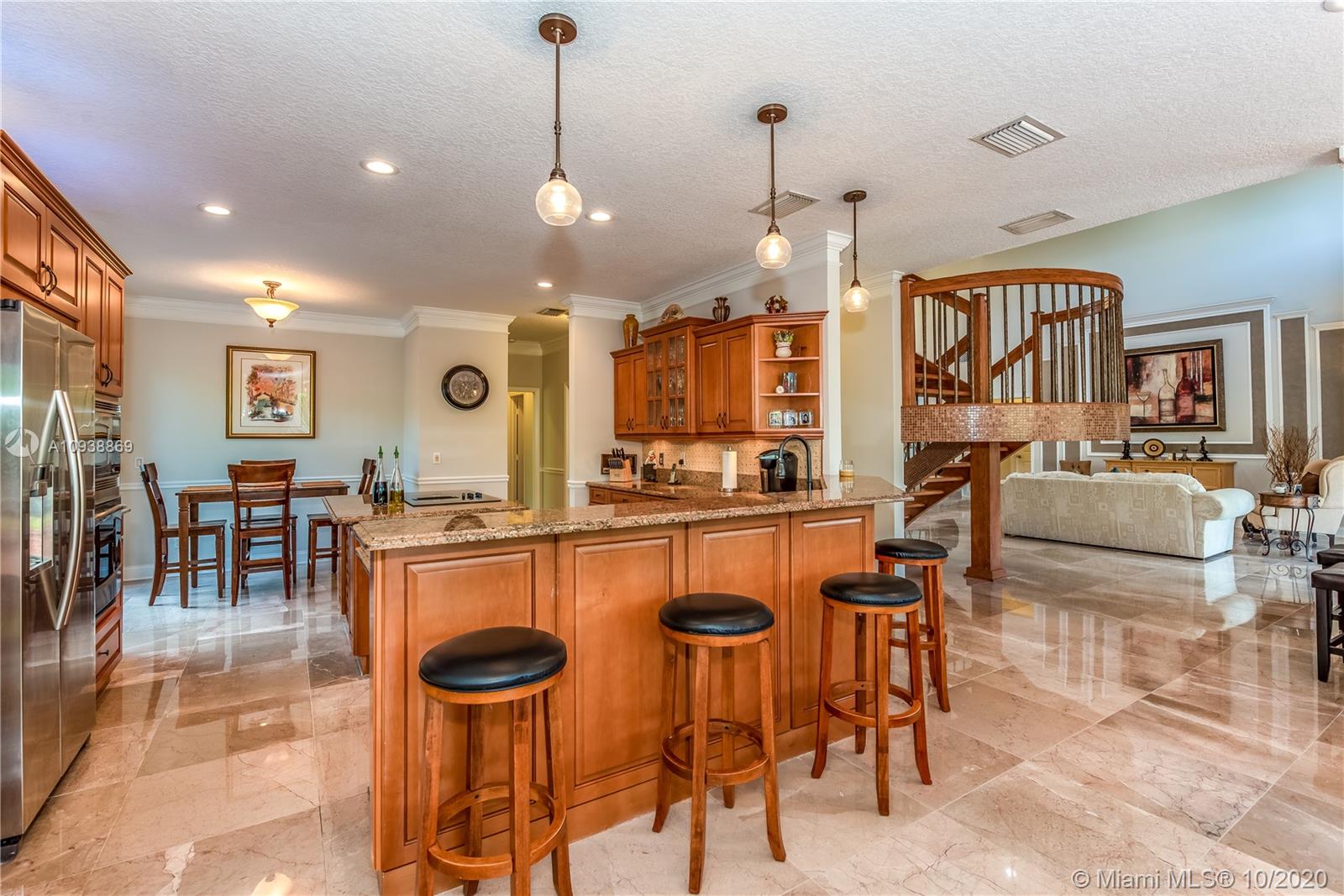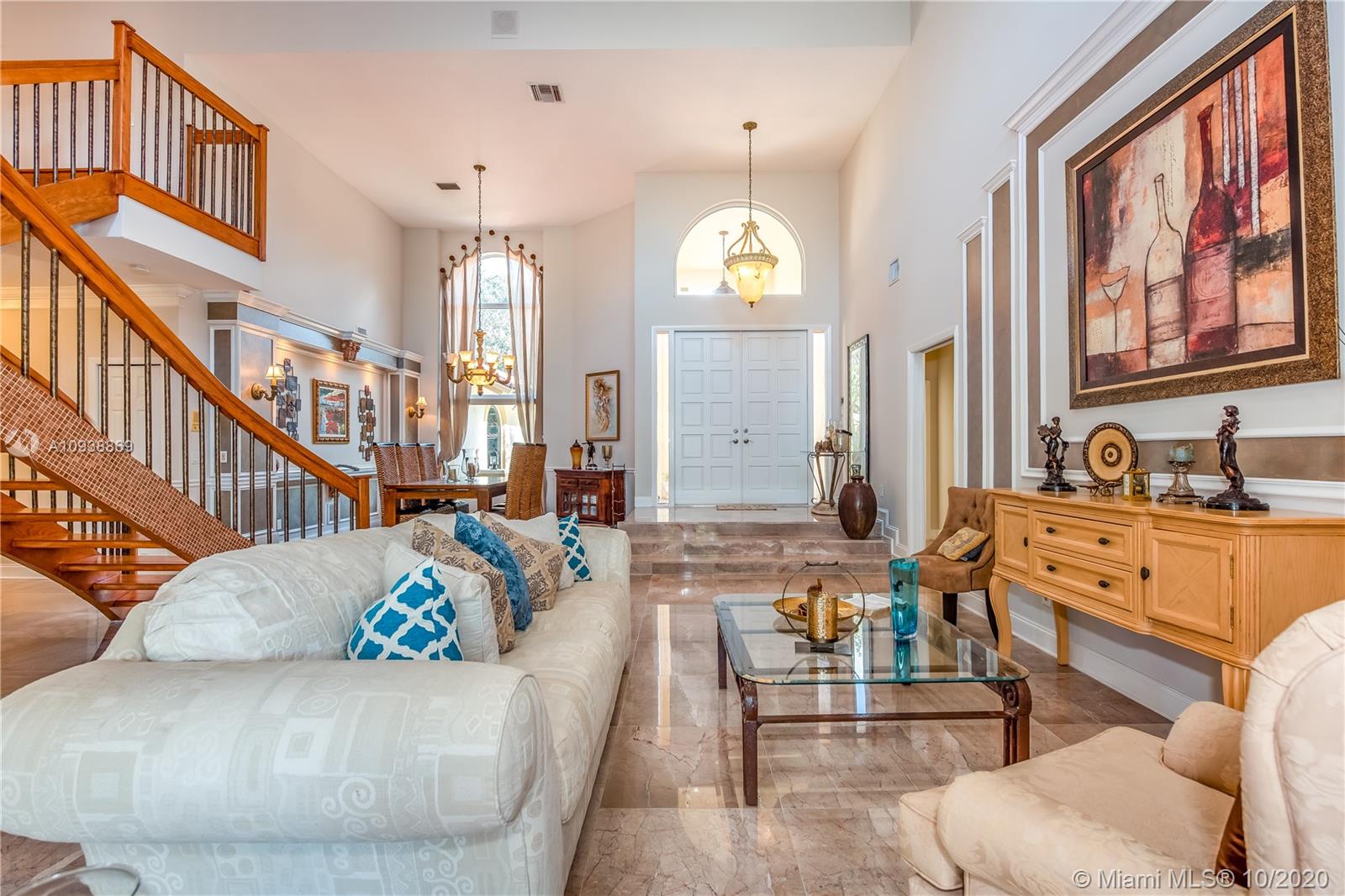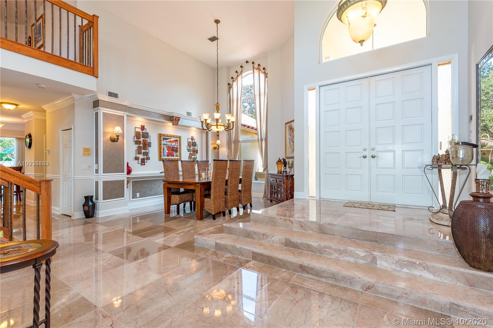 Welcome to Eagle Trace, the Estates. Amazing home, open concept, large lot, pool & spa, great for entertaining. *Master suite upstairs with sitting area and open balcony, walk in closet. Loft/office. First floor 2 bedrooms with 1 bath on one side and 1 bedroom with 1 bath private suite on the other. Amazing marble floors throughout main living area and kitchen* Huge center island kitchen with granite counter tops and stainless steal appliances* fireplace, impact windows. Very quite street, surrounded by million dollar homes, gated community includes tennis court, pick-ball, basketball courts, 24/7 security patrol, low HOA $210/month. Renowned Eagle Trace golf club optional membership.