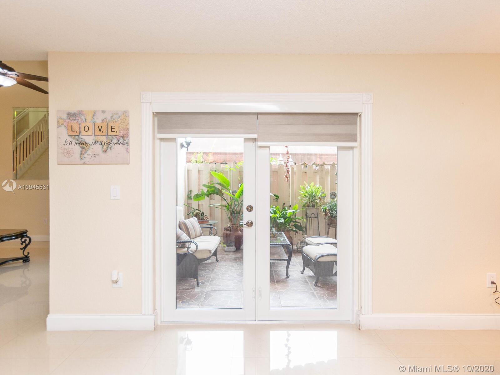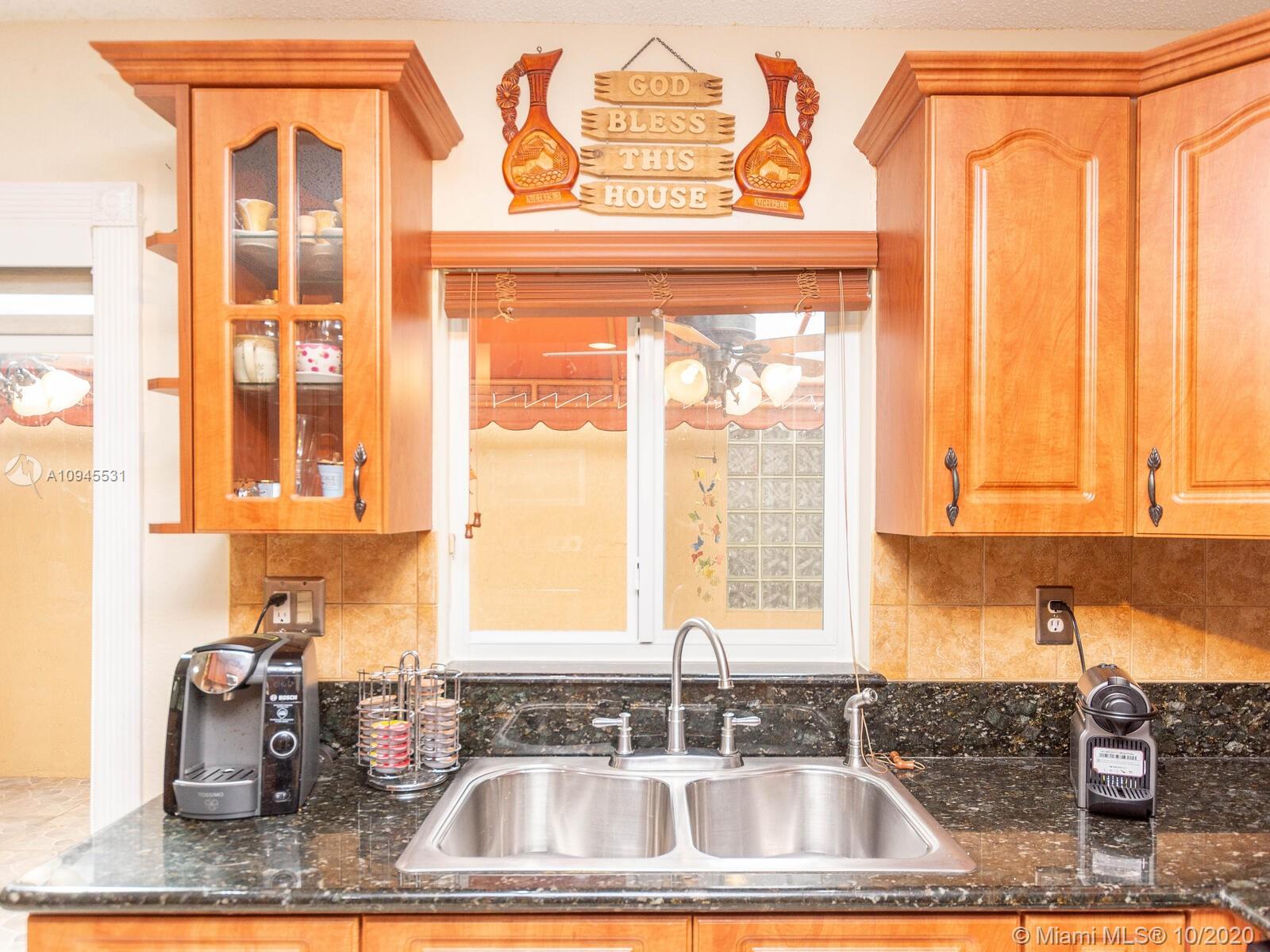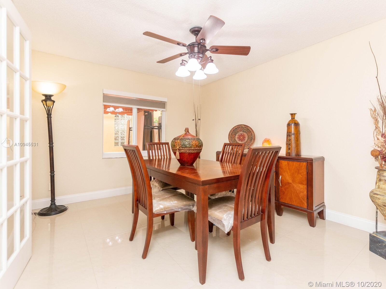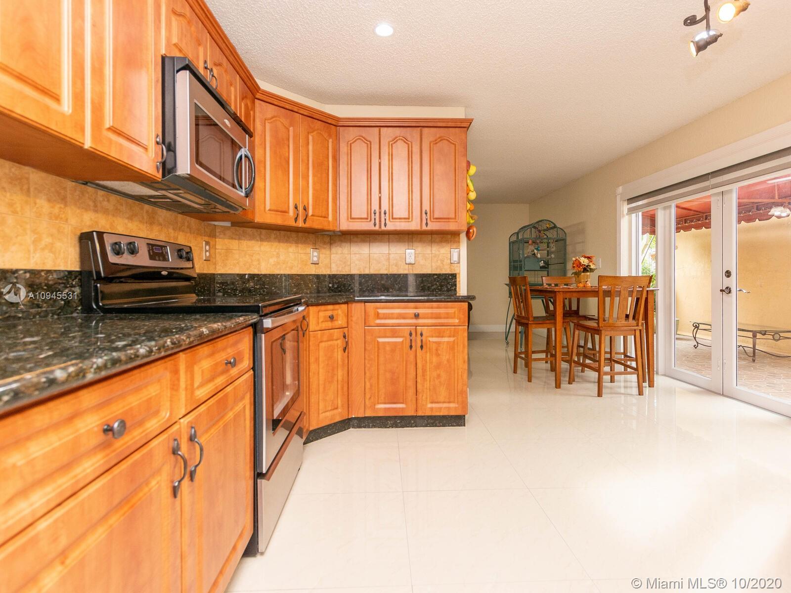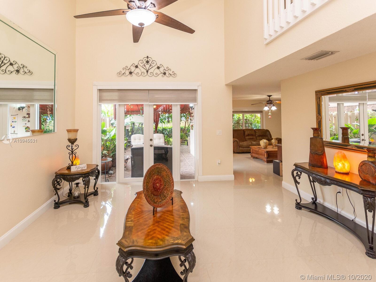 Outstanding single family home with 4 bedrooms and 2 1/2 bathrooms. Ceramic tiles on first floor, laminated wood on second floor. Wrap around terrace. Water heater and A/C with just 3 years of use. Blinds, two freezers, gas BBQ, separate gas burner, outside kitchen, ceiling fans all included. Impact doors and windows. Marble counter top. Six security cameras with 2 TV monitors. Back yard with lots of trees. Home was painted two years ago. Association includes cable, alarm and lawn.