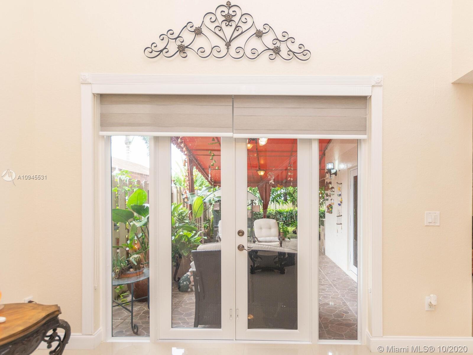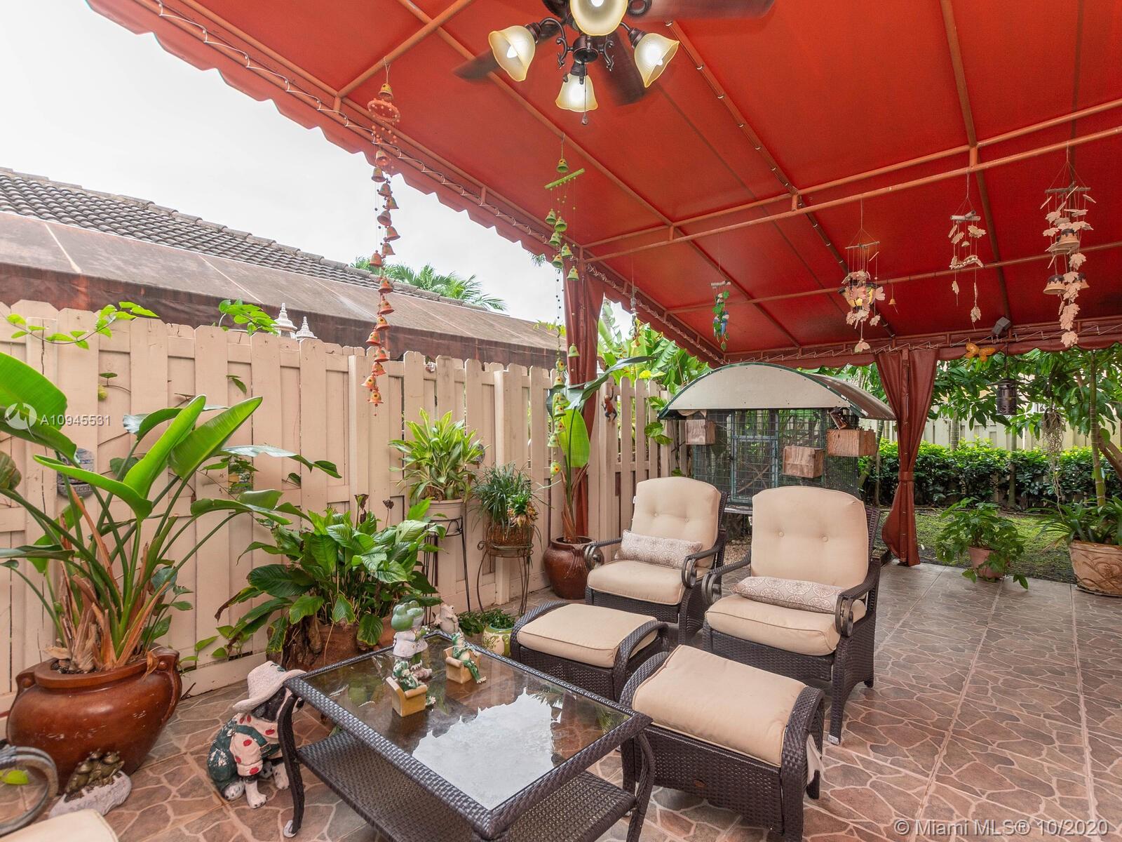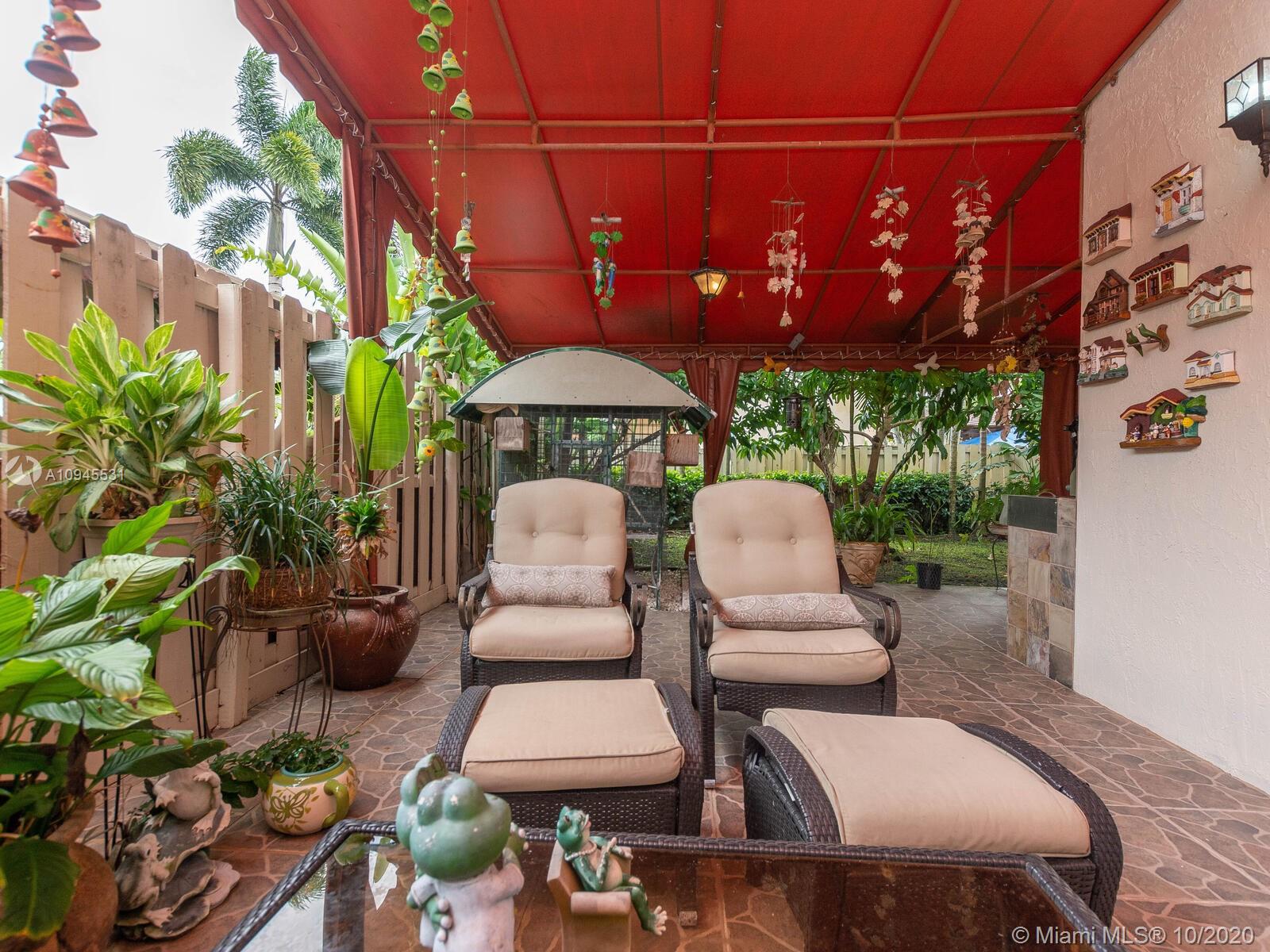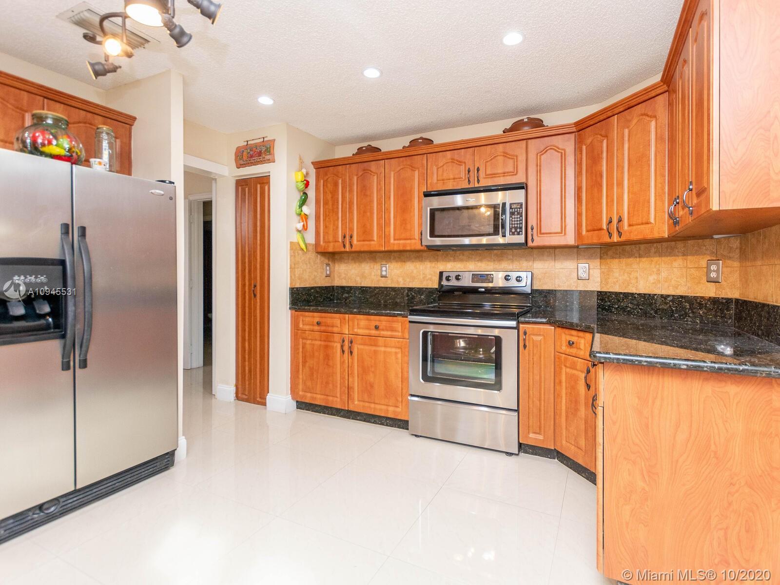 Outstanding single family home with 4 bedrooms and 2 1/2 bathrooms. Ceramic tiles on first floor, laminated wood on second floor. Wrap around terrace. Water heater and A/C with just 3 years of use. Blinds, two freezers, gas BBQ, separate gas burner, outside kitchen, ceiling fans all included. Impact doors and windows. Marble counter top. Six security cameras with 2 TV monitors. Back yard with lots of trees. Home was painted two years ago. Association includes cable, alarm and lawn.