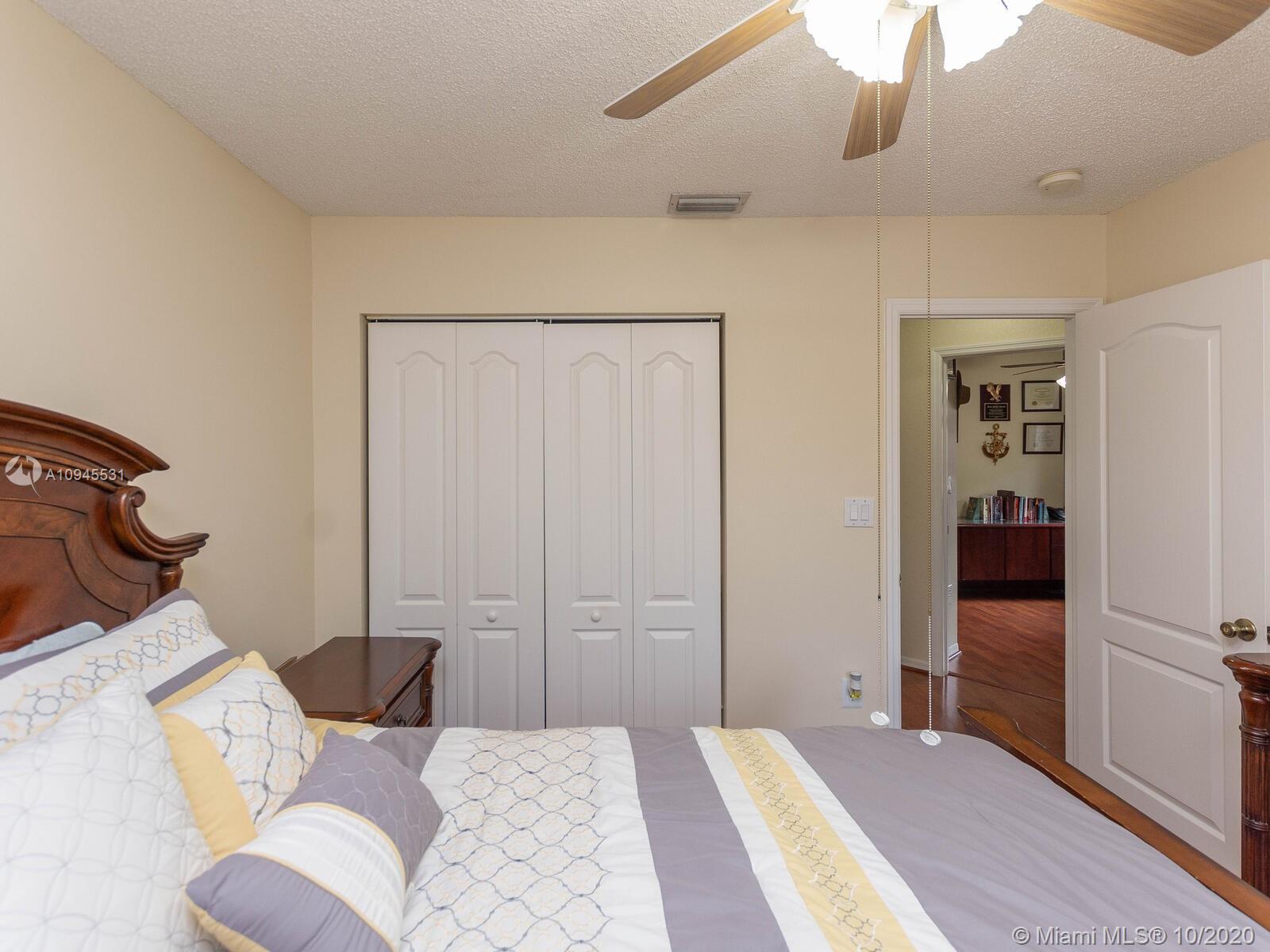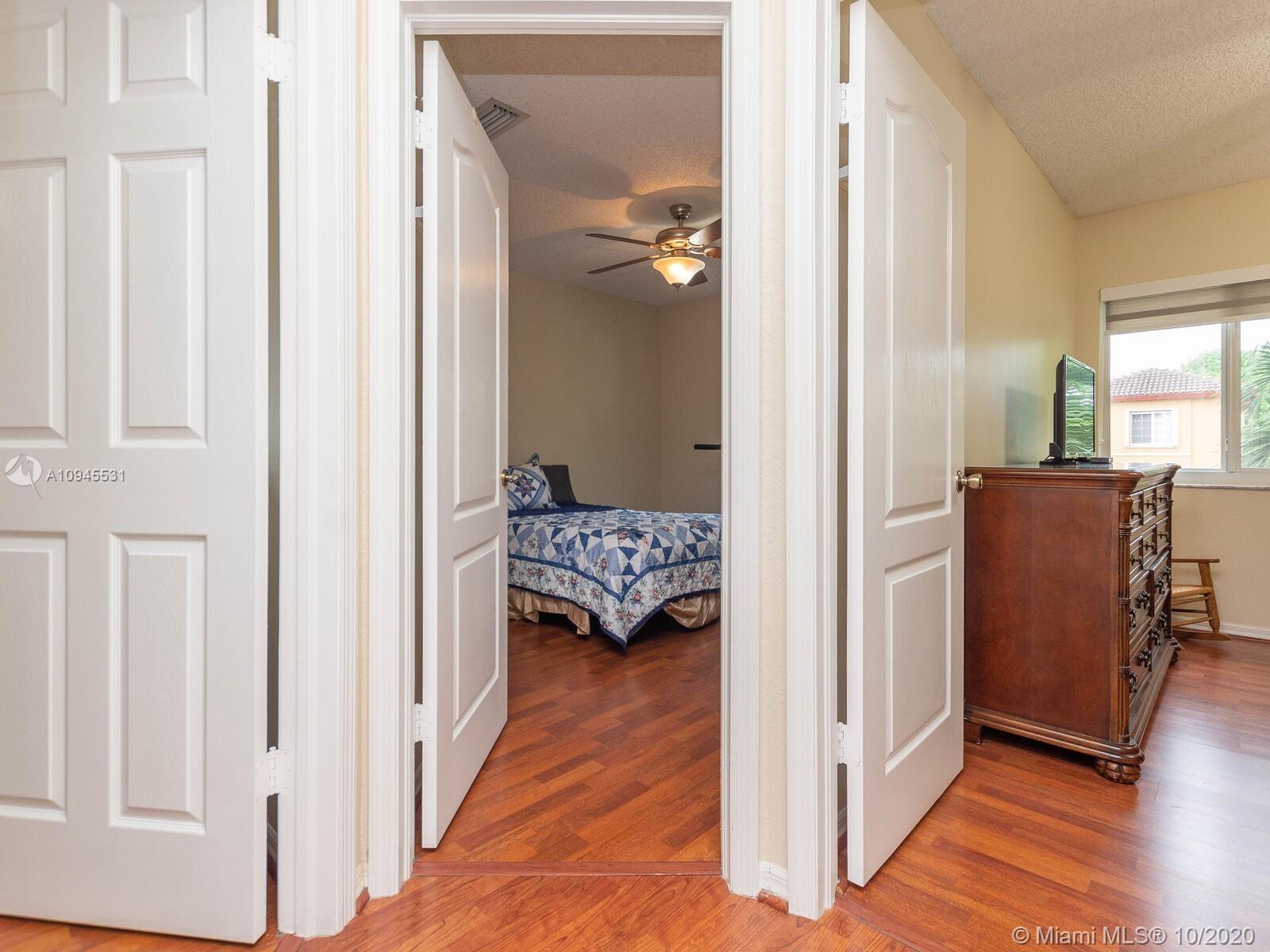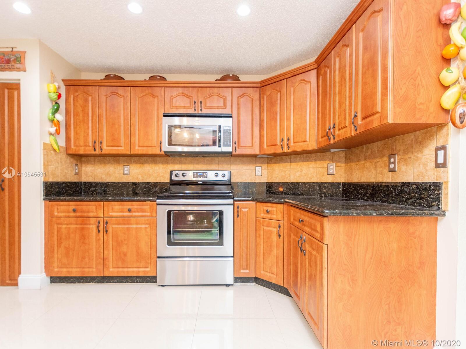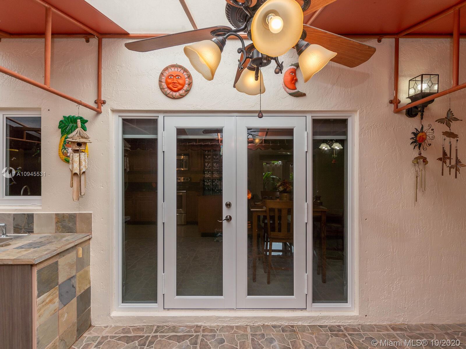 Outstanding single family home with 4 bedrooms and 2 1/2 bathrooms. Ceramic tiles on first floor, laminated wood on second floor. Wrap around terrace. Water heater and A/C with just 3 years of use. Blinds, two freezers, gas BBQ, separate gas burner, outside kitchen, ceiling fans all included. Impact doors and windows. Marble counter top. Six security cameras with 2 TV monitors. Back yard with lots of trees. Home was painted two years ago. Association includes cable, alarm and lawn.