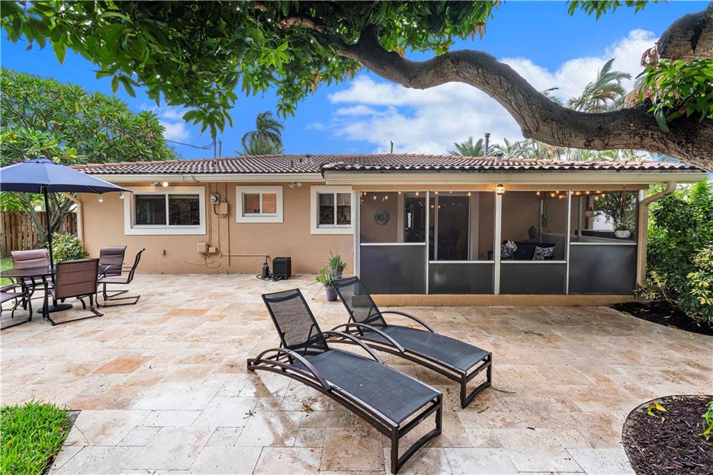 Nestled in one of the most sought after neighborhoods in Pompano Beach. This 2 bedroom 2 bath cottage home provides many upgrades including a fully renovated custom kitchen complete with stainless Samsung appliances. The screened Florida Room expands the living space into the backyard sanctuary. Located on a beautifully landscaped and fully fenced corner lot with room for a pool. Additionally there is a laundry room, attached carport and storage/she shed. New A/C, Updated Baths, Marble Flooring, Impact Windows and the most gorgeous mango tree. This is one to special home. Let's make it yours.