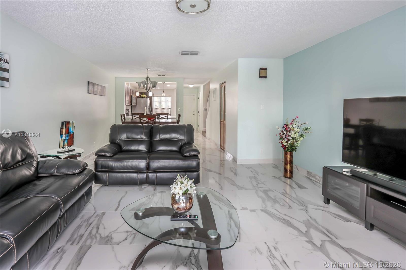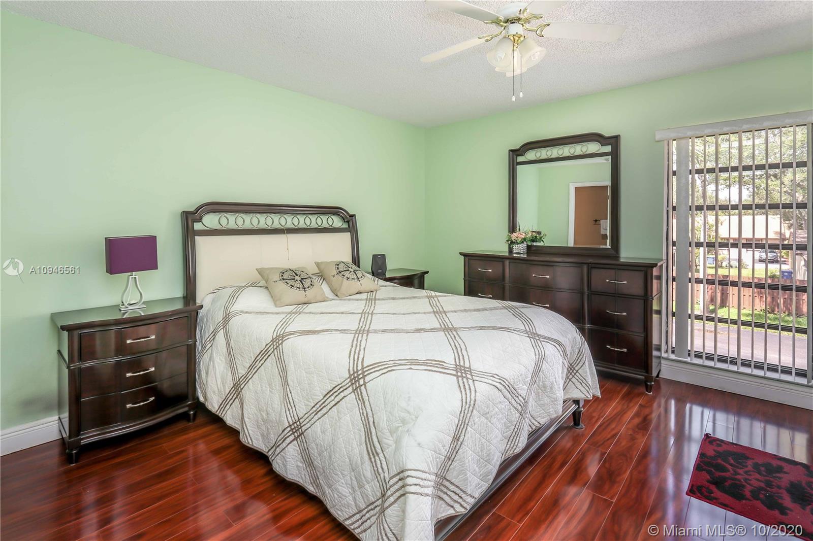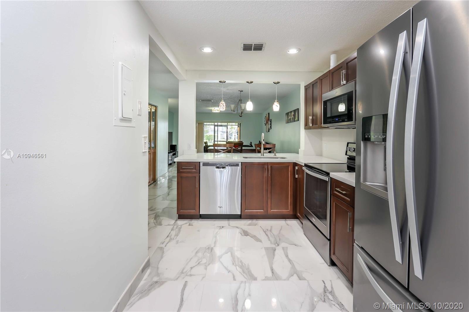 Impeccable and very nicely upgraded 2-story townhouse in the heart of Pembroke Pines. Large Italian porcelain floors on the 1st floor. A gorgeous upgraded open-kitchen with Quartz countertops, modern lighting, upgraded cabinets and appliances that are about 1yr old. The Stairs and second story feature engineered wood imitation floors that are scratch resistant. Master Bedroom is so spacious, you will not know what to do with all the space!! it also has a peaceful lake view. The second bedroom is like a mini master suite, very large with ensuite bathroom. Outside you will find an awesome covered patio with tile and an extra full size fridge that is included. Its the perfect space for a gatherings. Accordion shutters, plenty of storage.. Condo association requires min 20% down payment