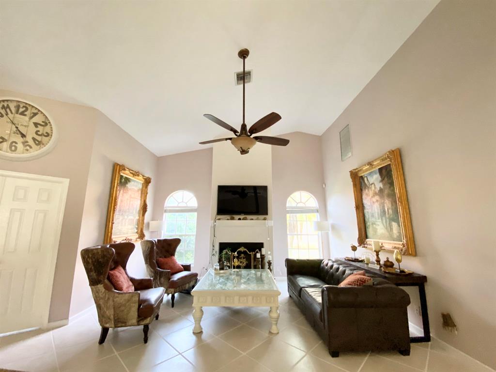 Immaculate 4/2.5/2CG open plan, vaulted ceiling, screened-in pool & jacuzzi lake front home on quiet street in desirable Boca Winds. ROOF 2015, Pool & spa, heater 2017 Beautiful large eat-in kitchen with thick granite counter tops and stainless steel appliances. Huge breakfast bar. 16'' Neutral tile on the diagonal in living areas & master bedroom and laminate floors in BR 2 to 3. Master suite overlooks the lake & contains 2 closets, Roman Tub, separate shower & double vanities. Kitchen overlooks the family room containing a real wood burning fireplace. Air conditioned laundry room is accessed through the 2 car garage. Light and bright A/C 2015 & 2019. Desirable A Schools for kids. Walking distance to publix and school. LOW HOA 115$/month