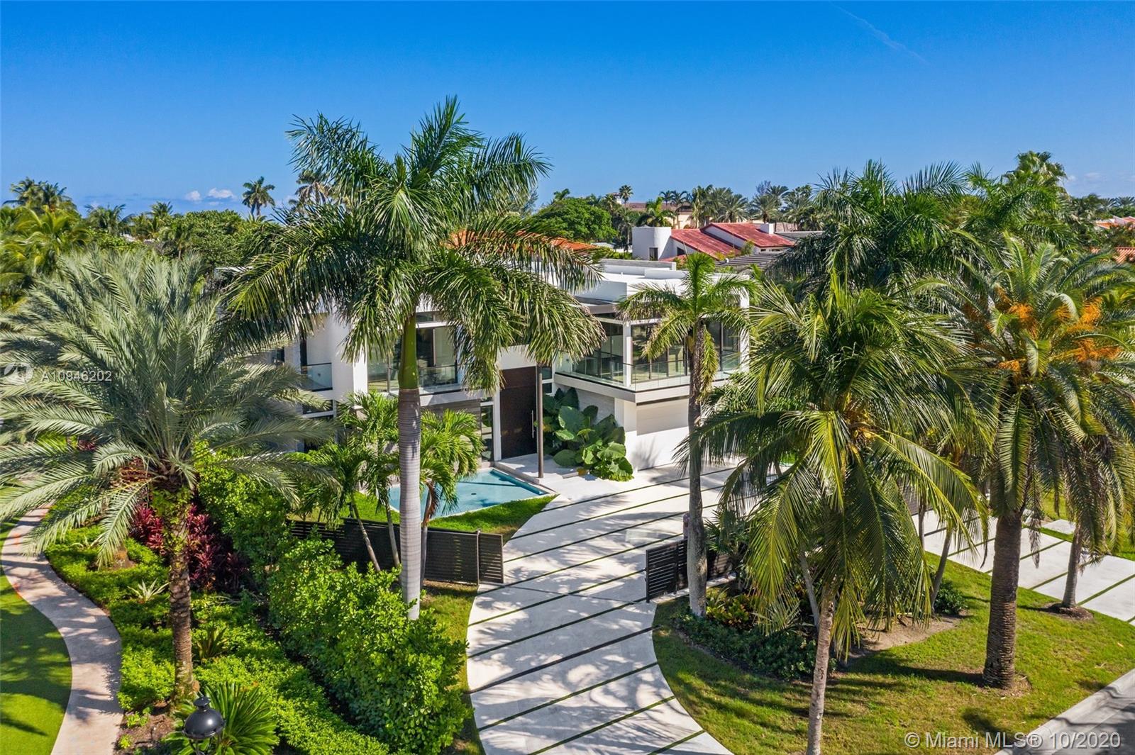 Designed for the quintessential Golden Beach lifestyle, this brand-new construction tropical oasis is located in one of the most coveted and private communities in all of South Florida. Delicately balancing modern architecture yet warm and inviting features, the living experience here is both for family life and entertaining. Boasting 6,787 SF of open concept luxurious living, 5 bedrooms, 5 bedrooms, 1 half bath, 2 car garage and expansive driveway, all situated on a 12,300 SF corner lot. Complete with private gates, natural light pouring through floor-to-ceiling windows framing the verdant outdoors, custom high-end finishes, elevator and an oversized principal wing with expansive closets. Serene and lush outdoors surrounded by walls of green and mature trees boast a tranquil pool & spa.