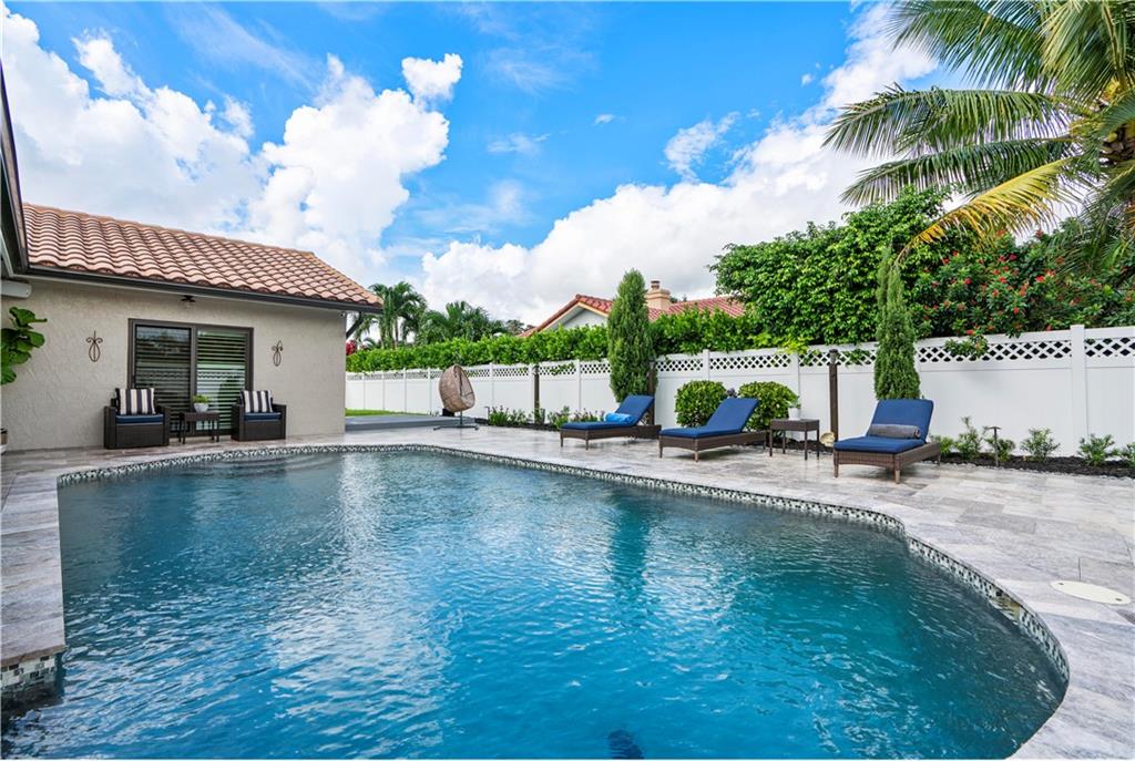 *Tours Sunday, Oct. 25th from 1-4pm.* STUNNING! Professionally designed & fully remodeled HGTV chic ~ 5 bed 3 bath w/soaring ceilings & entertaining tropical saltwater pool. Everything from ceiling to floors has been updated. There is so much to say about this beautiful estate home in Cypress Isle ~ you MUST see it to believe it! IMPACT windows/doors & new AC ducts & newer AC. Gourmet kitchen & spacious island w/storage, bar stool seating & honed Calcite counter tops. New Diamond Brite pool surface is accented by iridescent tile & new travertine patio pavers complete w/new summer kitchen. Live the South Florida lifestyle & quarantine in style! No HOA, pet friendly fenced backyard, new travertine paver driveway, wood/tile floors throughout. Ring doorbell & camera system stays with the home.