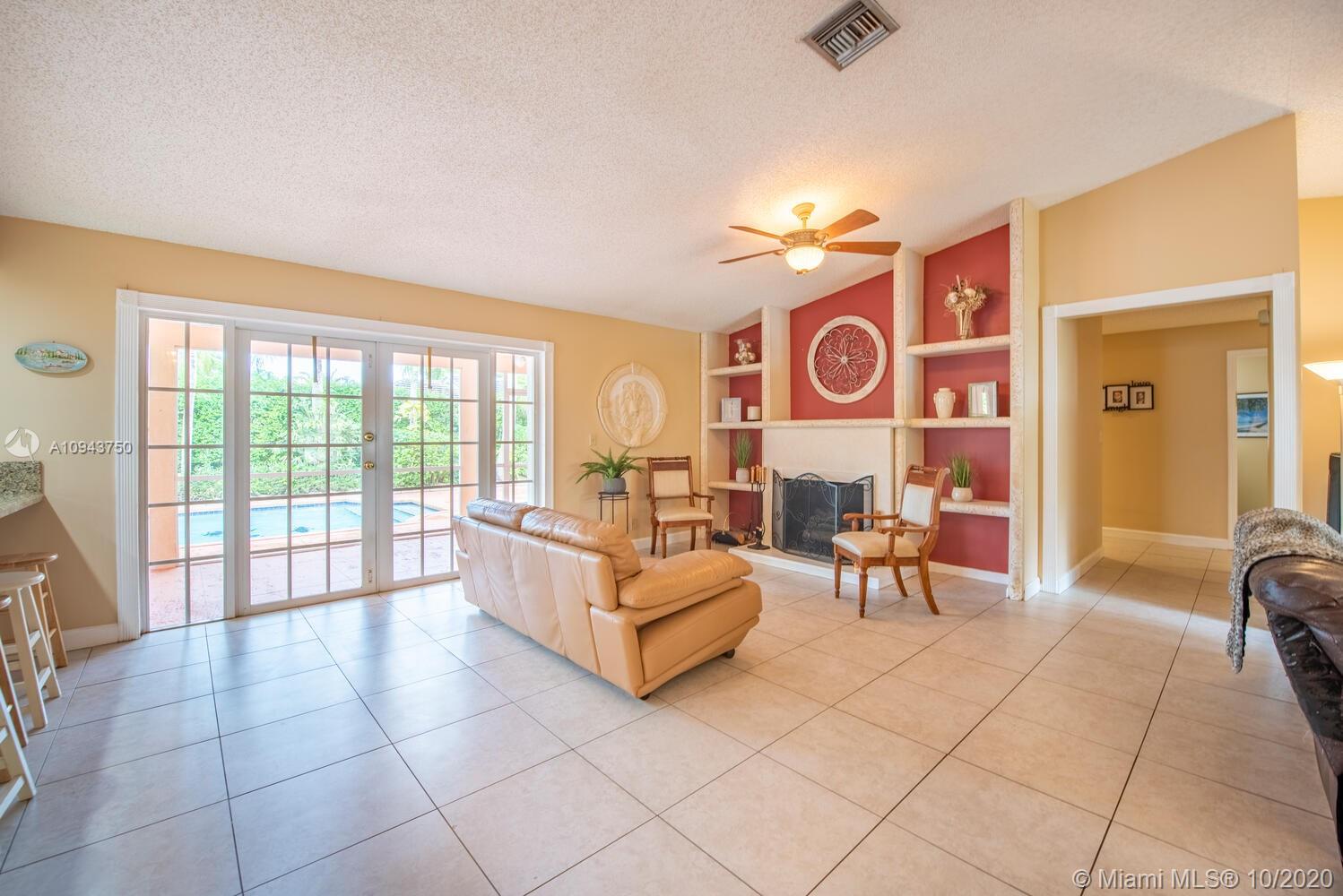 Come and see this beautiful 4/2 pool home with wonderful curb appeal outside and garden lanai area before entering the double front doors. This single story home features: 2005 roof, new flat roof and patio knockdown, 2016 A/C, circular driveway, hurricane rated garage door, (3) French-doors to screened patio, solar hot water heater, updated eat-in kitchen with white cabinets, granite counters, stainless steel appliances, reverse osmosis under sink, updated master and guest bathrooms, formal dining, living room, family room, double door entry to master bedroom and wide hallway to bedrooms, tile throughout living area and bedrooms, decorative fireplace with built in shelving, euro-tile for sidewalk, cool deck patio-pool area with tropical garden foliage for your backyard privacy and no HOA!
