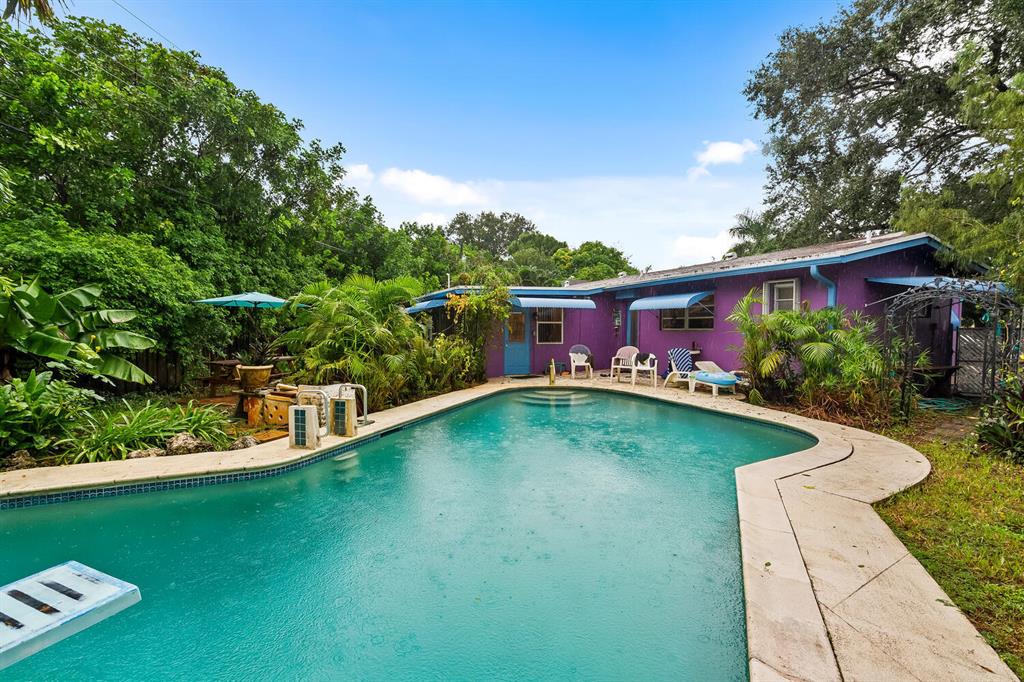 Better known as the Butterfly Home, this charming 3/3 is located on a 16,807 sq ft DOUBLE LOT at the end of a quiet cul-de-sac. A tropical oasis awaits you featuring organic fruit trees and plants including Avocado, Star Fruit, Miracle Fruit, Dragon Fruit, Jabuticaba, Valencia Orange, Honeybell and Bay leaf which draw numerous butterflies and birds that nest on the property. Not to mention the luxurious 8.5 ft deep swimming pool with a diving board. Another distinguishing feature is the in-law quarters with private kitchen and entrance. Recent 2019 improvements include brand new outdoor shower, new paint throughout, updated kitchen, fully renovated bathroom, updated lighting, new side entry door, new deck, automatic sprinklers and new archway. A/C is 2018. Come see this one of a kind gem!