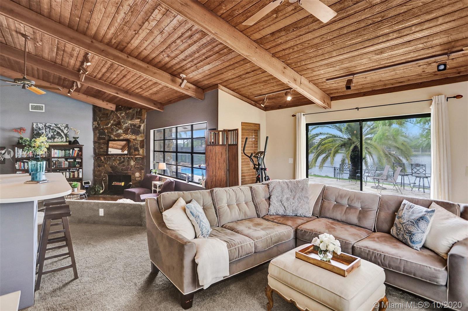 Beautiful home in quiet family neighborhood. Warm inviting home to entertain inside near the fireplace in the sunken living room or in the family room near the kitchen or around the pool overlooking the lake. Enjoy the pool as you watch beautiful sunsets. Wood ceiling in Living, Dining, Family room area. Nice size master bedroom with modern ensuite. Kitchen with granite counter tops and real wood cabinets. New Roof in 2018 and New A/C in 2015. Near malls, restaurants, Memorial West Hospital and C.B. Smith Park. Not far from major roads Flamingo Road and Sheridan St. Come see this warm pleasant family home!