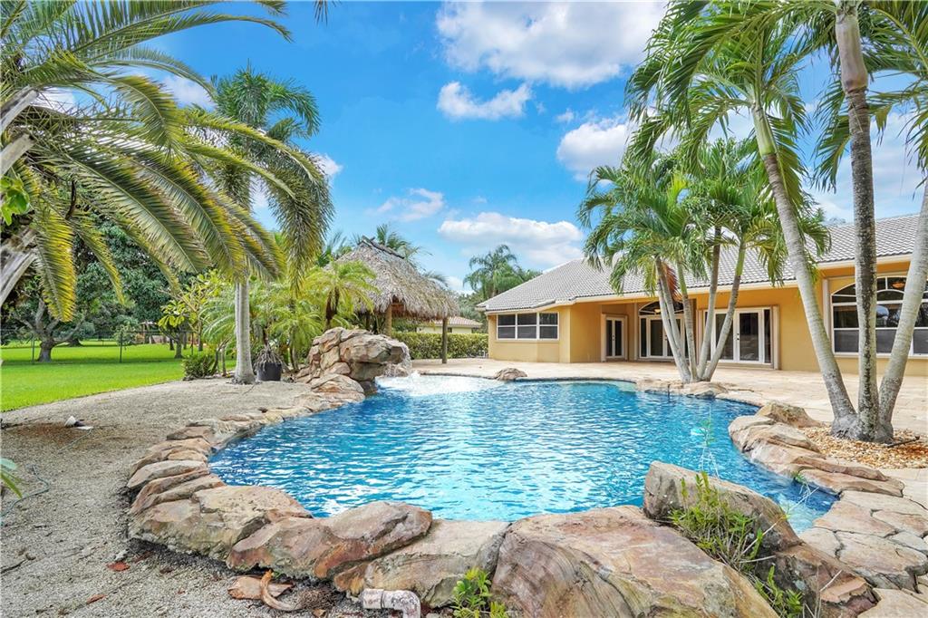 LOCATED IN GATED MYSTIC ESTATES IN DAVIE WITH NEARLY AN ACRE OF LAND WITH EXCELLENT PUBLIC SCHOOLS, PERFECT FOR GROWING FAMILY, LOOKING FOR THE FLORIDA LIFESTYLE. NEW A/C INSTALLED 2020, ROOF HAS 5 YEARS REMAINING. MARBLE FLOORS, VAULTED CEILINGS, WITH MARBLE FLOORS THROUGHOUT, THE KITCHEN IS VERY OPEN AND FEATURES, WOOD CABINENTS, GRANITE COUNTERS WITH STAINLES APPLIANCES AND A BREAKFAST AREA. FOUR BEDROOMS, 2.5 BATHS AND A SEPERATE OFFICE AREA AND A THREE CAR GARAGE. THE SHOW PIECE OF THIS HOME IS THE RESORT LIKE BACK YARD, PERFECT FOR ENTERTAINING WITH JUST UNDER AN ACRE OF LAND AND FEATURES, EXPANDED DECK, PEBBLE TEC POOL AND A ROCK WATERFALL, WITH A TIKI HUT, MINI KOI POND WITH COVERED SEATING