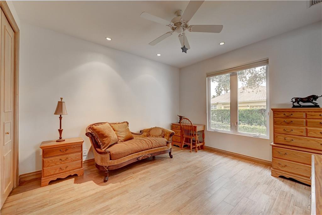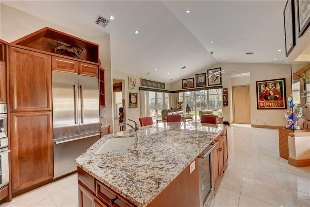 Spectacular 5/4.5 pool home +bonus room situated on an oversized corner lot in the prestigious Whispering Woods. Luxury & sophistication at every turn starting w/the grand foyer leading into a spacious living area with high volume ceilings, recessed lights, real fireplace, formal dining room, family room overlooks the updated eat-in kitchen w/granite, SS appliances, wall oven, cooktop stove, wine cooler & breakfast nook, all upgraded bathrooms, large laundry room w/sink & plenty of storage, spacious master boasts tray ceiling, hardwood floors, His/Her sinks, Jacuzzi tub & walk-in shower, bonus room off master (no closet), French doors open to the screened-in/covered patio area w/lush landscaping surrounding the pool/spa & built-in Summer kitchen. Impact windows & doors. Triple split A/C.
