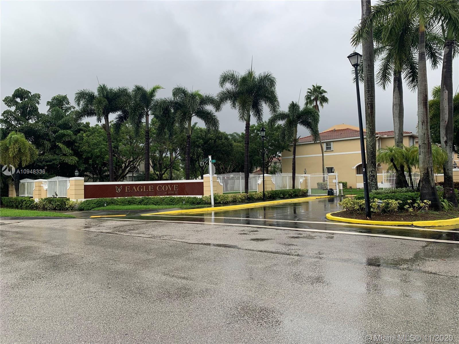 Beautiful 2-story Townhouse in the desirable gated-community of Eagle Cove at Doral. Bright and Spacious with a functional layout floor plan, accommodating 2 Master Suites on upper level and an open concept living-dining-kitchen area on the ground level. The garage has been converted on a Studio or playroom. No carpet, all hard-wood flooring throughout. The community offers a community pool, a green area and controlled gated entrance. One of the cheapest Association fees in Doral. Location, Location, Location, this is a Must See...!