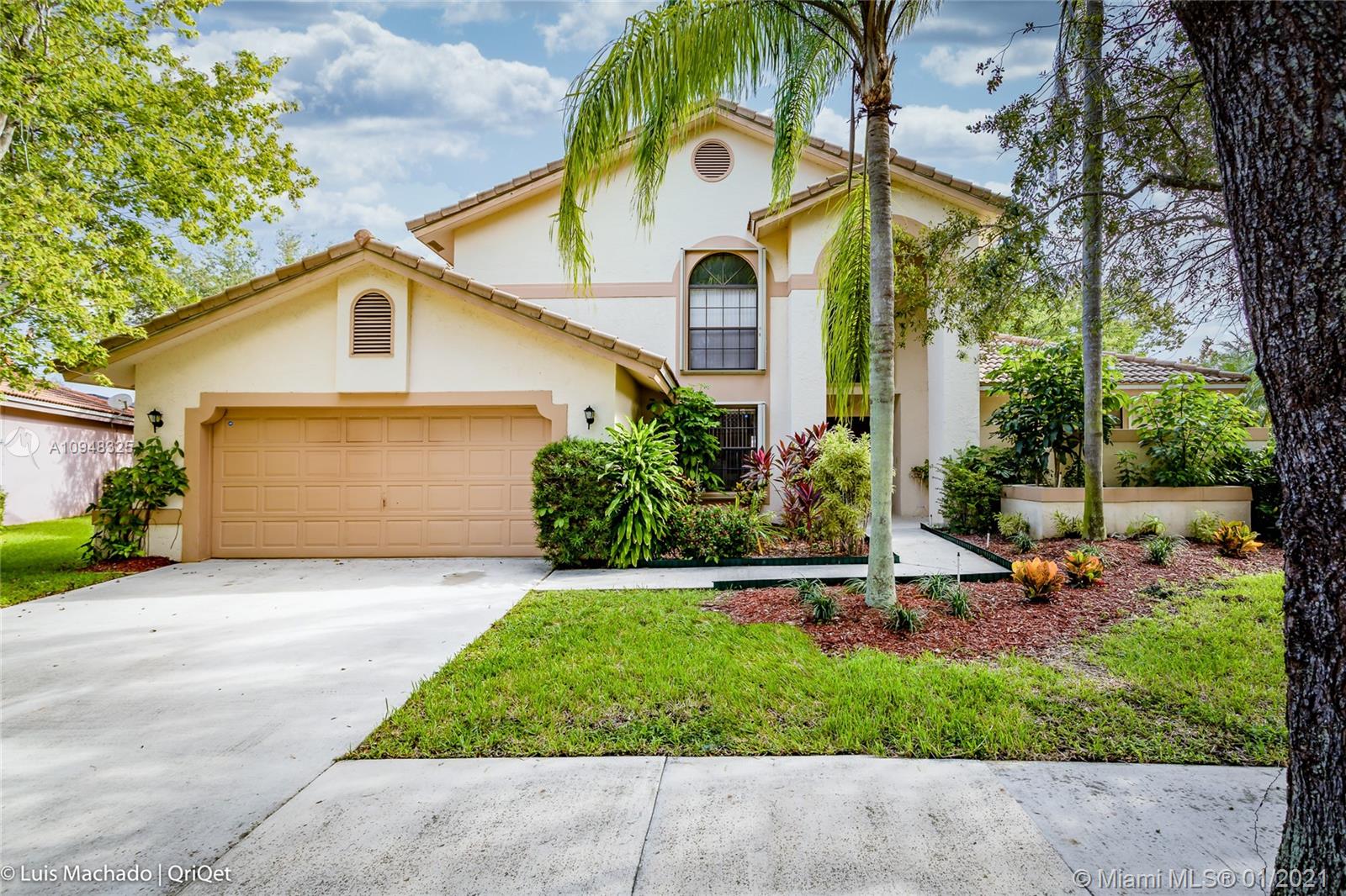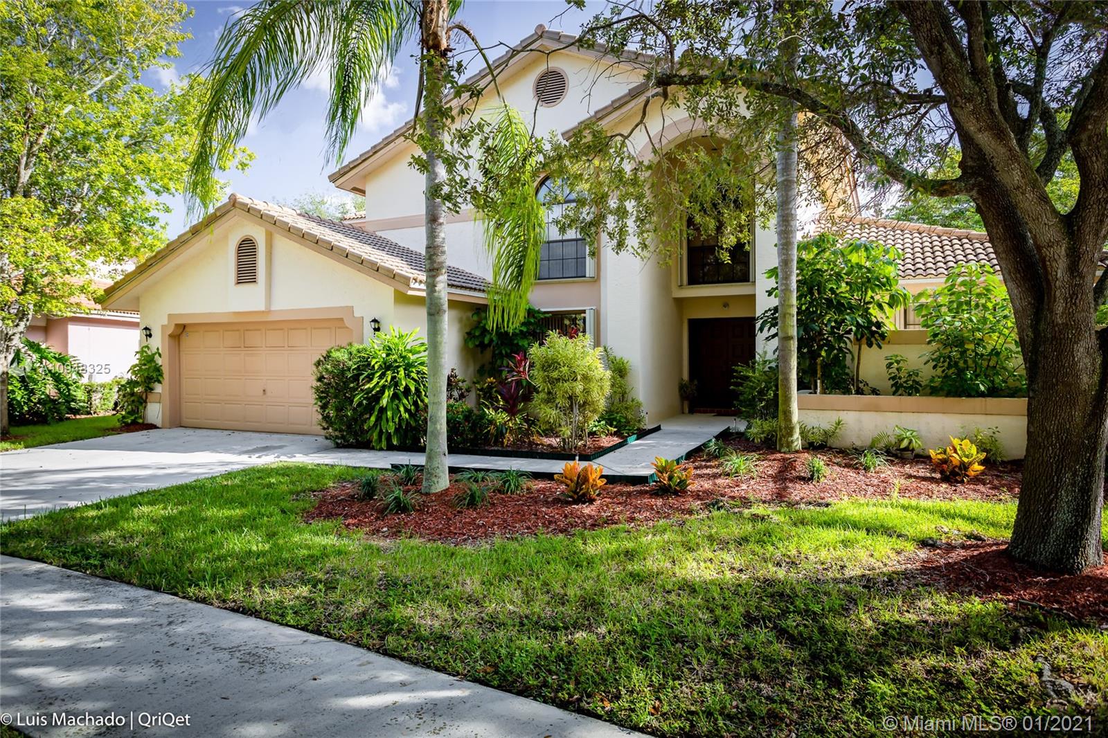 Amazing 2 story home 4 bedrooms 1 Loft 3.5 bathrooms 2 car garage with lakefront, pool, fenced backyard an oversize pie-shaped lot at Sunset Springs, a guard gated community. Accordion shutters on every window. High ceilings. The main bedroom and the 2nd bedroom on the 1st floor. Main bedroom, walk-in closet, double sink and separate shower and bathtub. This home is located at the bottom of the street. Sunset Springs has Tennis Court, Basketball Court, Playground. Close to Weston Town Center, Cleveland Clinic, Shops, Restaurants, and Indian Trace Elementary, Tequesta Trace Middle School Cypress Bay High School. Quarterly maintenance $550.00 (2021). Roof (2013). Pool (2012) Fence (2012) Water Heater (2017) Backyard Fence (2012). Hurricane Shutters. (2013) TWO A/C units (2010)