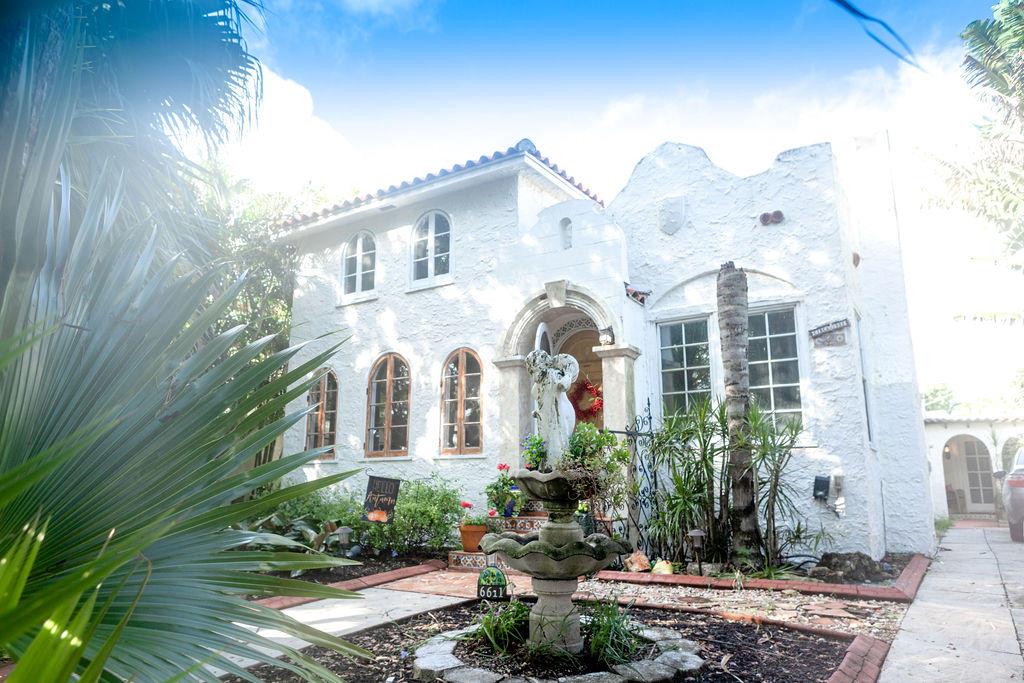 A charming 4BR/2.5BA Mediterranean Home of 1925 with original architecture influenced by a Spanish style includes its own detached guest cottage, spacious yard and patio surrounded by an updated tropical landscaping and no HOA! A Spanish themed fireplace centers the living room accented by Dade county pine flooring and cypress beamed ceiling. The kitchen includes custom wooden cabinets, granite counters and stainless steel appliances. A brand new water heater was installed this year. AC is being regularly serviced. Guest cottage has its own full bath and kitchen. Backyard includes custom Spanish themed storage rooms. The property is located within a walking distance to Intracoastal, Flagler Drive, Palm Beach Island and Atlantic Ocean.