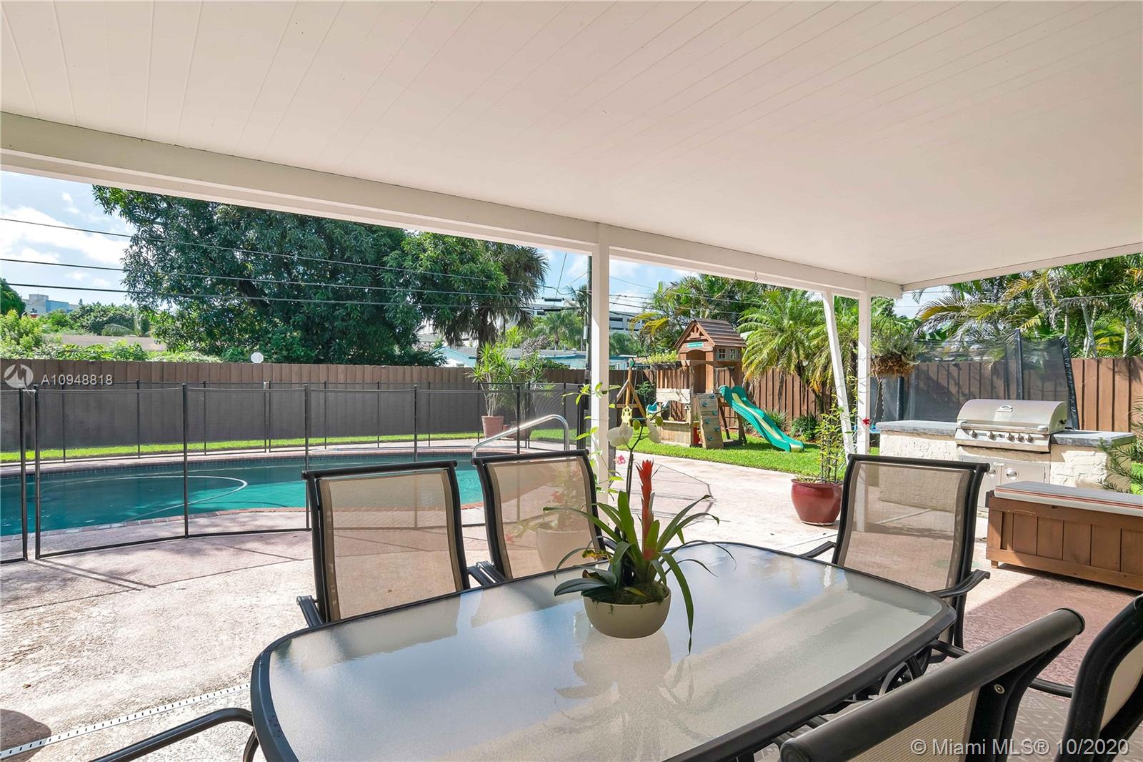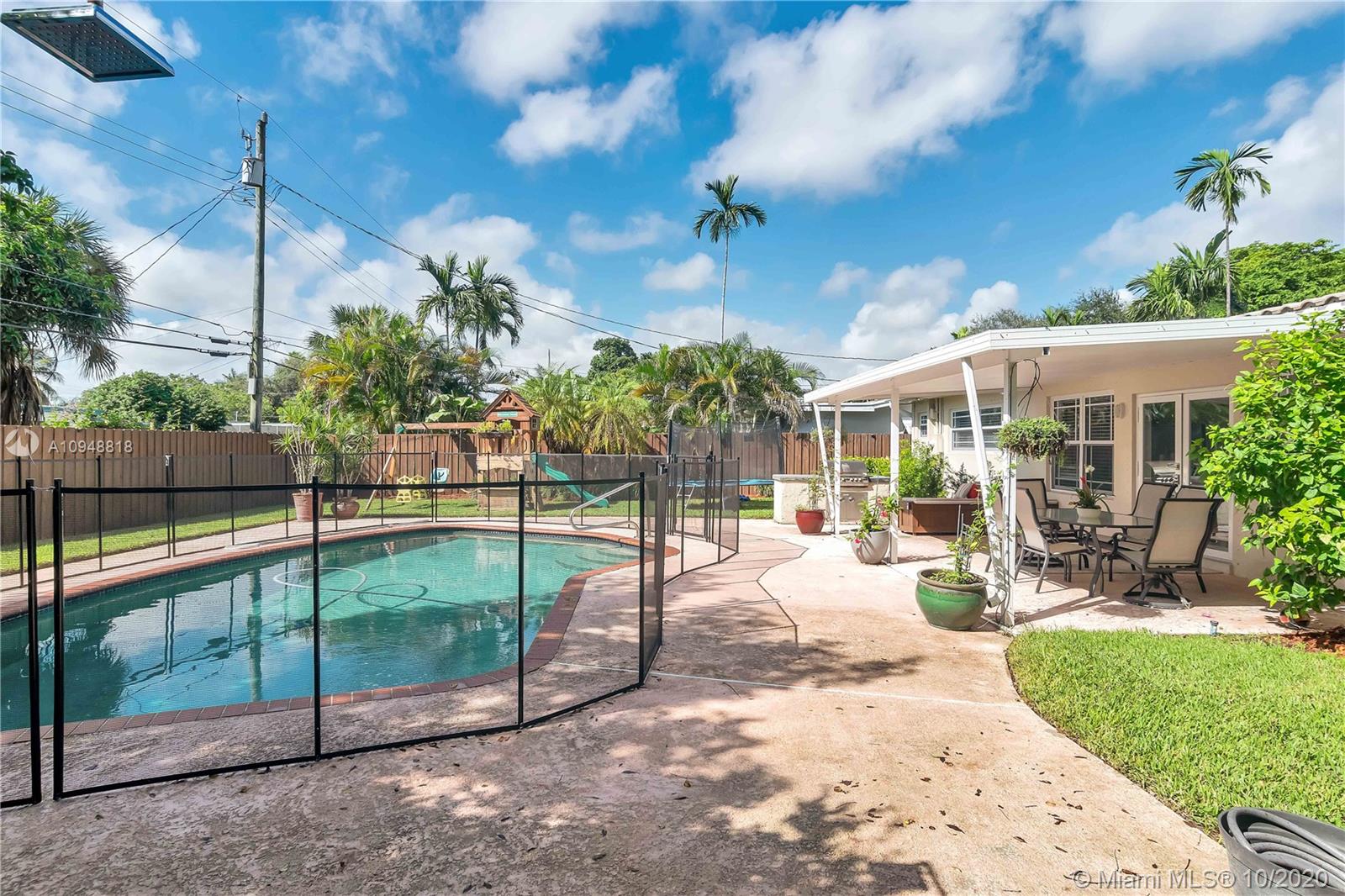 Very bright 3 bedrooms/2 bathroom home located on a cul-de-sac in a well sought after community in Hollywood! Great school zone! Features a 2 car garage. This split floor plan home has porcelain tiles and crown molding/ baseboards throughtout. Impact windows have been installed. Kitchen contains stainless steel appliances, a gas stove and granite countertops. Open concept into living room, dining room, and family room. Walk in closet in Master Bedroom. Bathrooms have been updated with master bathroom having glass shower doors. Fenced backyard contains a large covered patio and pool. Pool has a child proof fence around it. Also in the backyard is an outside BBQ and shower. Home is located less than a mile from the prestigious Memorial Healthcare System and Joe DiMaggio Childrens Hospital.