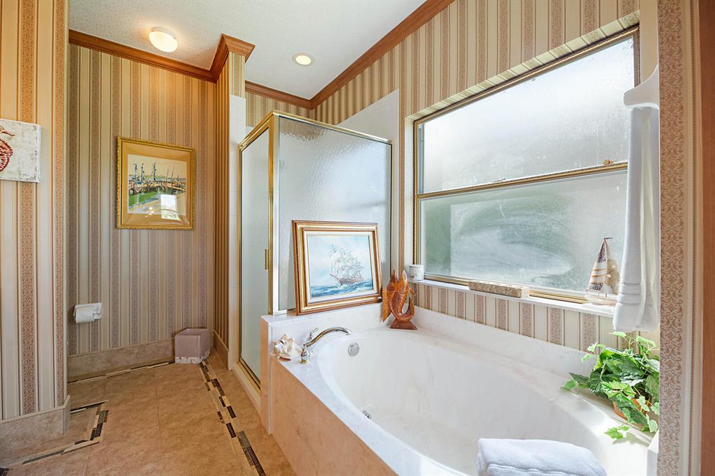 This gorgeous 4 bedroom, 2.5 bathroom waterfront home is full of impressive features and upgrades. Featuring neutral tile on the diagonal throughout the living spaces, an open floor plan and upgraded architectural details like crown moulding, decorative pillars and tray ceilings, this home is ready to impress. The open kitchen features white cabinetry, stone counters, tile backsplash and recipe desk. The spacious master bedroom overlooks the water and offers an upgraded ensuite bathroom with designer wall paper, dual sink and soaker tub. Enjoy morning coffee from the enclosed, air conditioned sunroom overlooking the serene water views, or get some fresh air from the paved patio.