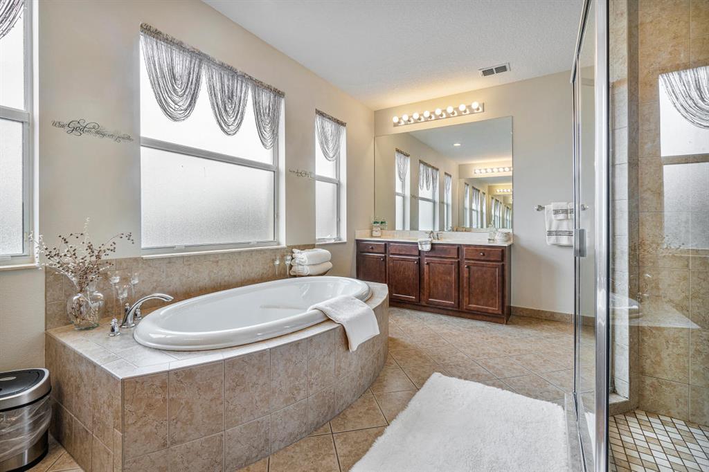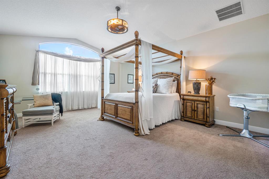PREPARE TO BE IMPRESSED! CUSTOM HOME UPGRADED TO PERFECTION! No expense spared on this LAKESIDE 5 bed w/ loft, 3.1 bath estate home in highly desirable Portosol! The eye catching curb appeal & lush landscaping invite you inside where you will be wowed by the high-end finishes throughout the home, like breathtaking lake views, soaring ceilings, & spacious floor w/ 2nd master downstairs w/ en-suite bath. This chef's dream kitchen features a huge granite island, extended kitchen counters/ cabinets, stainless steel appliances, huge pantry, snack bar seating & opens to the breakfast area & family room. The master suite is luxurious with a double door entry, pristine lake views and bonus room that makes a great office/ nursery, 2 huge walk-in closets, & en-suite bath with soaking tub,