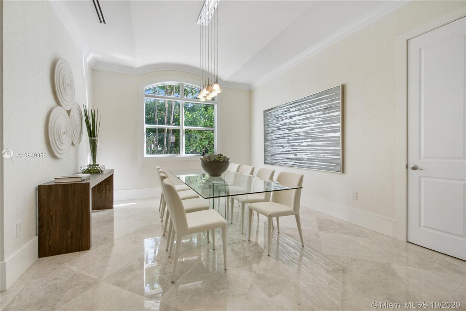 Stunning, magazine quality home in prestigious North Coconut Grove. Walk to bayfront parks & marinas, yet located at one of the highest sea-level elevations in South Florida. Totally walled & gated for ultra-privacy. Light-filled living spaces offer double-height ceilings and a blending of classic architectural details with a modern vibe. Expansive formal living & dining rooms for entertaining. Family room with custom built-ins, opens to the spectacular high-end kitchen w/white-lacquered cabinetry, walk-in pantry, professional gas range & adjacent breakfast area. Incredible master suite features his/hers walk-in closets (hers: 12’ X 19’), luxurious bath w/soaking tub & private terrace overlooking the garden & tranquil pool. Minutes to the Grove village center, MIA, downtown & the Beaches.