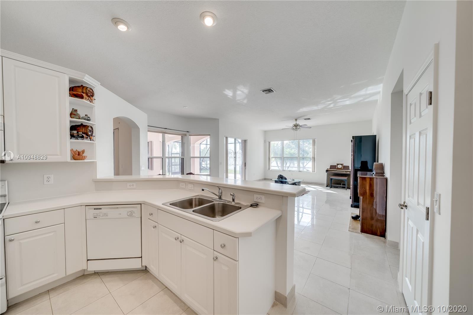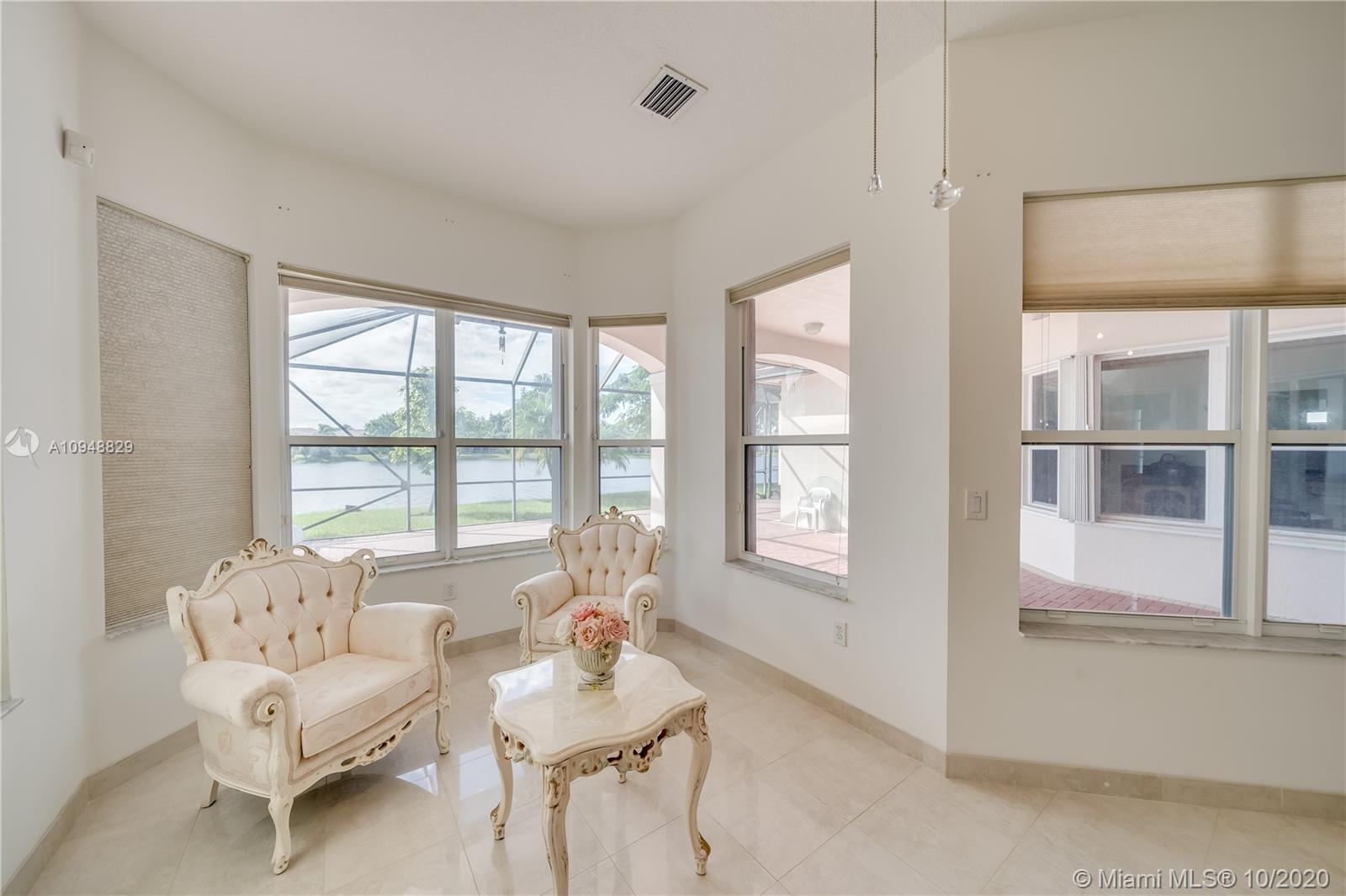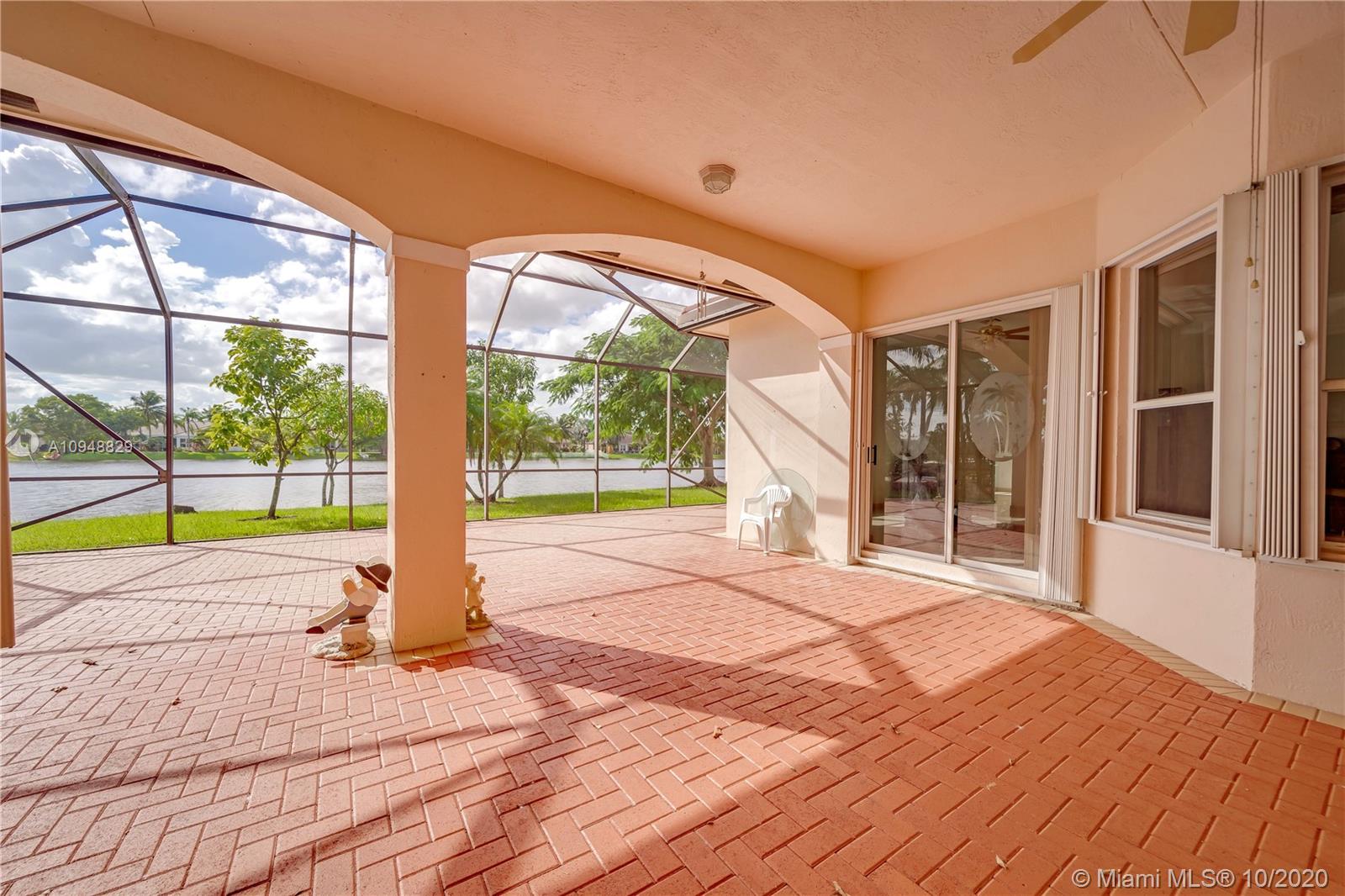 Amazing water views where you can watch the beautiful sunsets from almost every room in this 4/3+ an office in fabulous gated Estates of Pembroke Shores. Just over 3k sqft in this open floor plan with gorgeous tile throughout. Large master suite with sitting areas and dual walk-in closets and spacious master bath. Kitchen overlooks the spacious family room featuring Corian countertops, white cabinets, and appliances. Big secondary bedrooms. Big extended screened in patio with amazing water views. New A/C, accordion shutters, and the list goes on.