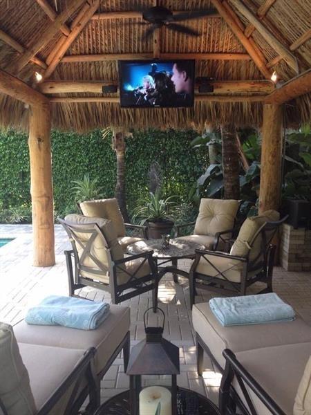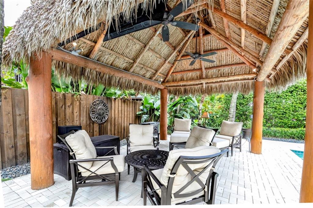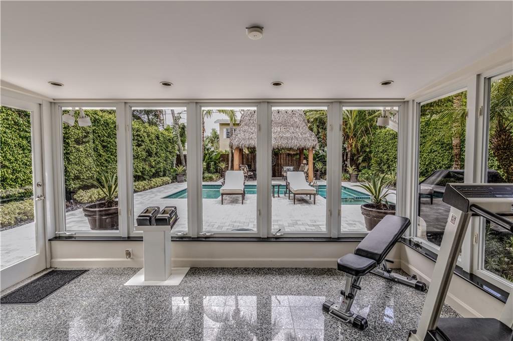 Welcome to this resort style gated home for sale in Fort Lauderdale’s most desirable neighborhood, Rio Vista! Expansive upstairs room w/storage accessed through staircase in master currently being used as an office. The transitional contemporary interior includes Hunter Douglas Silhouette Blinds, all new stainless steel appliances, granite countertops and backsplash, cedar-lined walk in closets with oak shelving and built in safe, eight inch custom crown molding, all granite window sills, granite floors,New Fabrica Nepali style carpeting as well as granite and marble bathrooms. A beautiful sunroom just off the master bedroom looks out to the amazing resort style backyard with pool and custom Tiki Hut. Definitely a must see if you are looking for a beautiful move in ready home in Rio Vista!