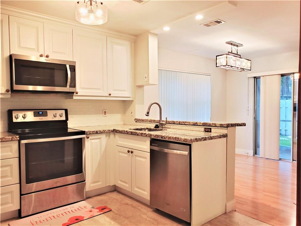 3/2.5 in sought after Quatraine3 Jacaranda with the lowest HOA fees! Kitchen, all 3 baths, lighting, fixtures and many updates throughout! Laminate flooring in living & formal dining area. Kitchen features thick granite counters & breakfast bar, stainless steel appliances & light wood cabinetry. Side den off kitchen provides the perfect den/home office space. The spacious bedrooms upstairs feature gorgeous updated private bath & dbl closets in Master BR. Just finished beautiful guest bath! Full size washer & dryer, screened patio, easy to care for fenced backyard, partial garage space for storage. Very well maintained community with pool, close to parks, great schools, pet friendly and the same low HOA fees for 14 years!