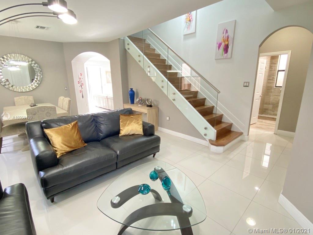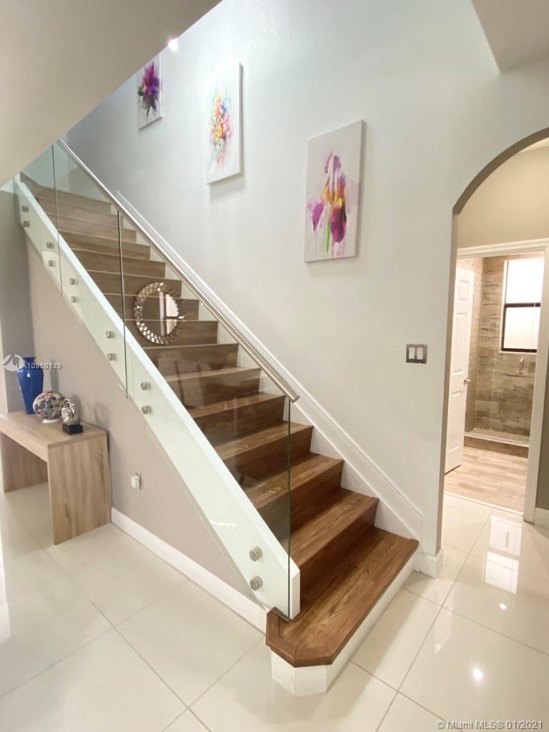 Beautiful single-family home in exclusive gated community Grand Bay! The property features 4 bedrooms 3 bathrooms (1 bedroom downstairs). Property is fully upgraded: Impact Windows, Security System that includes 6 cameras, Garage with 2 Part Epoxy Floor, Glass Staircase, Wooden floor on stairs, and second floor, Italian porcelain first floor, All closets are fully upgraded, Upgraded kitchen with quartz countertop and modern sized sink, Accent walls, Upgraded Modern Concrete Slab Backyard with special lighting, 2 bathrooms fully upgraded, Designer Style front yard. Access to the majestic Park Central country club.