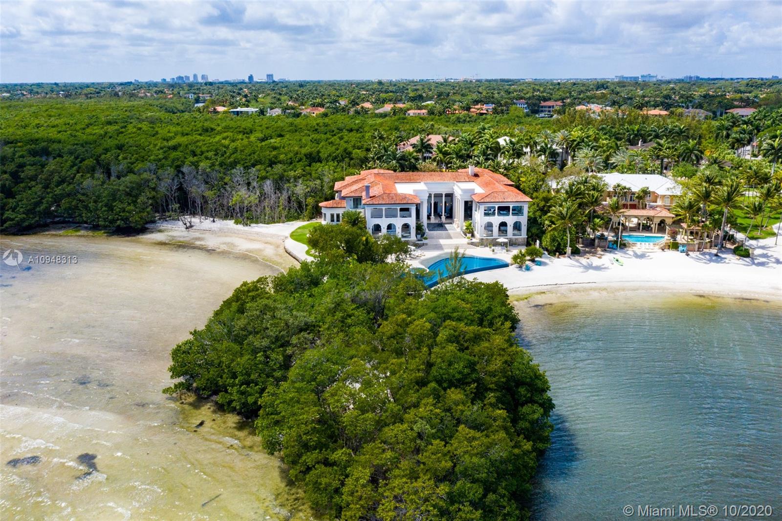 Paradise island estate complete with your very own sandy beach in the most exclusive gated community, Tahiti Beach. Find your secluded luxury lifestyle here. Located on a 1.5 acre peninsula with over 530 feet of open bay views. One of only 26 residences on this private island. Mesmerizing unobstructed views from nearly every corner. Nothing short of grand, the resort style backyard features marble throughout and cathedral inspired covered terraces equipped to entertain. 10 bedrooms, 10.5 bathrooms, designed by architect Ramon Pacheco and completely renovated in 2016. Soaring ceilings, elevator, fully loaded theater, heated pool. Your paradise awaits.
