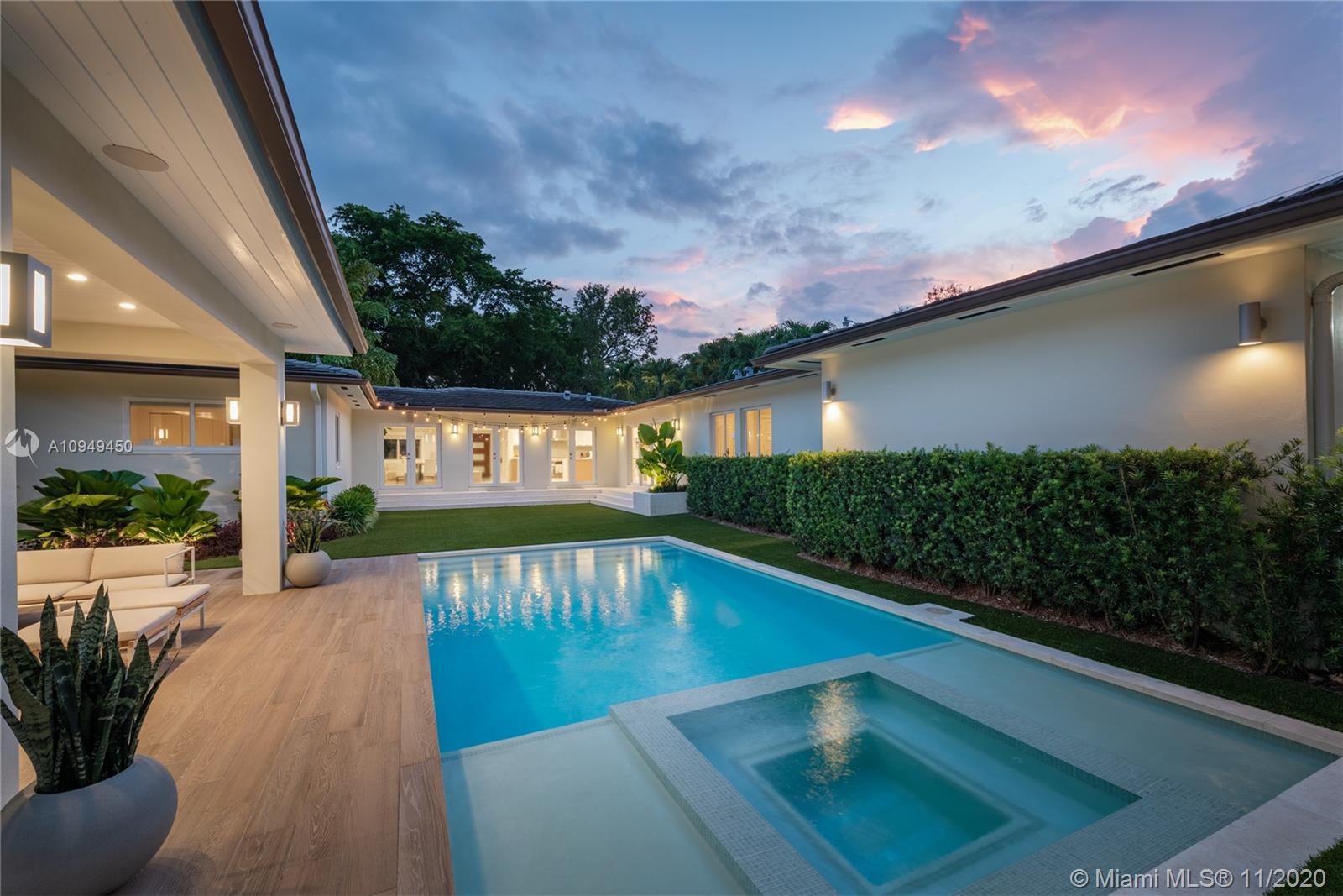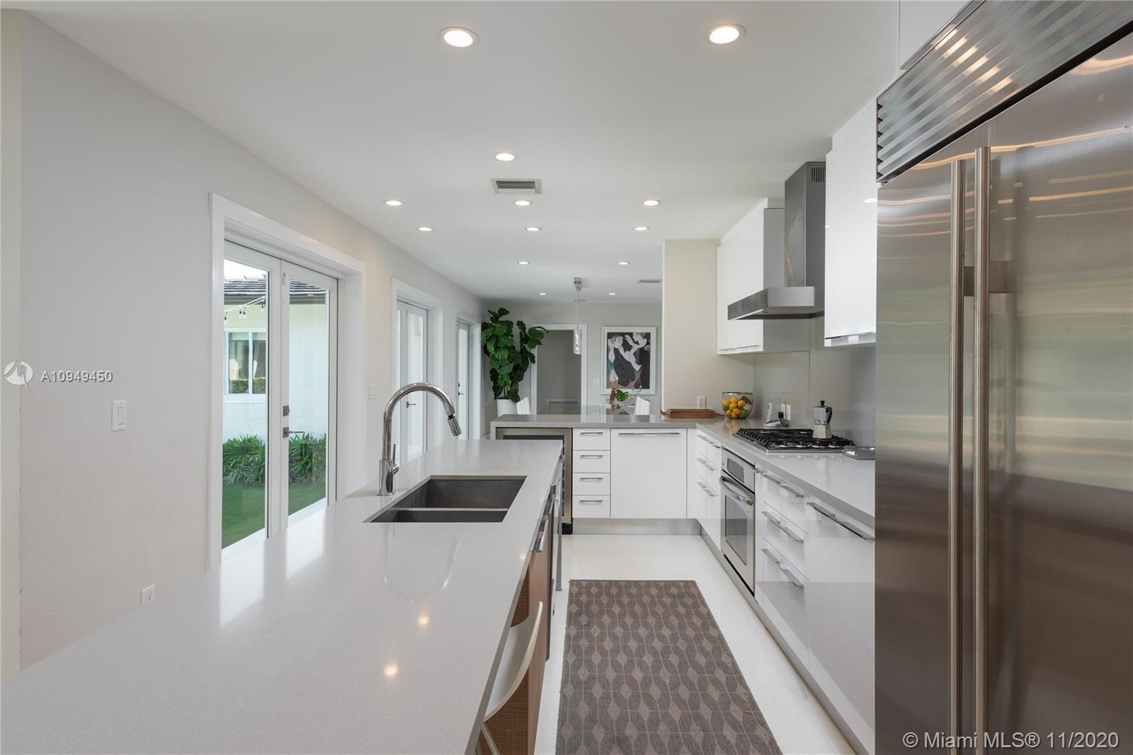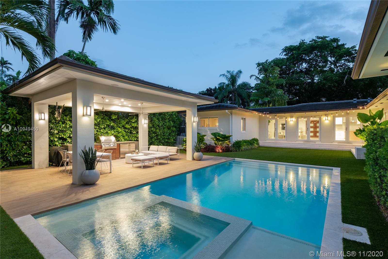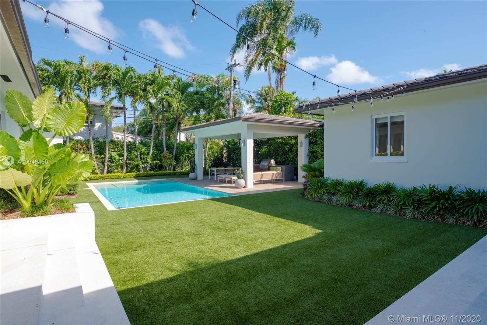 Beautiful home in Coral Gables, completely remodeled to the studs with an amazing back yard, perfect for entertaining. Living areas are built around the pool and the rooms are filled with natural light. A covered patio was recently added to enjoy al fresco living/dining with a fully integrated barbecue outdoor kitchen! Oversize pool with a new built-in spa/jacuzzi for your enjoyment. Inside you are greeted by a beautiful living/dining area with brand new Lube kitchen overlooking the spectacular pool area. Four-bedroom split plan layout: master on one side, guest suite at the back of the house and two bedrooms on the other side for total privacy. Two blocks from the Biltmore and some of the best tennis in Miami and minutes from the shops at Miracle Mile. 15 minutes from Miami airport.