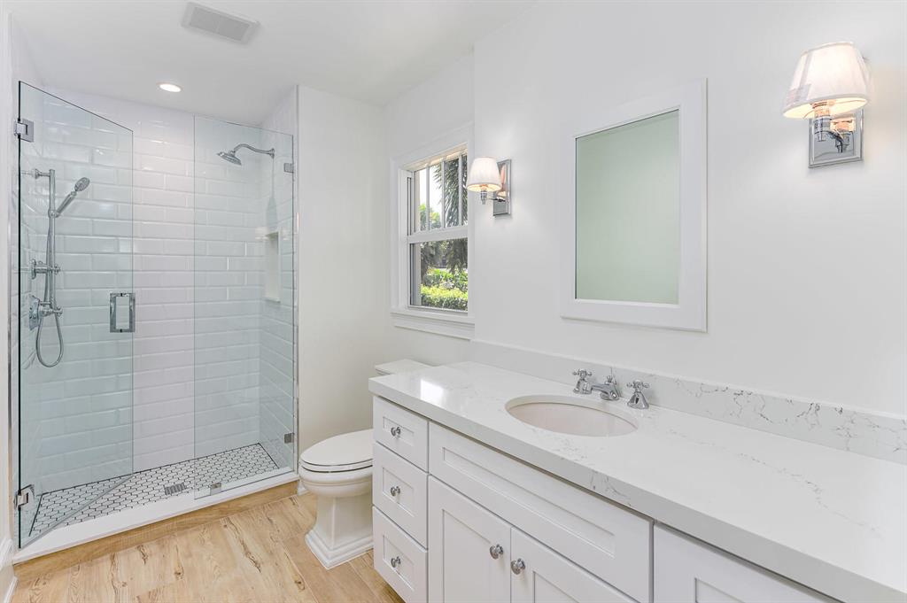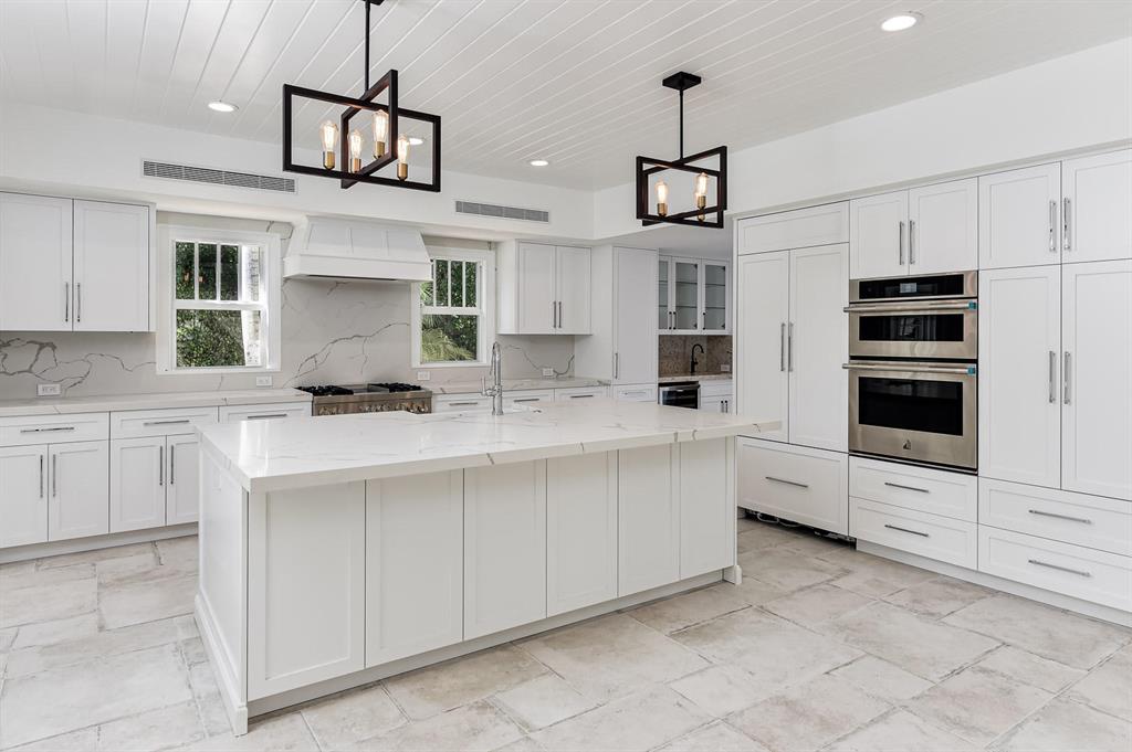 Completely renovated with an open free flowing modern floor plan and state of the art finishes, this three bedroom plus private guest apartment is ready for occupancy. Perfect for casual living on desirable Seaspray, its many highlights include: a stunning new kitchen with top appliances, new baths, living room with fireplace, family room, separate den/office, new flooring all in a neutral palette, new landscaping, great loggia and pool, impact windows/doors, 2 car garage. Beach access.