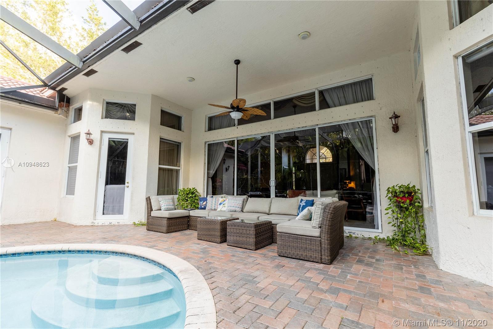 This elegant 4 bed/5 bath solar-heated pool home is located on a large, corner lot in prestigious Ternbridge (The Estates), featuring beautiful saturnia marble flooring, volume ceilings, upgraded chef's kitchen with double ovens, custom drapery, large walk-in closets for plenty of storage, formal dining, formal living room & custom mouldings. The built-in BBQ, extended patio and large awning are ideal for entertaining! The screened in back patio is private and serene, lined with lush landscaping and fully fenced-in yard. *The 4th bedroom with beautiful ironwork is being used as an office. Large master suite features spacious his and hers closets with built-ins and hard wood flooring. All bedrooms have en-suites. Property equipped with surveillance system and central vac. PRICED TO SELL!