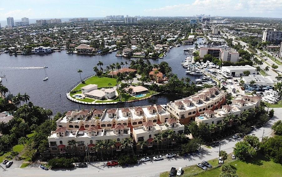 This 4 Story Corner Townhouse is a Boaters Dream with its own Dock for up to a max 35’ boat. Ocean Access with no fixed bridges. As you enter the townhouse from the garage or the front door you have a small foyer that leads to a bedroom with its own bathroom and walk in closet. Next to the stairs in the foyer is also the elevator that stops on all floors as well as the roof top terrace. On the second floor of the townhouse you have the living room, dining area, kitchen, laundry room, pantry and half a bathroom. As you walk up the stairs or take the elevator to the 3rd floor, you will find another bedroom with full bathroom and walk in closet as well as the master bedroom with walk in closet and full bathroom as well. Sprinklers on all 3 floors. No water views. Click on Virtual Tour.