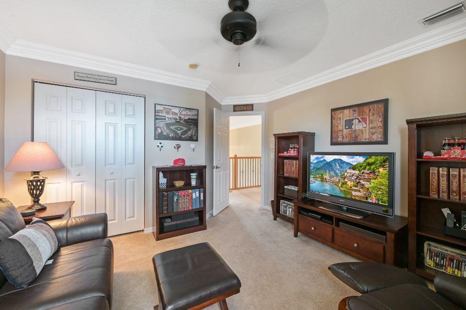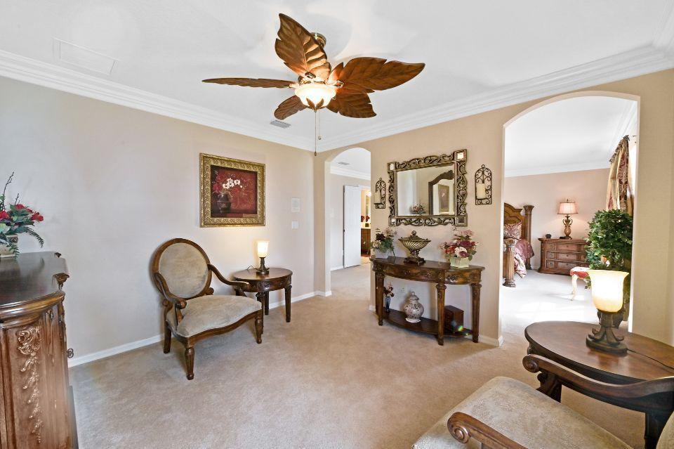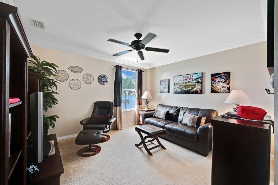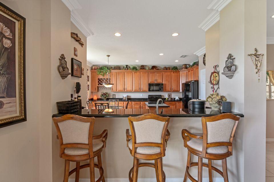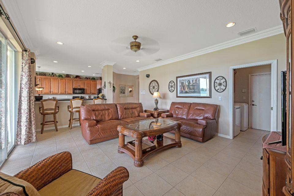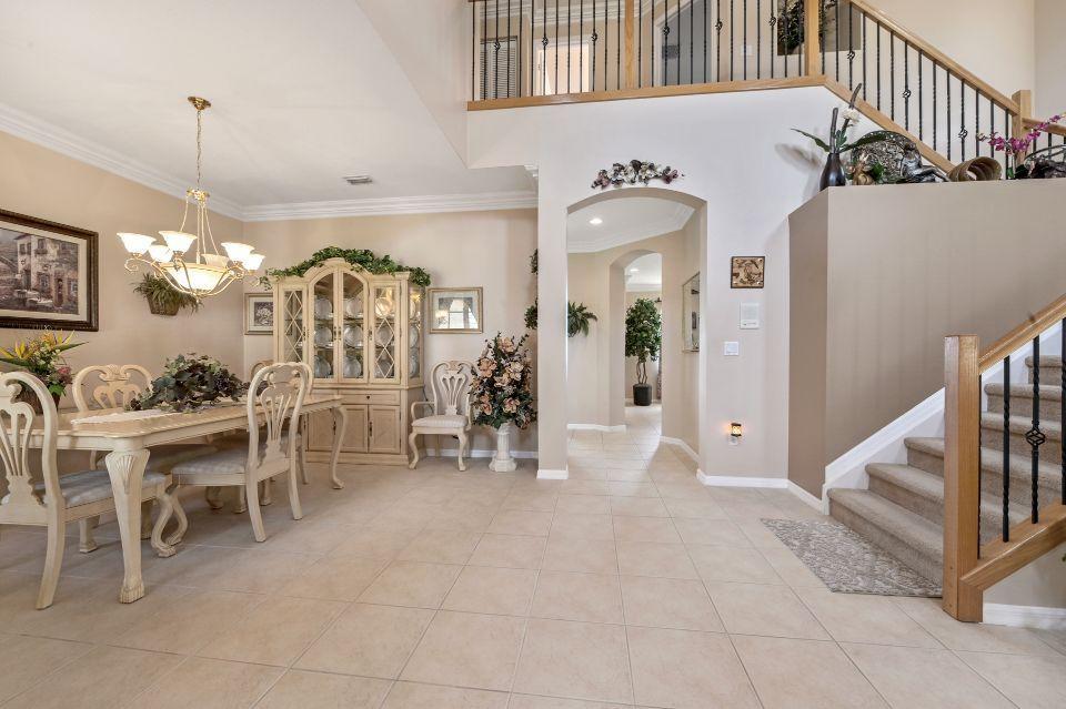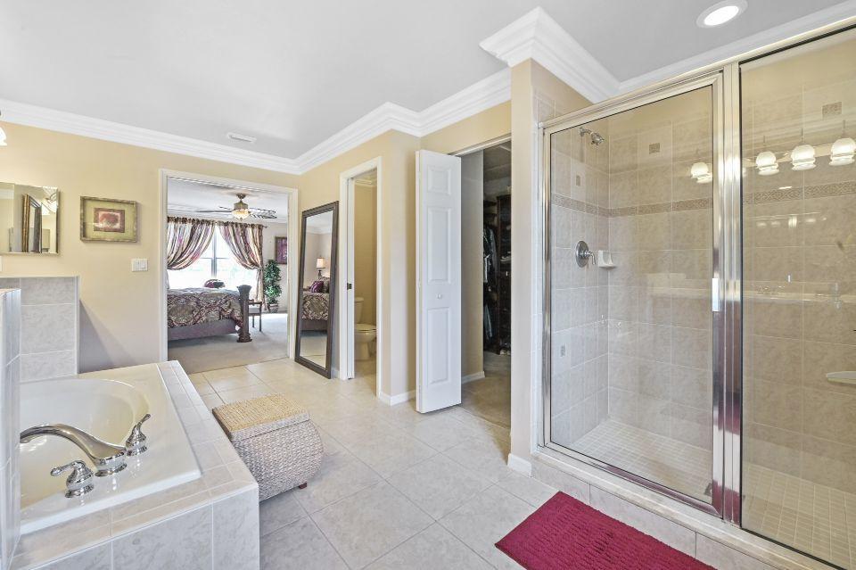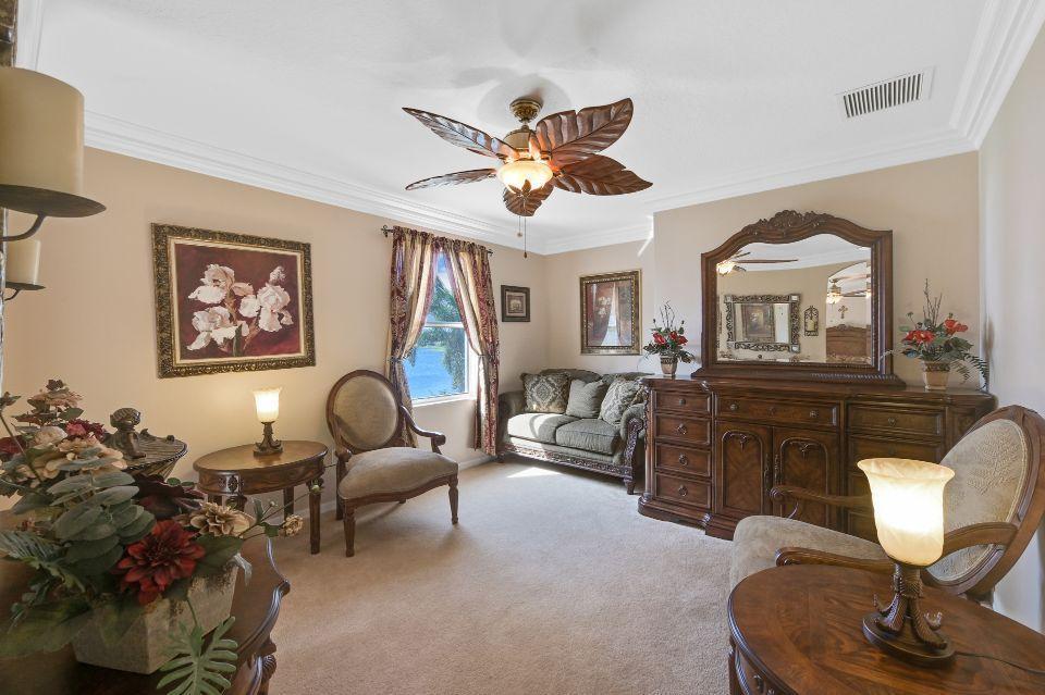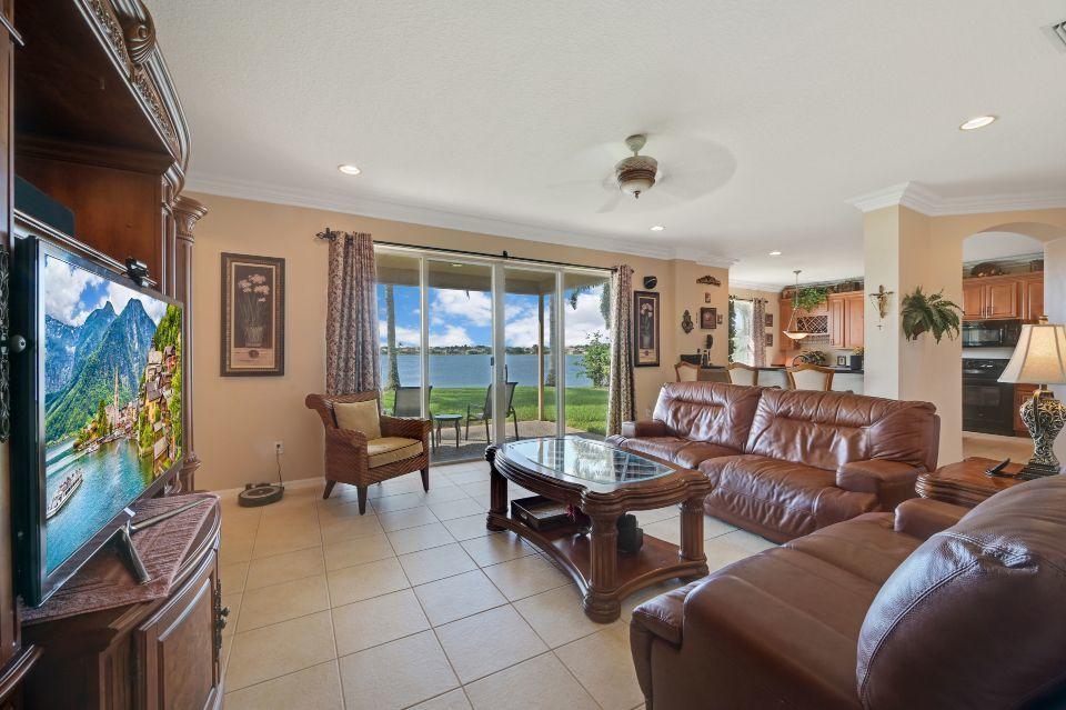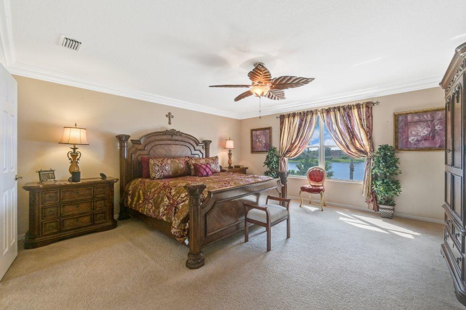Beautiful lakefront home in the perfect location! This 5 bedroom, 3 bathroom home has soaring 20 foot ceiling in living area with crown molding throughout. Spacious kitchen with loads of cabinets & counter space, island, and eat in counter top. Stunning master bedroom with massive walk-in closet and bathroom. Attached is a bonus sitting area, which could easily be converted to an additional bedroom. Enjoy beautiful Florida sunsets at the comfort of your patio looking out over the lake. Stonehaven Estates has all the amenities you want with low HOA fee. Internet and cable, alarm monitoring included. Monthly pest control service. Located with in Wellington's excellent school district. Short drive to the Wellington Mall, fine dining, shops. and Wellington Regional Hospital.