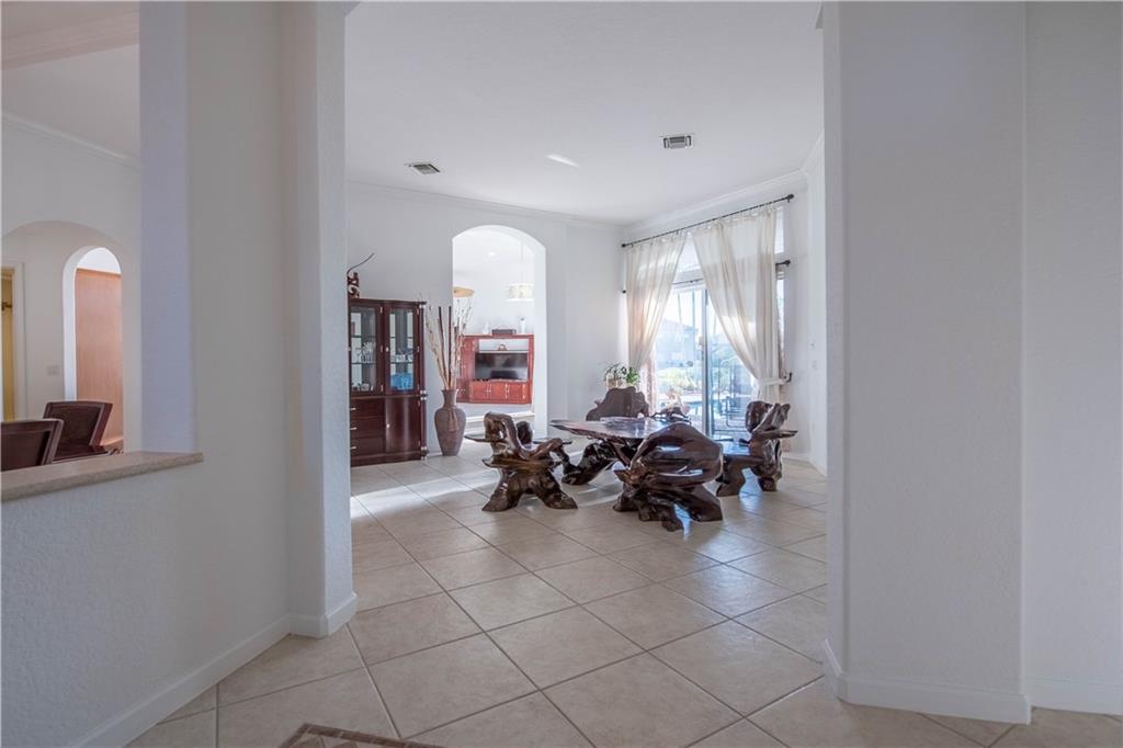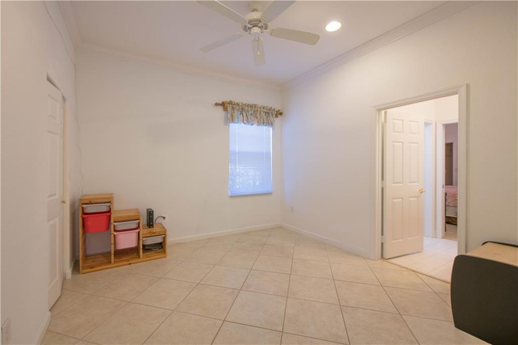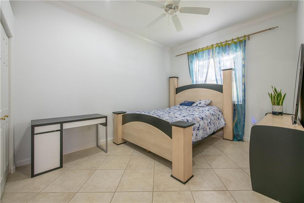 Beautiful one-story home filled with natural light. The house was recently painted inside with a neutral color. Gourmet kitchen with wooden cabinets, plenty of space for storage, and double oven. Tile throughout the entire house. Accordion shutters, security cameras around the house and extended driveway. Enjoy the peaceful lake views and pool surrounded by palms. Amazing clubhouse with tennis, basketball, volleyball courts, and fully equipped gym and pool. Gated community and rated A schools!