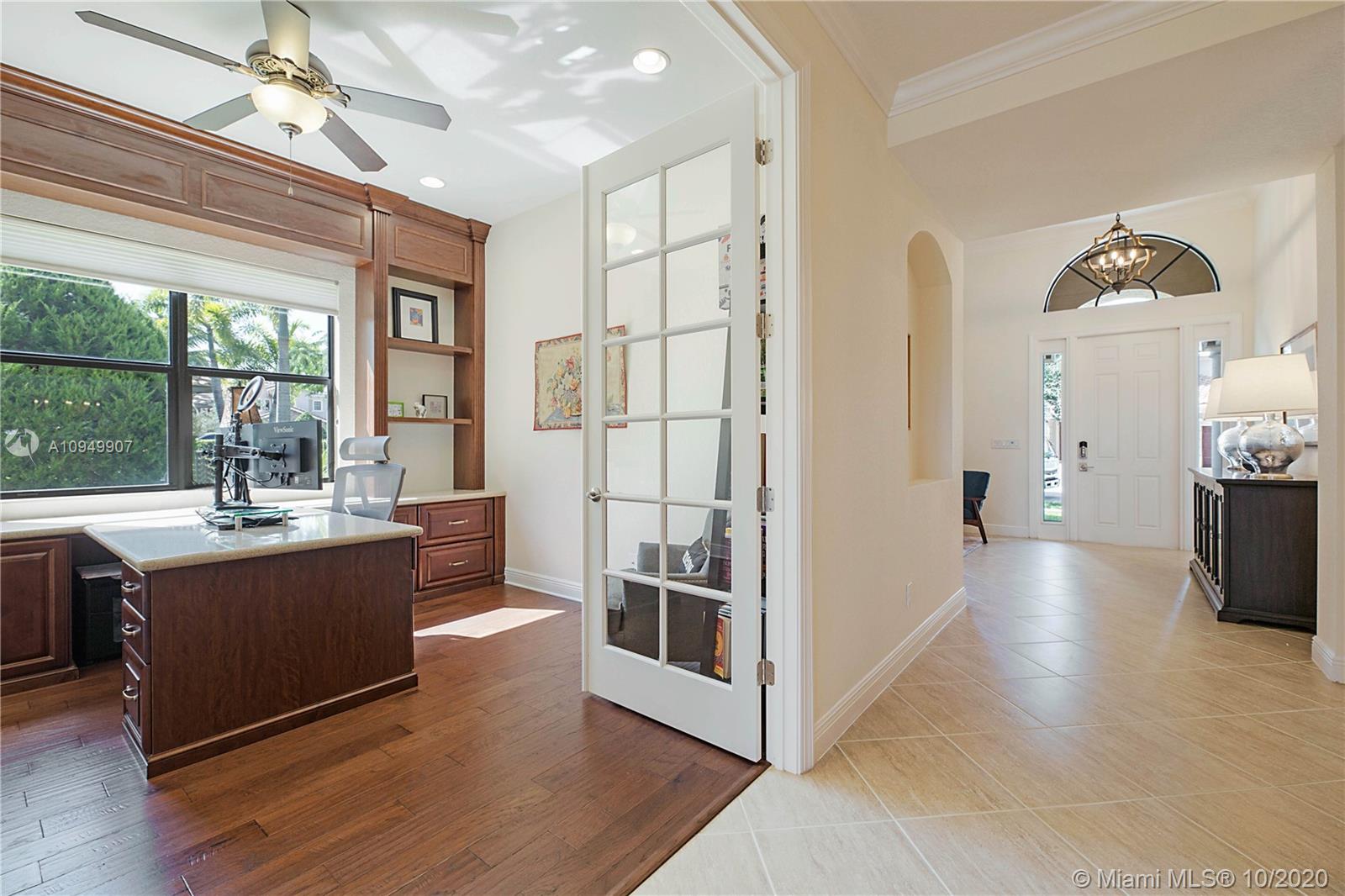 This exquisite 5/3+office+loft home located in Parkland Golf & CC situated on one of the larger lots in the community w/ undeniable privacy & incredible views overlooking the preserved wetlands & 13th fairway. Enter through your grand foyer & your greeted by volume ceilings & built-in wine bar. Private office w/ built-ins & 1 full bedroom & bathroom located downstairs. Open Chefs kitchen overlooks the breakfast area & family room w/ built-in entertainment center. Loft, 3 bedrooms & master suite located upstairs. Master-suite feature huge walk-in closet w/ built-ins & balcony w/ captivating views. Covered & screened lanai, outdoor summer kitchen & oversized pool. Impact glass. Tandem 3 car motor-sport garage w/ built-ins. Built 2012. Golf membership is not mandatory & incredible amenities!