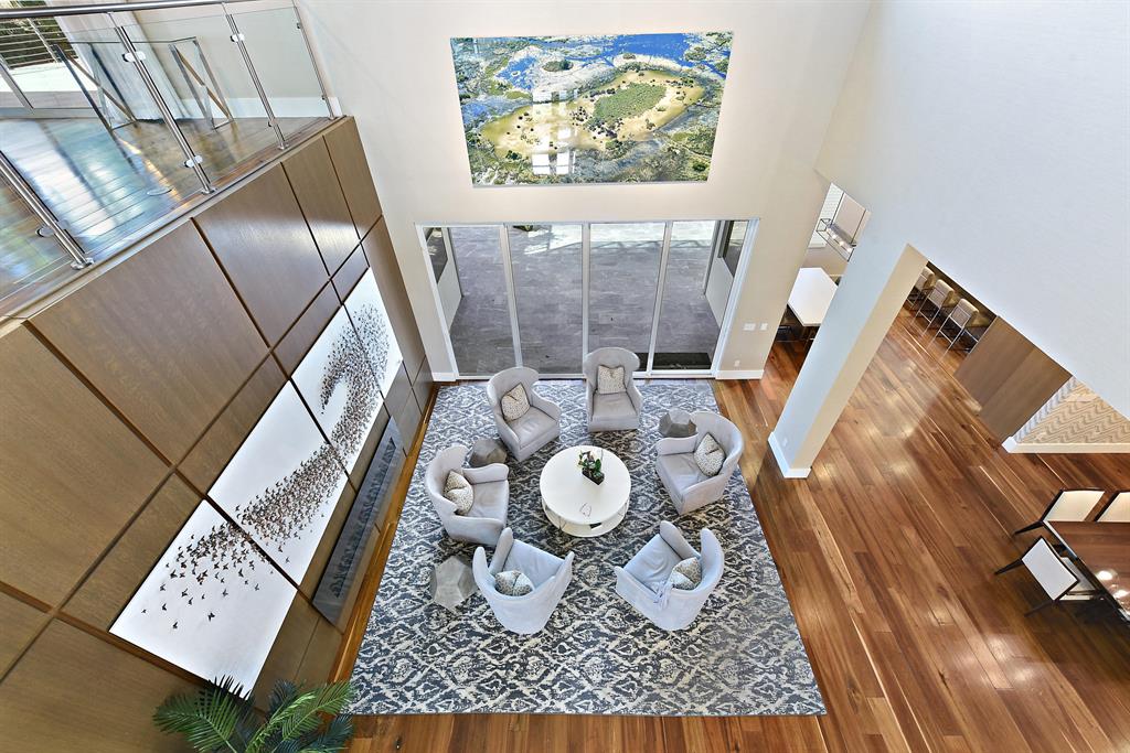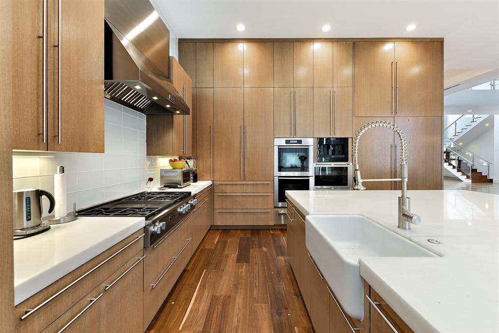 Built in 2016. Smart house featuring contemporary architectural elements including all the electronics, SONOS sound system, and cameras. Steel and glass staircase, wide-plank floors with fabulous finishes throughout. A formal living room with modern fireplace and formal dining room with 1,000 capacity wine closet and bar with onyx countertop. Chef's kitchen with large marble island, Miele gas range and ovens, Sub-Zero side by side refrigerator and freezer, Wolf microwave and 2 Viking dishwashers. The ground floor master wing includes a grand master suite with luxurious his and her baths and generous and beautifully appointed closets. Upstairs there is a loft, terrace and 4 en suite bedrooms. The lushly landscaped property features a heated resort style pool & spa