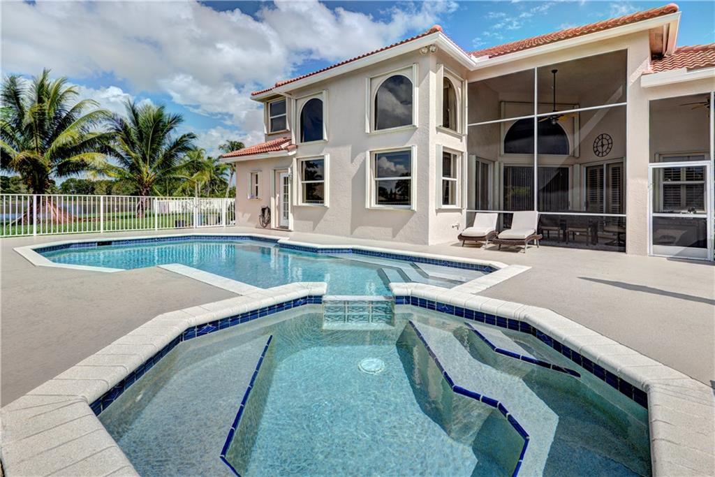 LARGE 5 bedroom PLUS LOFT, 3 bath home with 3 car garage boasting long lake views & OVERSIZED POOL in prestigious Boca Falls! Home sits on a Cul-de-sac & oversized pie shape lot. High ceilings in living, family room and patio areas. Brand new roof installed in September, brand new exterior, driveway and pool deck painting. Brand new downstairs AC, both upstairs AC and water heater 3 years old. Master bedroom + guest suite downstairs & 3 bedrooms plus loft upstairs. Hurricane accordion shutters. Community has 24 hour man guarded gates, remodeled clubhouse, modern gym & pool, tennis courts with league play. A+ schools!!