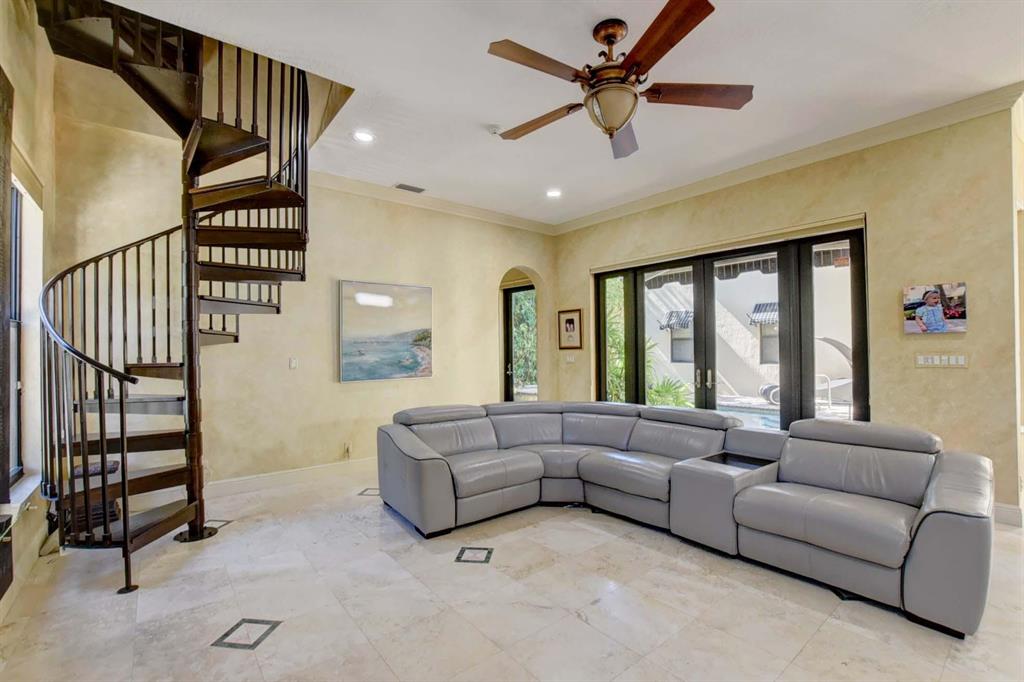 Fabulous highly upgraded 6 bedroom home in East Boca. This luxurious 6 bedroom, 5 bath, 3 car garage home is in a small gated non-equity community with low HOA fees just minutes to the beaches, downtown and steps away from the new El Rio Park. You will find impact glass; Chicago brick pavers; marble flooring; master bedroom with fireplace and 2 magnificent large closets; large office with a separate staircase leading up to this room off the family room; heated/chiller/salt water pool and spa and retractable awnings; highly upgraded kitchen with extra large island; 6 burner gas stove; two drawer dishwasher; Tesla charger and more. The floor plan offers one bedroom downstairs and the rest upstairs. This beautiful Mediterranean 2 story home was built in 1996 and is loaded with extras