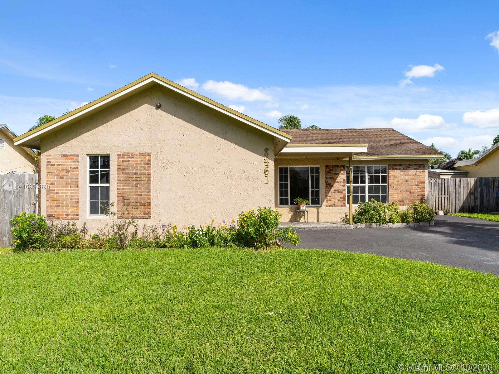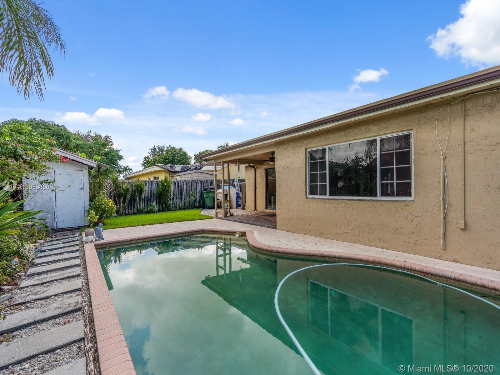 Come fall in love with this home perfectly situated in a sought-out neighborhood of Pembroke Pines. This house is ready for you to put your mark on it and make it yours. Walk into an open living space, tile throughout main living area. Dining room opens to an additional bedroom or office, that overlooks pool and sliding doors that will lead you to covered patio. Kitchen has been updated with stainless steel appliances, wood cabinets with soft close features, and granite countertops. This kitchen offers lots of natural lighting as well as storage and access to covered patio. Split floor plan, carpeted bedrooms, updated bathrooms. Outdoor oasis with pool, covered patio, and shed; perfect for entertaining. Fenced yard is spacious with gates on both sides, double gate for easy RV/boat parking.