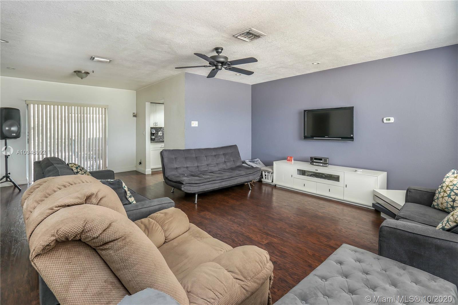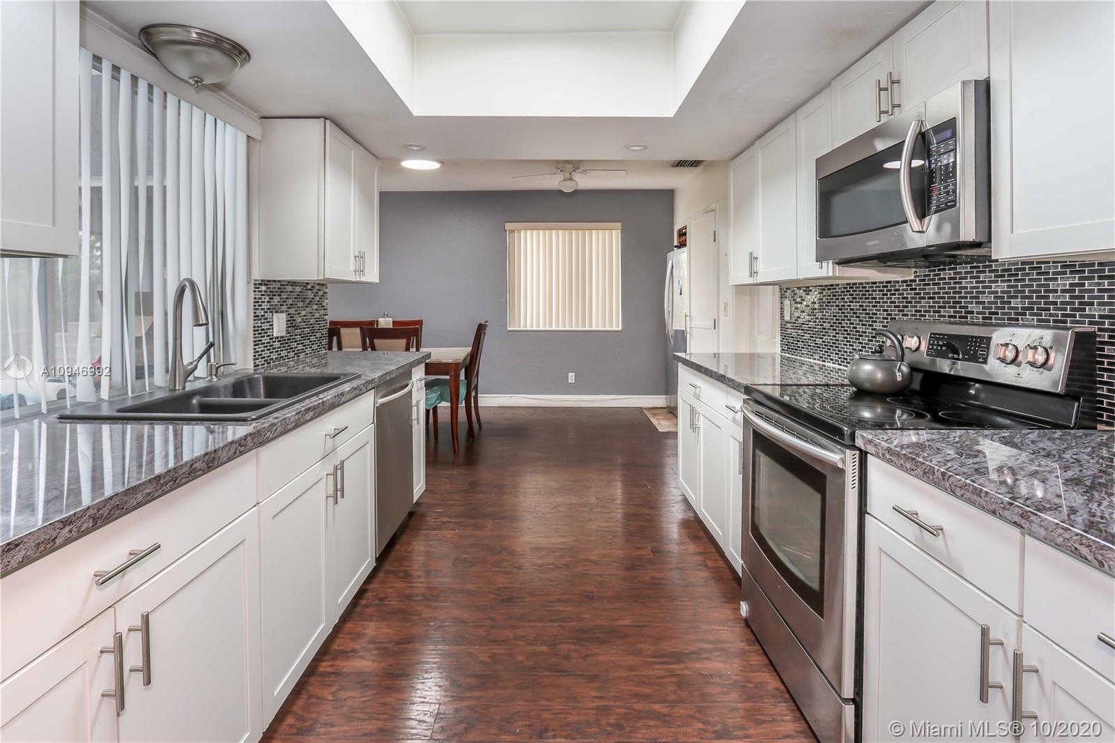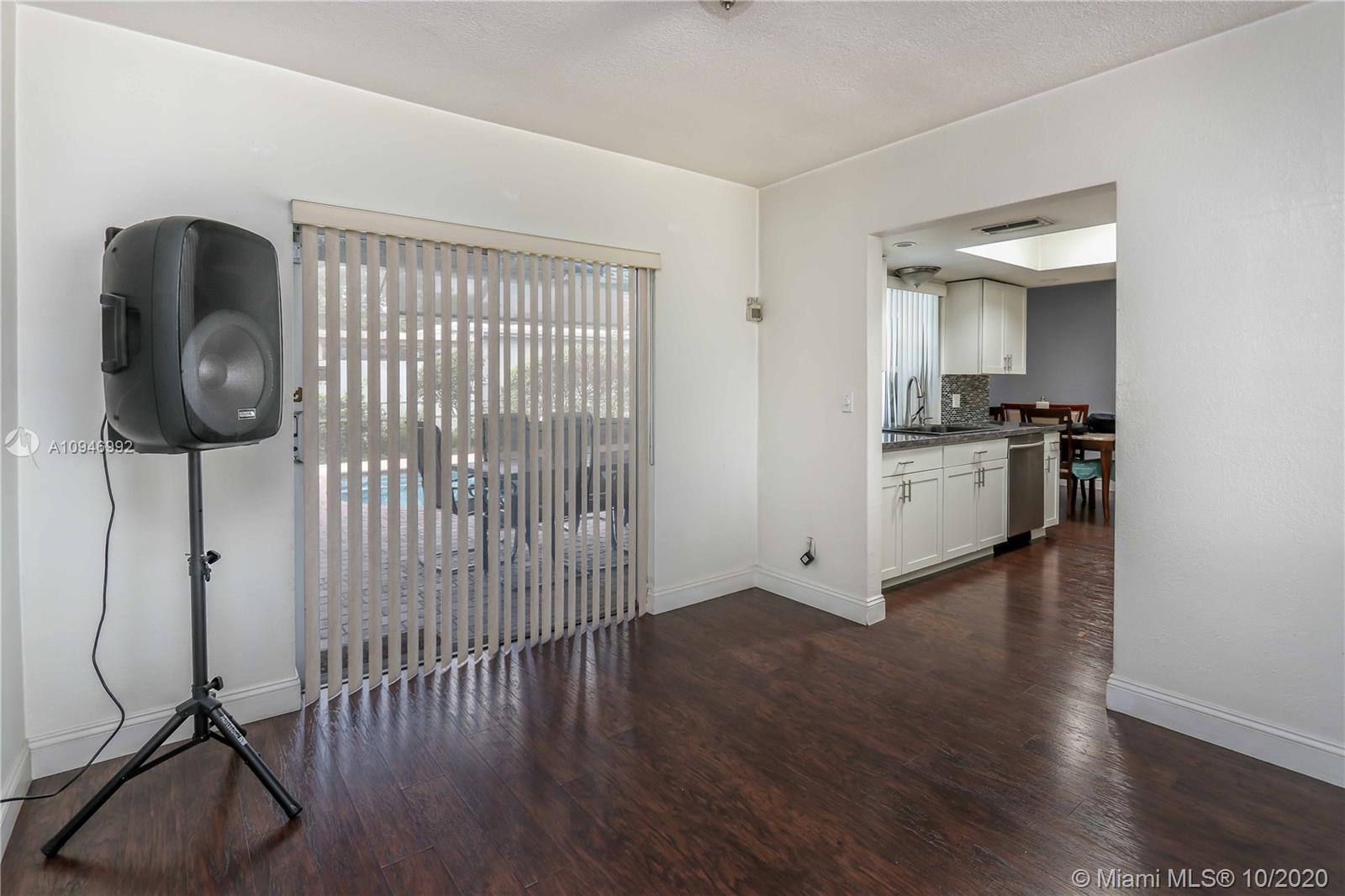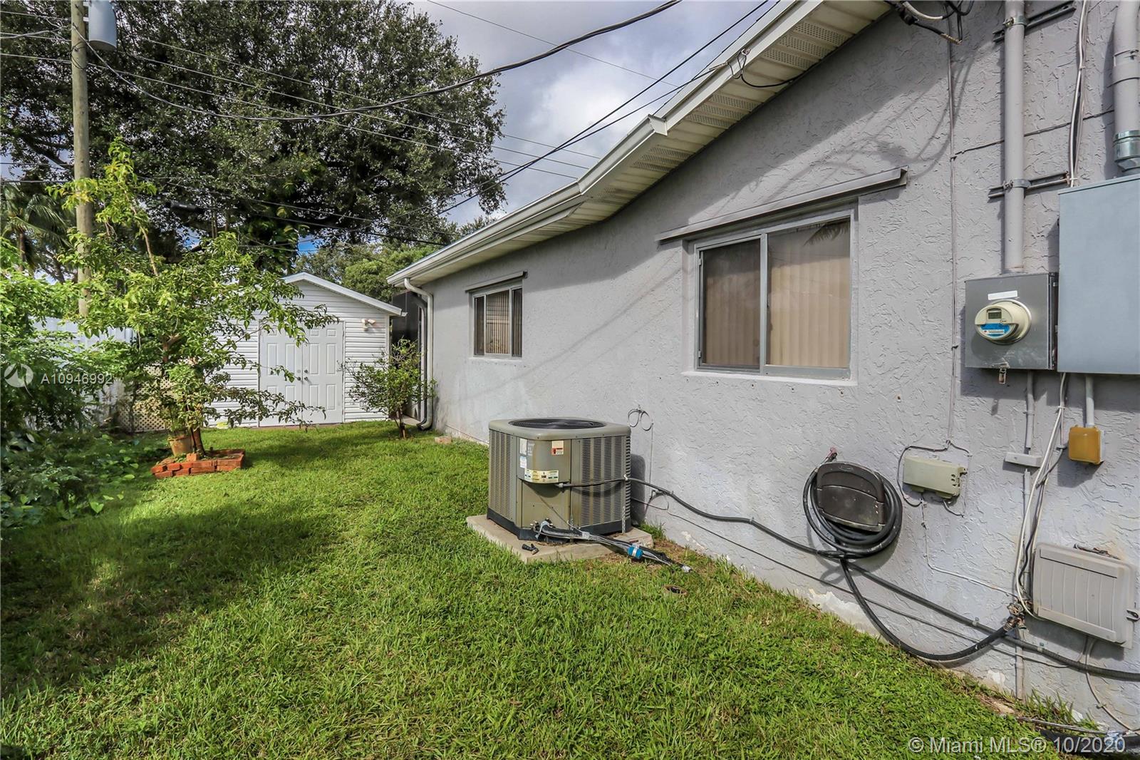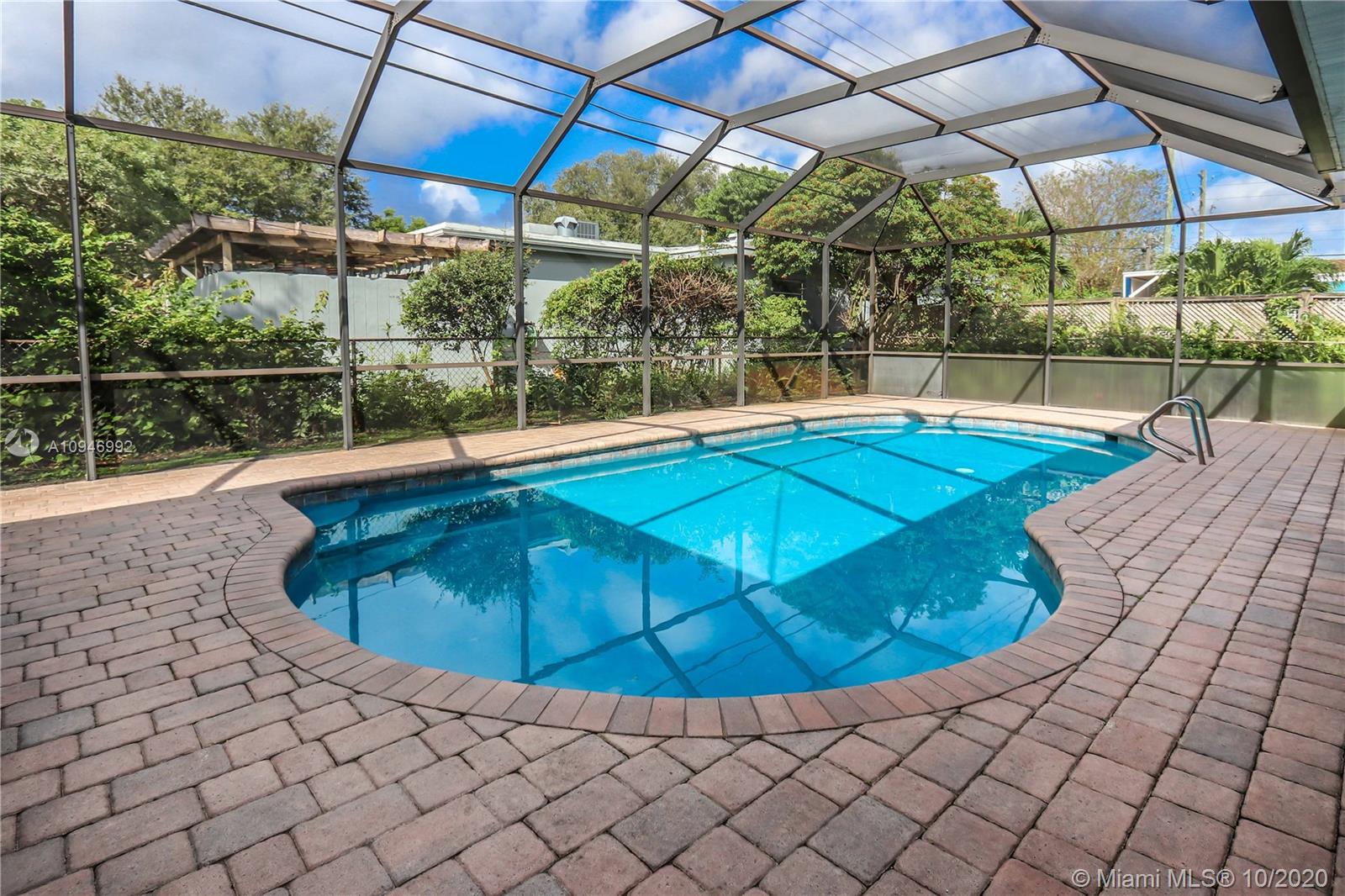 Beautiful 3 BR, 2 BA, 1 car garage, salt water Pool. Home features spacious kitchen w/granite countertops, SS appliances/pass thru window to pool. Large formal dining room & spacious living room w/bay window & sliding glass doors access to pool & patio. Large Master BR has walk in closet, sliding glass door to pool/cabana bathroom access to pool. Large Screened in Heated salt water pool / patio area perfect for entertaining. Updated guest bath. Laundry room has plenty of storage, utility sink & newer washer & new dryer. Circular Brick paver driveway & front porch. Tankless water heater. Hurricane panels. Mango, lemon & banana tree. Completely fenced in backyard w/large large shed. Auto Garage door opener w/ window a/c. Tenant Occupied need notice for showings they will be moving upon sale