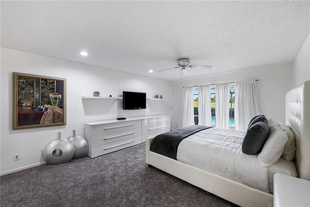 Welcome to this exceptional renovated home located in gated Boca Woods Country Club. Stunning modern home with an open spacious concept great for entertaining! Property features spilt bedroom plan,w/three bedrooms, two and a half baths, circular driveway, two car plus golf cart garage, air conditioned room in garage. Additional features include oversized island in kitchen, great room, formal dining, dry bar, fitted closets, laundry room w/utility sink.Enjoy the outdoor lifestyle this home offers with a screened in oversized patio,pool&spa,dining area w/retractable awning.Club offers two 18 hole golf courses,driving range,putting green,tennis,fitness center,pool,pickle ball,dining.Mandatory membership $65,000 paid 10 days prior to closing,$30,000 refundable when you sell home.See attachment