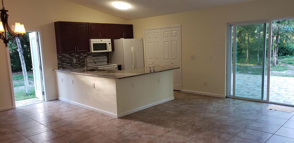 Come enjoy the country style living in this completely renovated home in Royal Palm Beach Acreage. New kitchen cabinets and granite countertops, tile floorings throughout, new bathrooms, New A/C. New Roof is (2 years old). All new interior and exterior doors throughout. Freshly painted, Fully fenced yard, This property has 2.25-acre lot/*easement, filled with many fruit trees. huge tiled deck in the back,