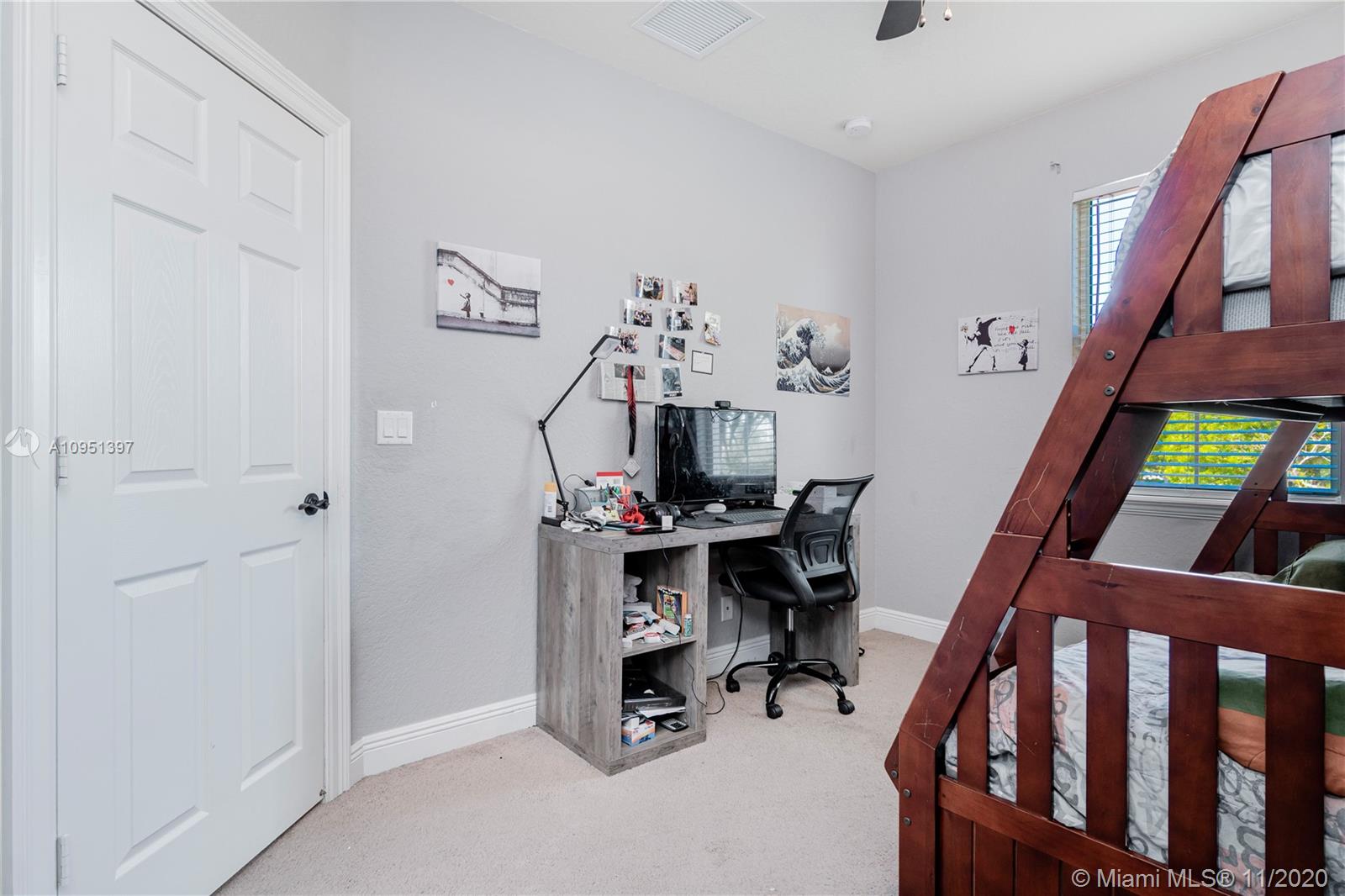 Beautiful Two-story Corner Townhouse for Sale! This spacious 2 car garage home is 1,848 sq. ft. It has 3 perfectly sized bedrooms and 2.5 bathrooms. Walk though the front door into a lovely foyer. The first floor layout consists of the living area, dining, kitchen, and half bath. All Bedrooms are located upstairs, along with the washer and dryer in the hallway. The Master Bedroom (with a walk-in closet) is large with plenty of space for a king size bed and a sitting area. This townhouse is located inside the quiet neighborhood of Mirabella. The community offers a community pool and playground. Enjoy the Lake while taking a stroll outside. Mirabella is in very close proximity to Miramar Pkwy, expressways, stores, and restaurants.
