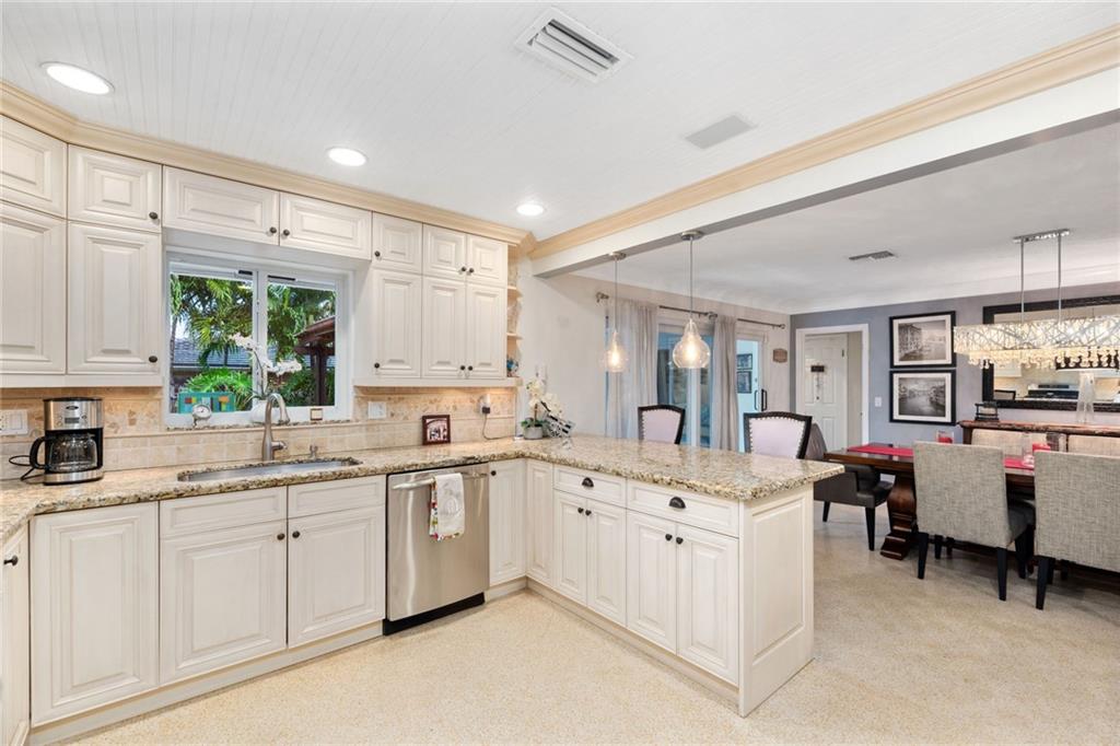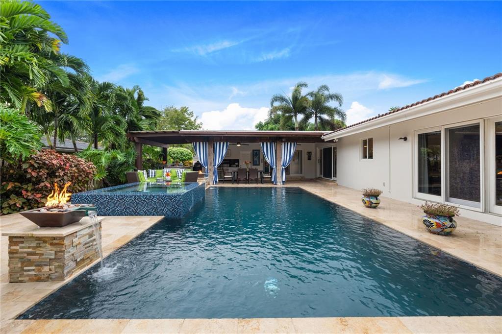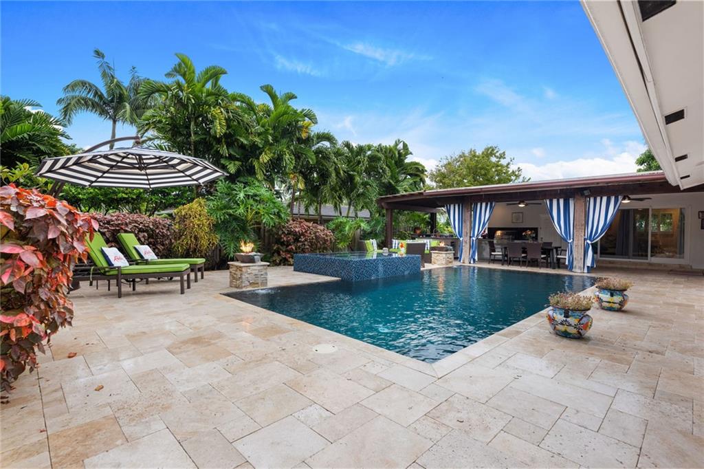 Beautifully updated 5 bedroom/3 bath ranch style home located in the highly desirable neighborhood of Coral Ridge. Resort style backyard with covered patio, travertine pavers, salt system heated pool and spa with fire feature, complete outdoor kitchen with built-in gas grill, Egg style smoker, fridge, cooler and sink. Split bedroom floor plan with 2 ensuite bedrooms, open concept living area, gourmet kitchen with gas stove. Impact windows and doors, Plantation shutters, LED landscape lighting, indoor/outdoor speakers, propane tank, 2 driveways. Bayview School district! This house is a MUST see!