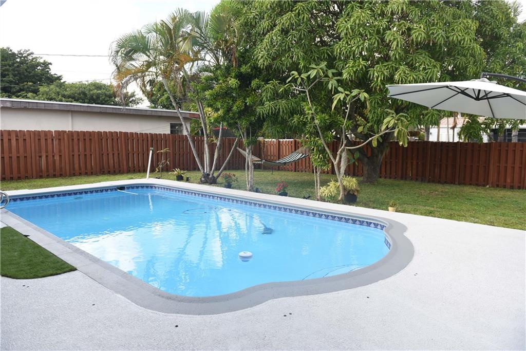 HERE IT IS, YOUR DREAM HOME, SPACIOUS LIVING DINING ROOM AREA WITH AN EXQUISITE AND MODERN KITCHEN WITH TOP OF THE LINE APPLIANCES INCLUDING NEW FRONTLOAD WASHER AND DRYER. BRAND NEW AC UNIT, DELIGHTFUL VIEWS TO THE POOL AND BACKYARD WITH FRUIT TREES WHERE YOU CAN JUST RELAX. ENJOY THE FLORIDA WINTER WEATHER OUTSIDE OF THE HOUSE UNDER THE COVERED PATIO, WHICH IS IDEAL FOR FAMILY GATHERINGS AND PARTIES. THIS HOME SITS ON OVER A 10,000 SF LOT, IT HAS 4 BEDROOMS INCLUDING 2 MASTER BEDROOMS WITH 2 MASTER BATHS, AND A FULL GUEST BATHROOM, BEAUTIFUL TILE FLOORING THROUGHOUT THE HOUSE, TWO CAR GARAGE PLUS CIRCULAR DRIVEWAY, ACCORDION SHUTTERS AND A SHED. THIS BRIGHT AND COMFORTABLE HOUSE DOES NOT HAVE HOA FEES AND WILL BE GONE SOON, DON'T HESITATE TO CALL TO SCHEDULE AN APPOINTMENT.