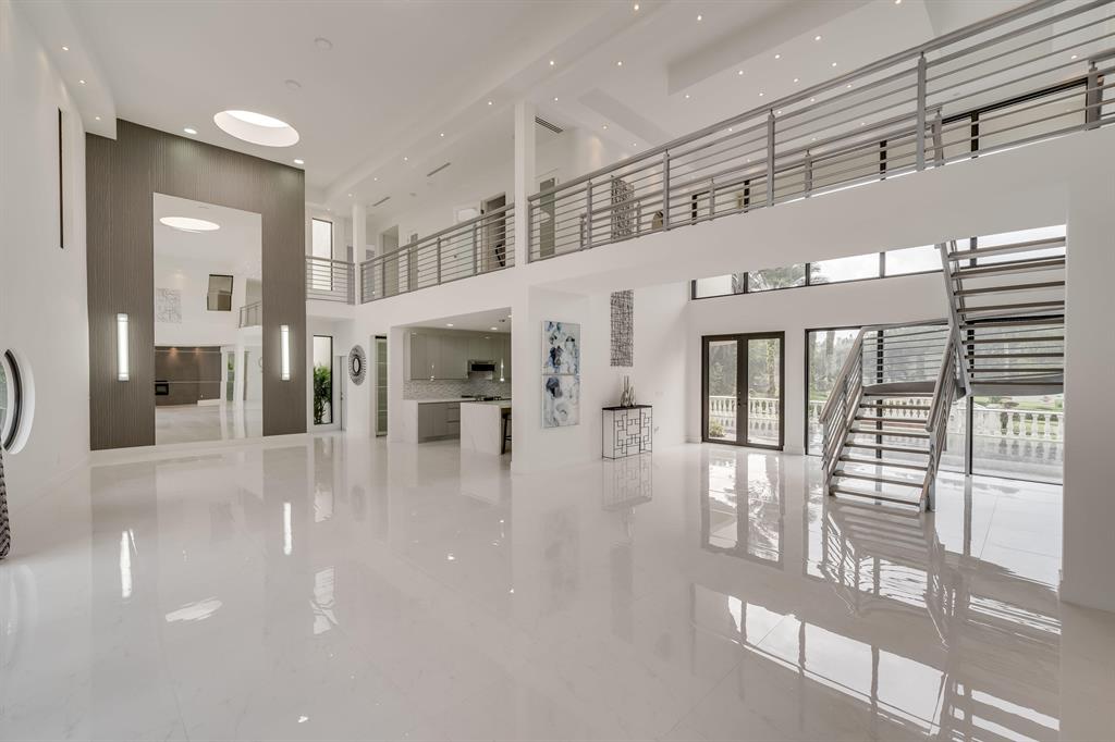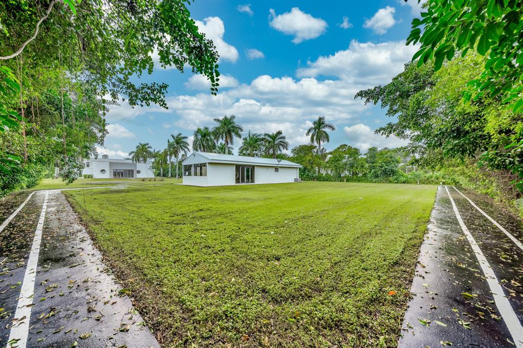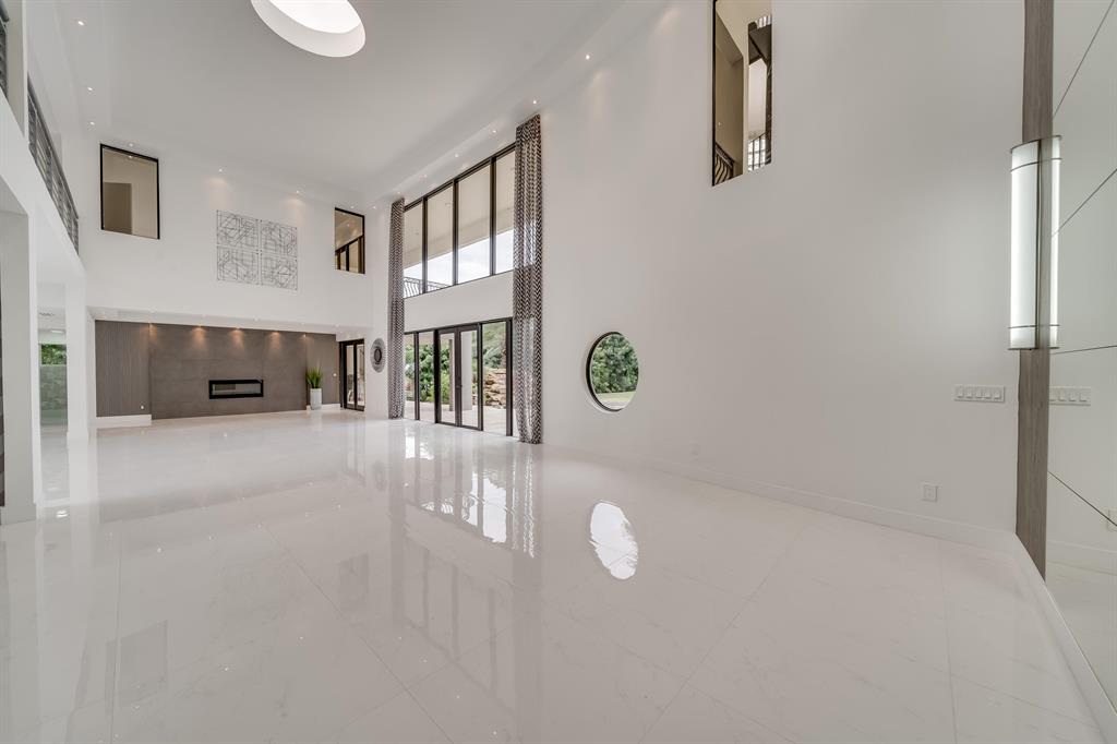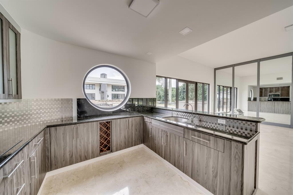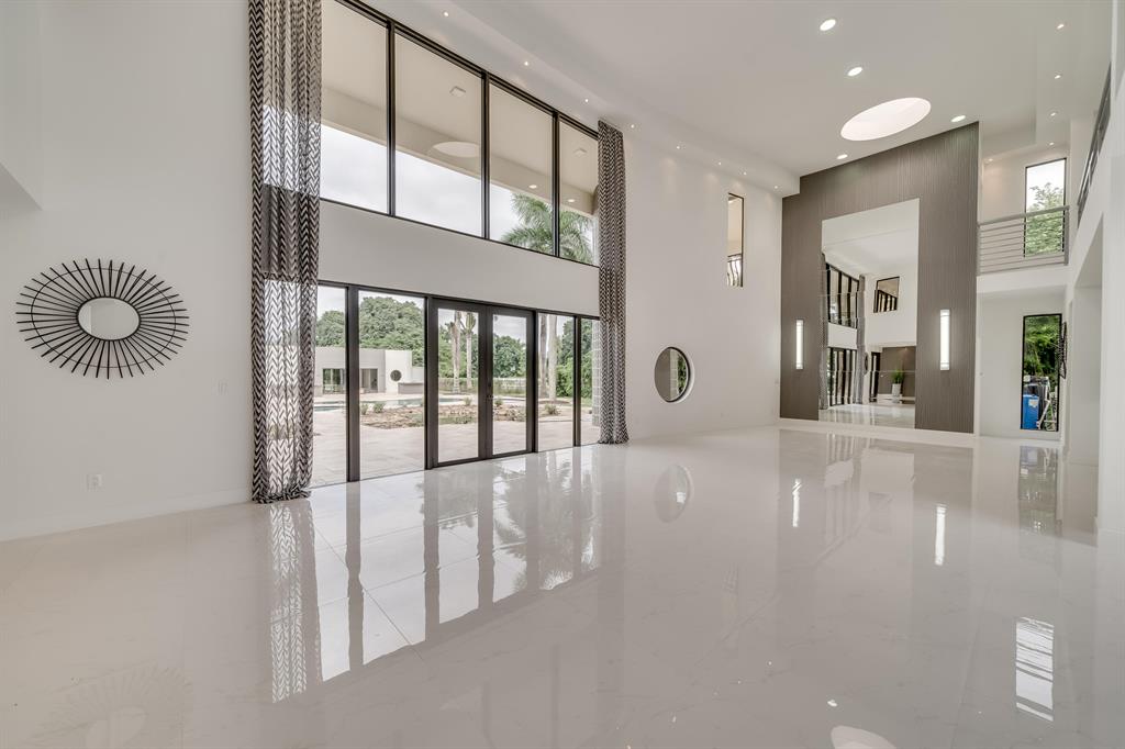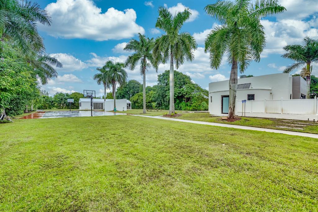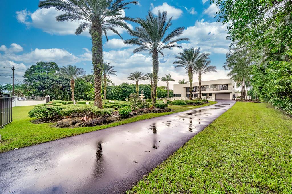 Contemporary masterpiece with 5 bed, 5.5 baths perfectly placed in the heart of Sunshine Ranches, a privately gated estate with circular driveway which sits on 2.34 acres and features the main home with over 7400 sq/ft, guest home with 1569 sq/ft and a private gym with 1306 sq/ft overlooking the pool and waterfall, tennis court and basketball court, racquet ball, running track and so much more. It is beautifully appointed with quality custom woodwork, ultra-high ceilings, porcelain floors, modern kitchen, family room, home theater, impact glass, 2 car garage and most impressive tropical landscaping