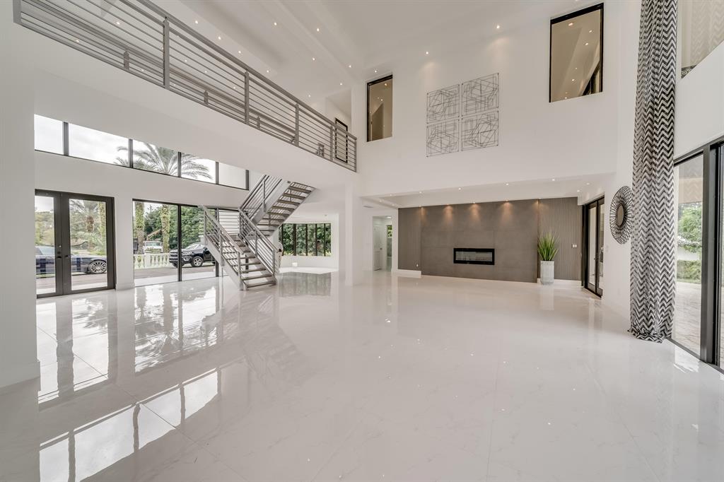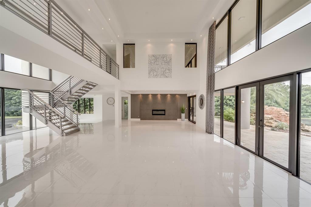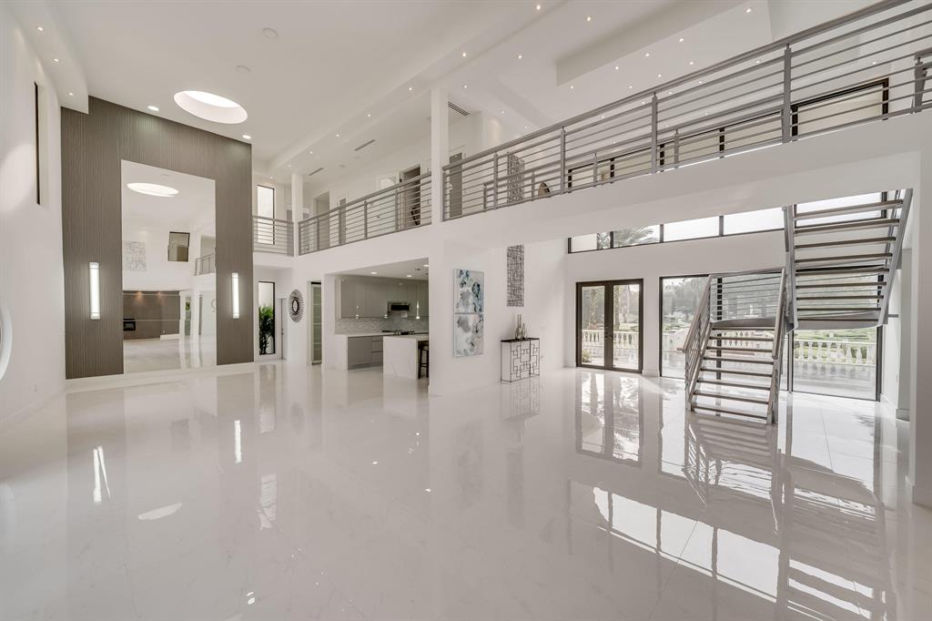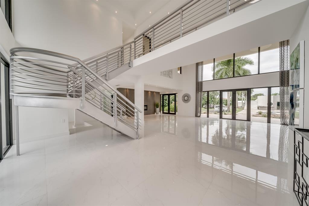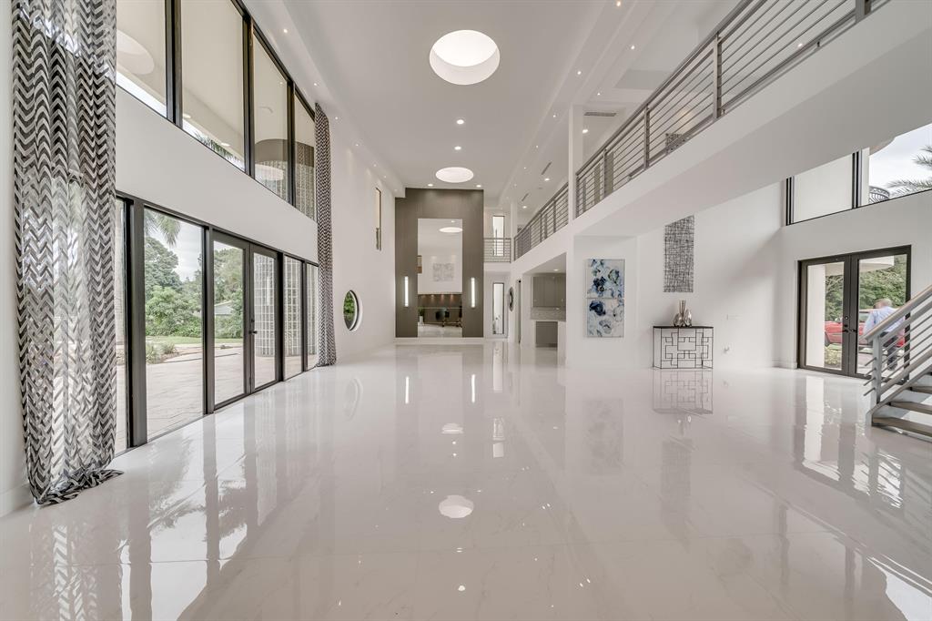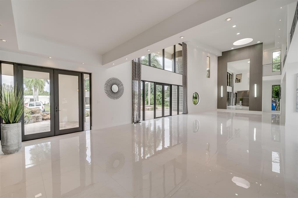 Contemporary masterpiece with 5 bed, 5.5 baths perfectly placed in the heart of Sunshine Ranches, a privately gated estate with circular driveway which sits on 2.34 acres and features the main home with over 7400 sq/ft, guest home with 1569 sq/ft and a private gym with 1306 sq/ft overlooking the pool and waterfall, tennis court and basketball court, racquet ball, running track and so much more. It is beautifully appointed with quality custom woodwork, ultra-high ceilings, porcelain floors, modern kitchen, family room, home theater, impact glass, 2 car garage and most impressive tropical landscaping