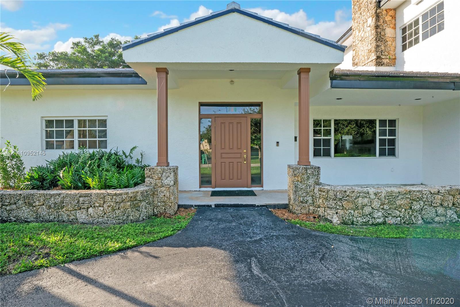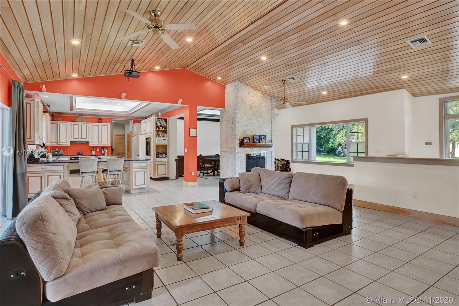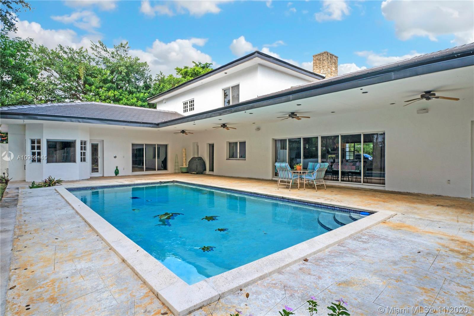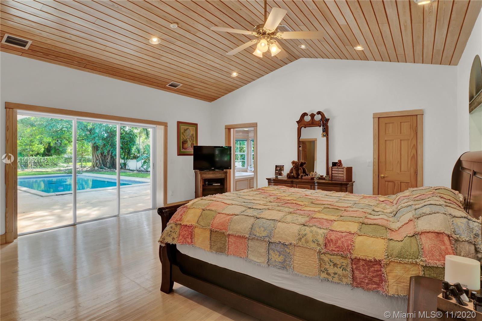 Lowest priced 6 bedroom/6 bath pool home in North Pinecrest. A few small tweaks and updates will turn this sleeping beauty into your new dream home. Features: new flat concrete tile roof, large open spaces including great room, kitchen w/wood cabinets and Island, three -way bedroom split perfect for multi generation family. Master plus two downstairs, three additional oversized bedrooms plus bonus upstairs. Also, Miami Oolite limestone used for exterior walls and chimney, Cypress wood ceilings, double sided wood burning fireplace, formal dining, large corner lot, views to open pool from every part of the house, oversized terrace perfect for outdoor entertaining, 2.5 car garage, indoor laundry and more. Home was totally rebuilt in 1993 with pride by owner/architect.