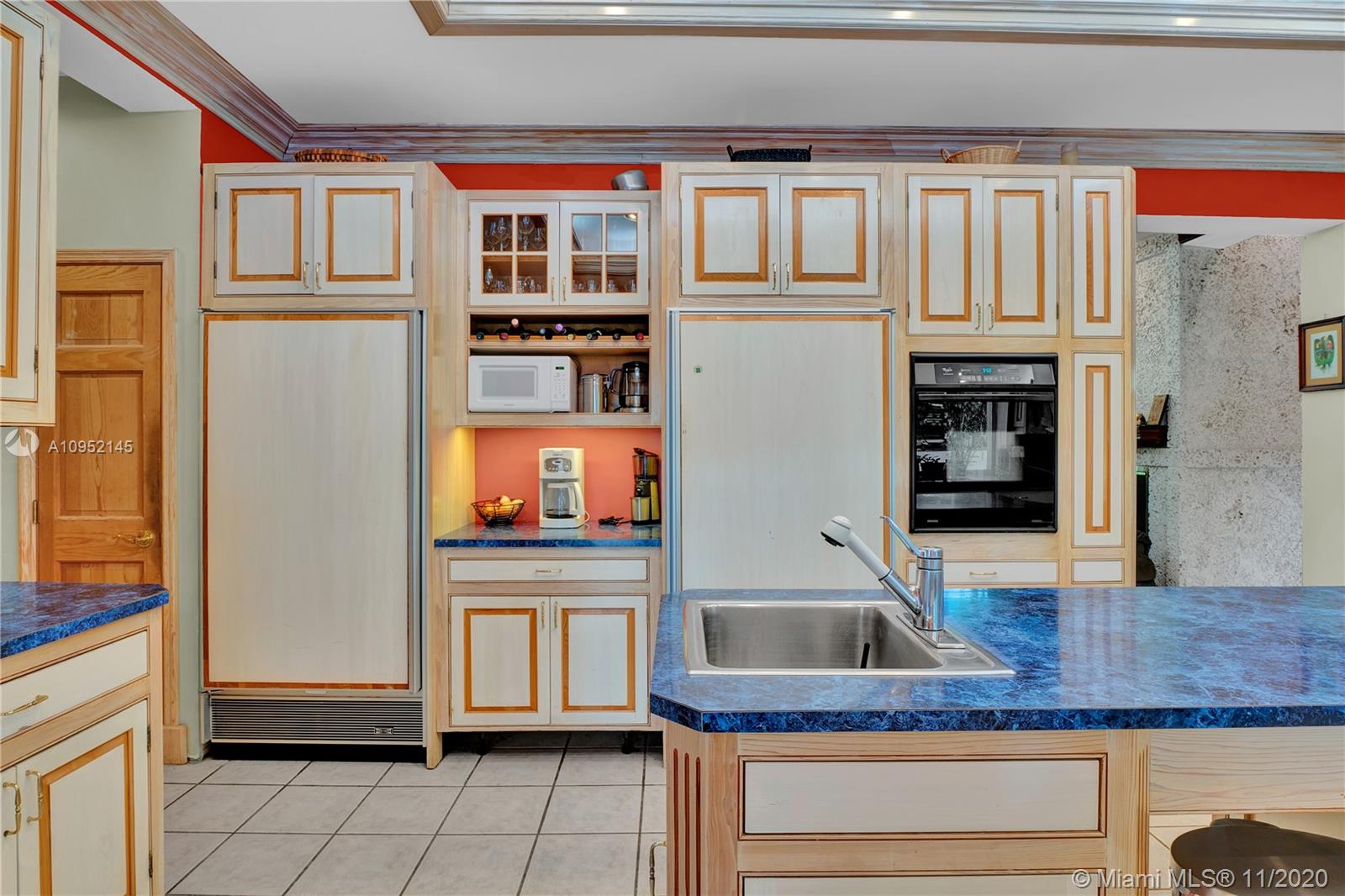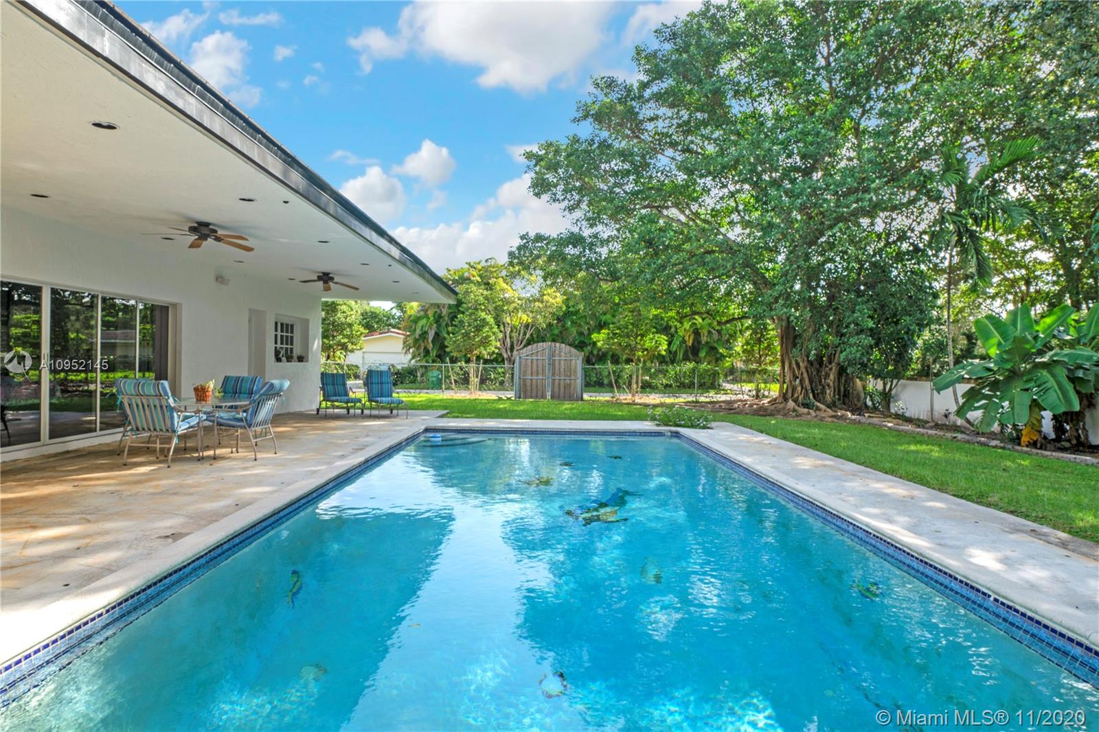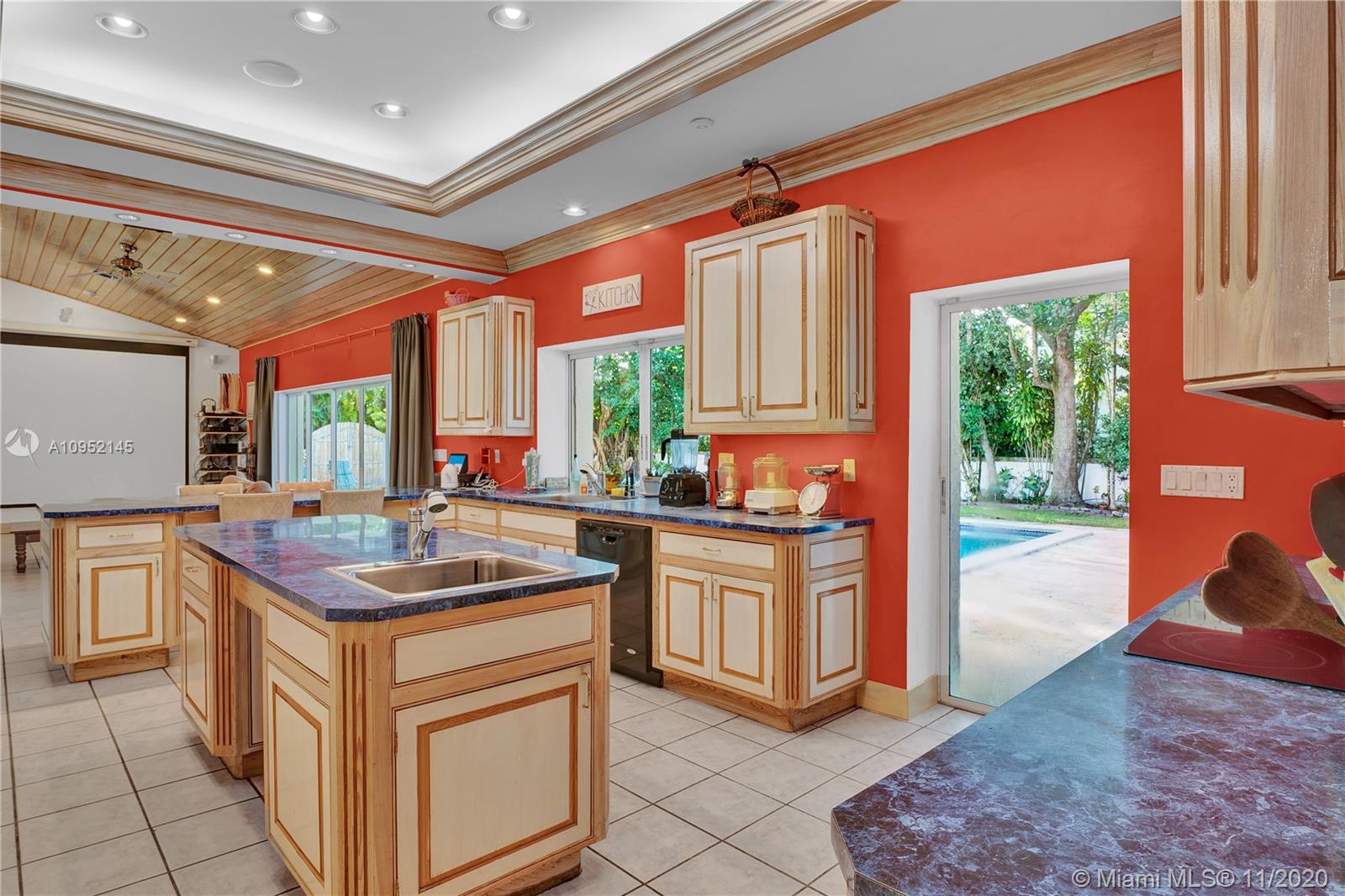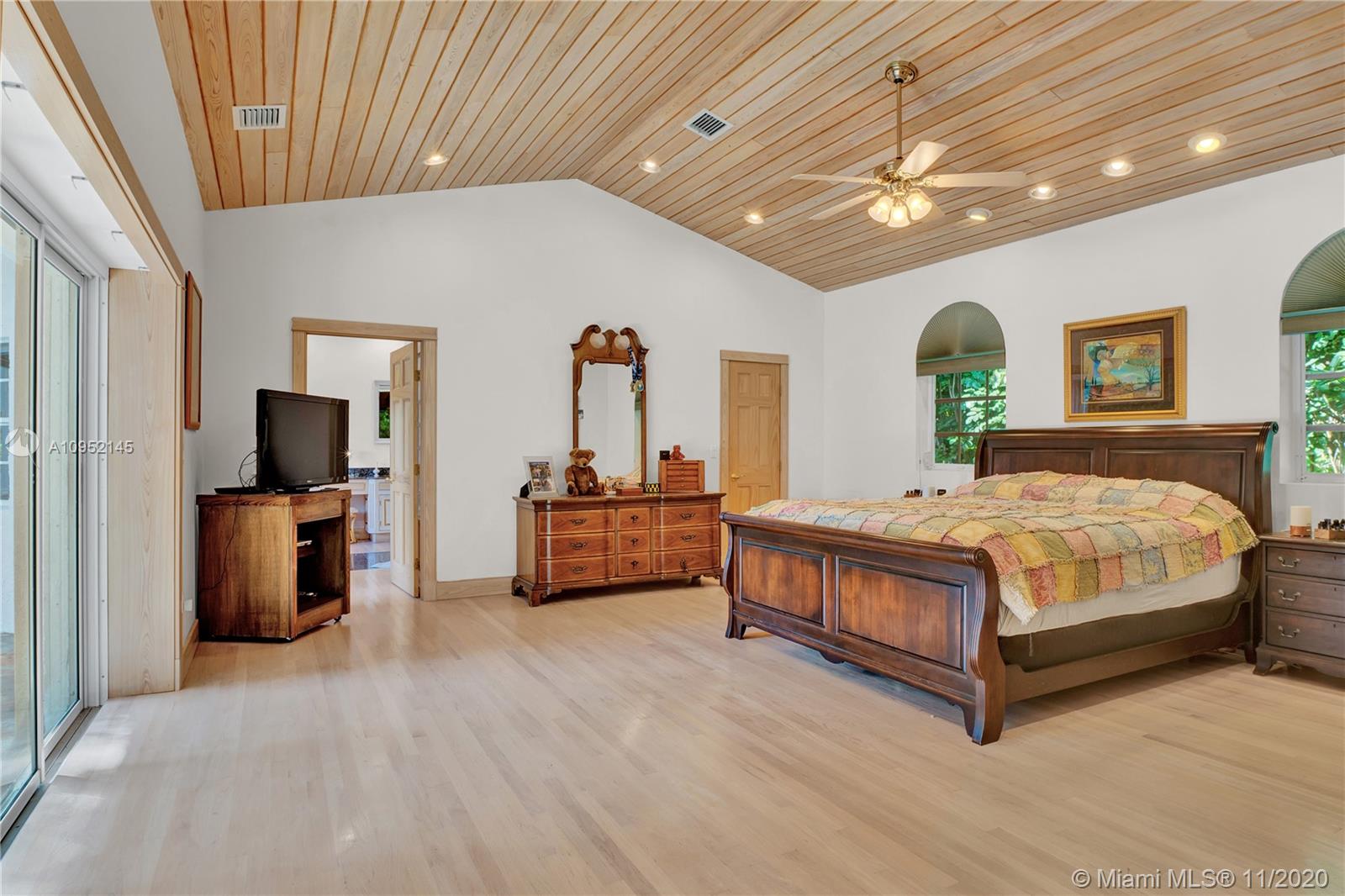 Lowest priced 6 bedroom/6 bath pool home in North Pinecrest. A few small tweaks and updates will turn this sleeping beauty into your new dream home. Features: new flat concrete tile roof, large open spaces including great room, kitchen w/wood cabinets and Island, three -way bedroom split perfect for multi generation family. Master plus two downstairs, three additional oversized bedrooms plus bonus upstairs. Also, Miami Oolite limestone used for exterior walls and chimney, Cypress wood ceilings, double sided wood burning fireplace, formal dining, large corner lot, views to open pool from every part of the house, oversized terrace perfect for outdoor entertaining, 2.5 car garage, indoor laundry and more. Home was totally rebuilt in 1993 with pride by owner/architect.