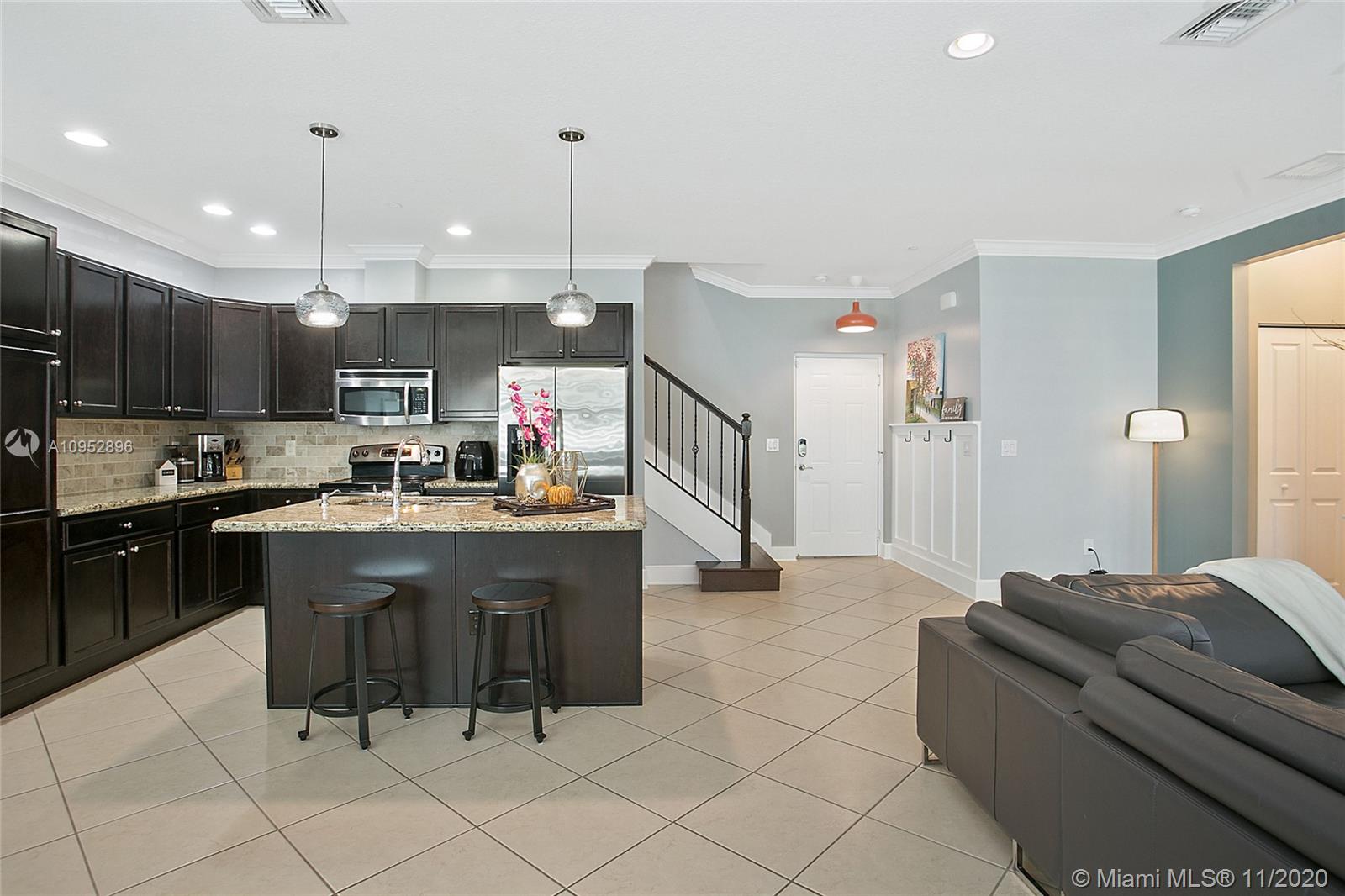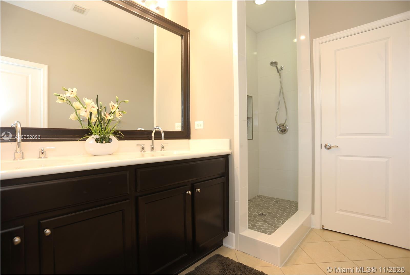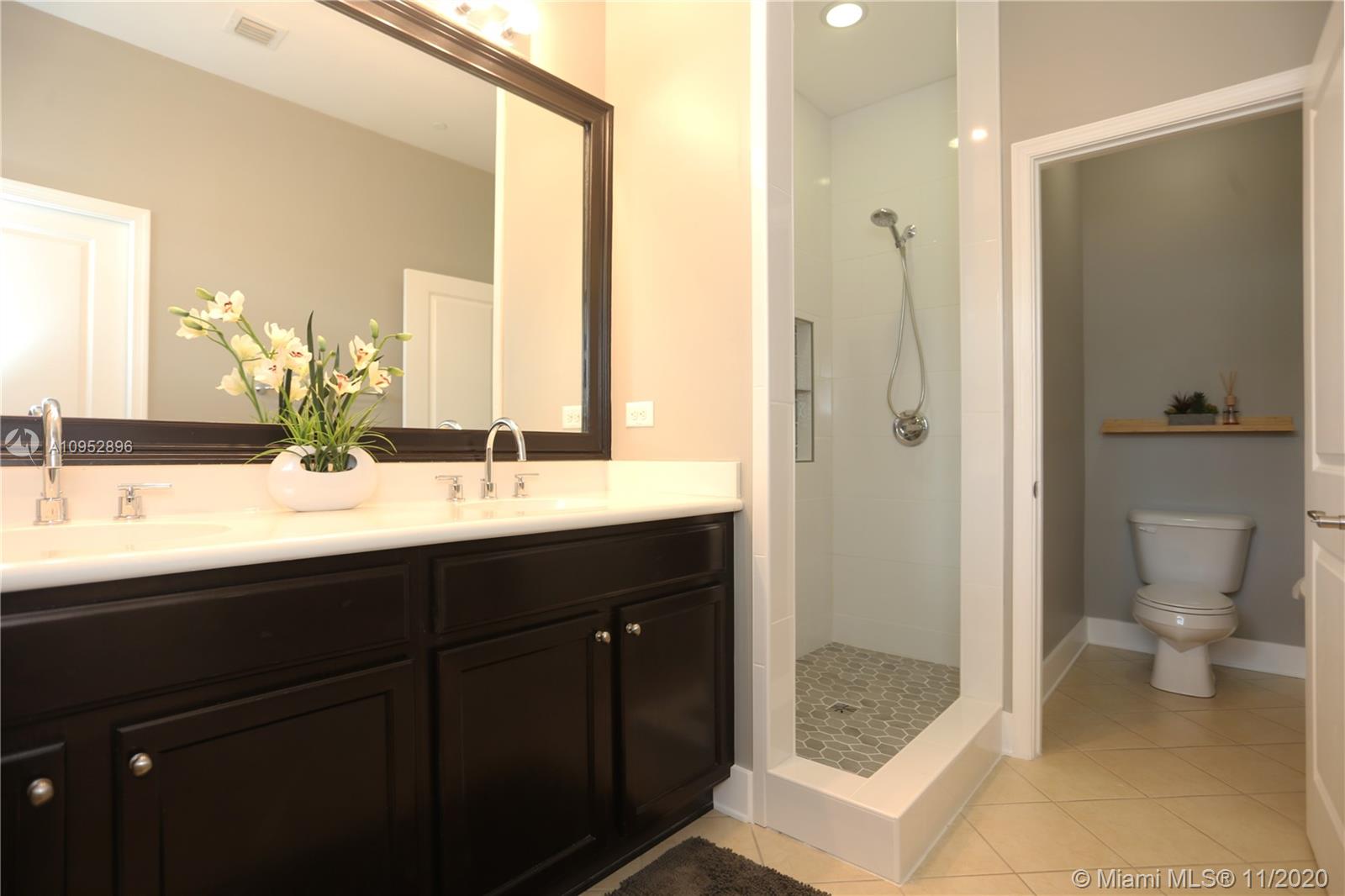 Discover this charming townhome in a quaint park-like setting in Cascada Isle. This beauty built for the modern-day is ideal for entertaining guests. Tastefully upgraded with plantation shutters throughout & the custom wainscotting in the living area creates an elegant feel. Off the living room is a bedroom with a full bathroom adjacent to it. The master suite upstairs features 2 walk-in closets & the ensuite boasts a double vanity and a remodeled luxurious shower outfitted with beaming white tiles and frameless glass shower door. A 3rd bedroom upstairs is bright and airy with an ensuite. Hurricane Impact Windows. Access Cascada Isle pool or enjoy 5-star resort clubhouse amenities at The Club in Monterra, all inclusive in the low monthly fee. Enjoy trails in Monterra.