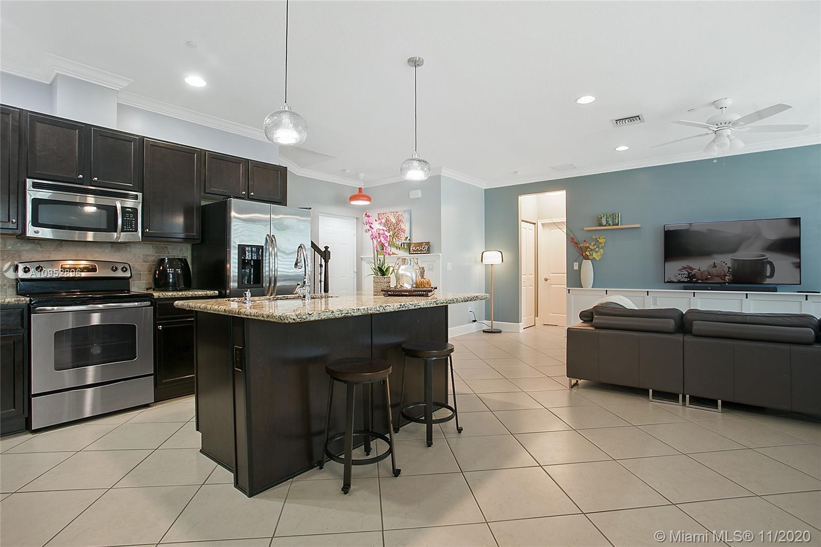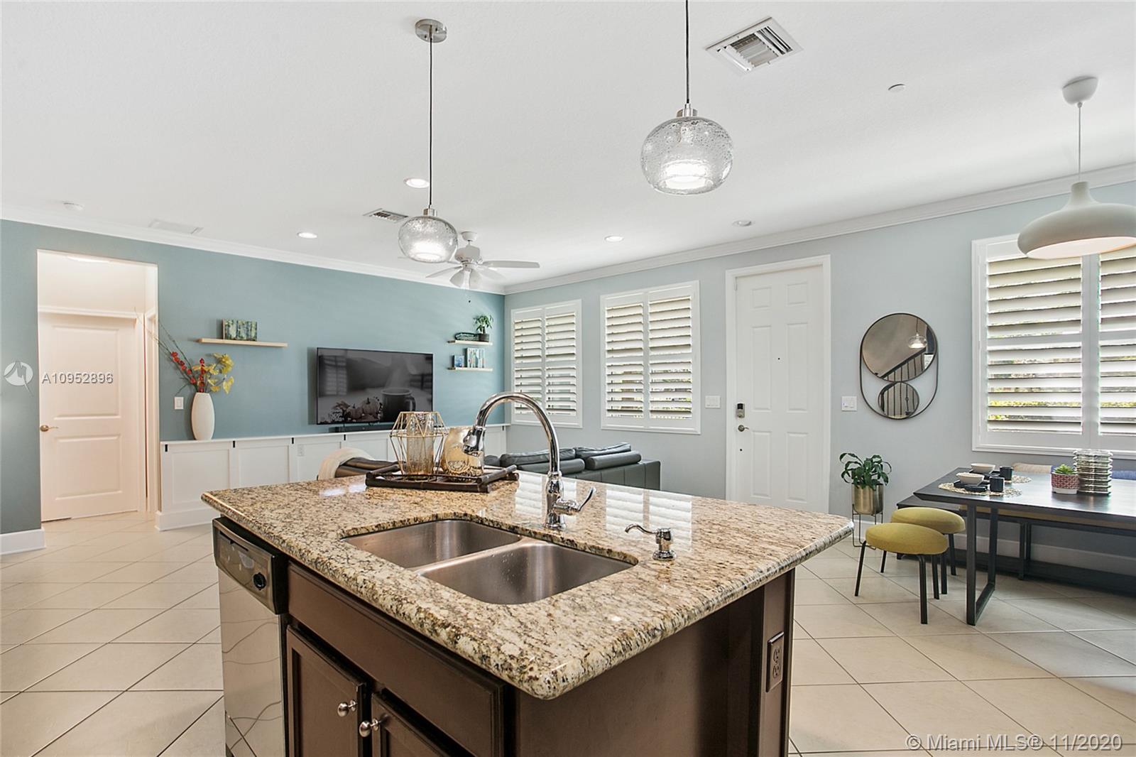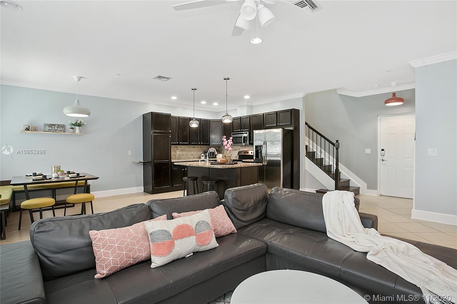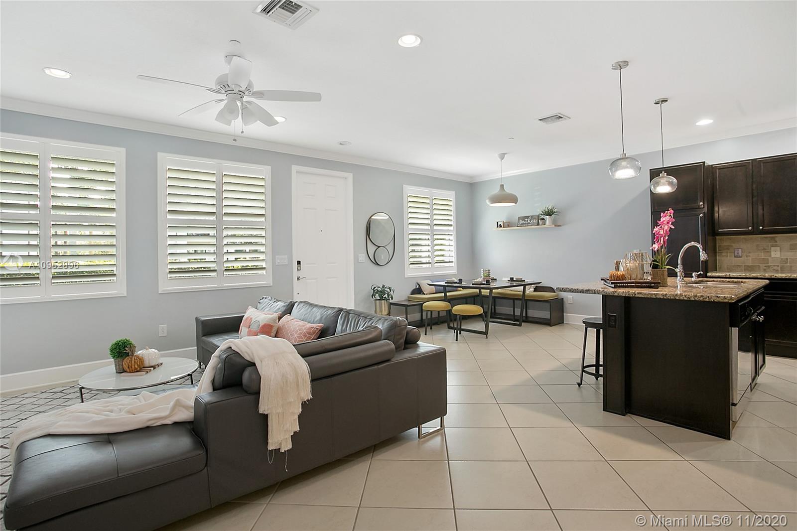 Discover this charming townhome in a quaint park-like setting in Cascada Isle. This beauty built for the modern-day is ideal for entertaining guests. Tastefully upgraded with plantation shutters throughout & the custom wainscotting in the living area creates an elegant feel. Off the living room is a bedroom with a full bathroom adjacent to it. The master suite upstairs features 2 walk-in closets & the ensuite boasts a double vanity and a remodeled luxurious shower outfitted with beaming white tiles and frameless glass shower door. A 3rd bedroom upstairs is bright and airy with an ensuite. Hurricane Impact Windows. Access Cascada Isle pool or enjoy 5-star resort clubhouse amenities at The Club in Monterra, all inclusive in the low monthly fee. Enjoy trails in Monterra.